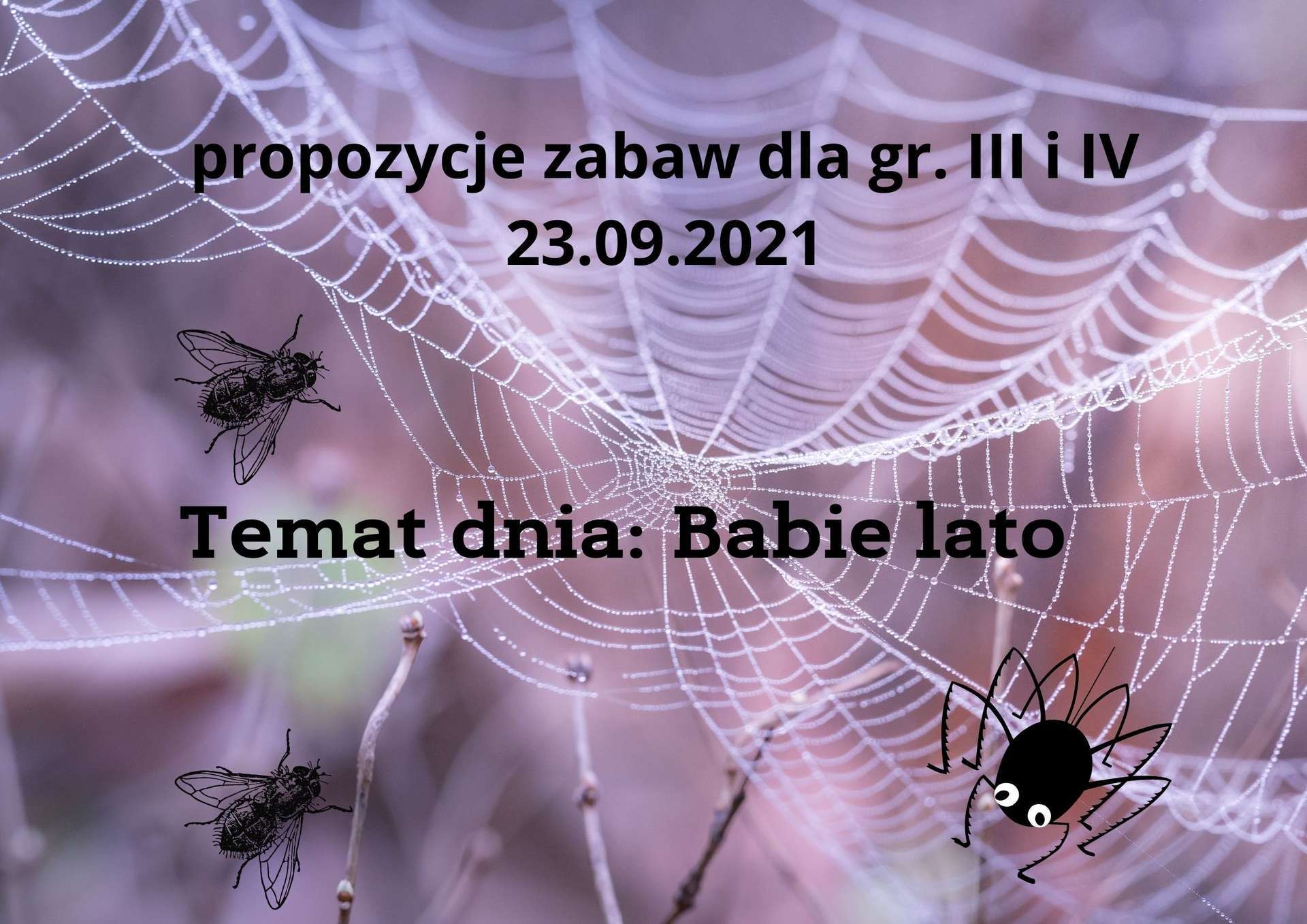 Warto przedstawić pająka jako bohatera, bez którego nie byłoby babiego lata, mimo strachu, lęku, obrzydzenia, które wzbudza wśród wielu osób. Zwraca uwagę na inne pożyteczne funkcje pająków, np. wyjadają szkodniki, żywią się muchami, komarami, gromadzą w sobie metale ciężkie, zapobiegają rozprzestrzenianiu się chorób. Z pomocą dziecka wyjaśniamy przysłowie „Szczęśliwy dom, w którym pająki są”.