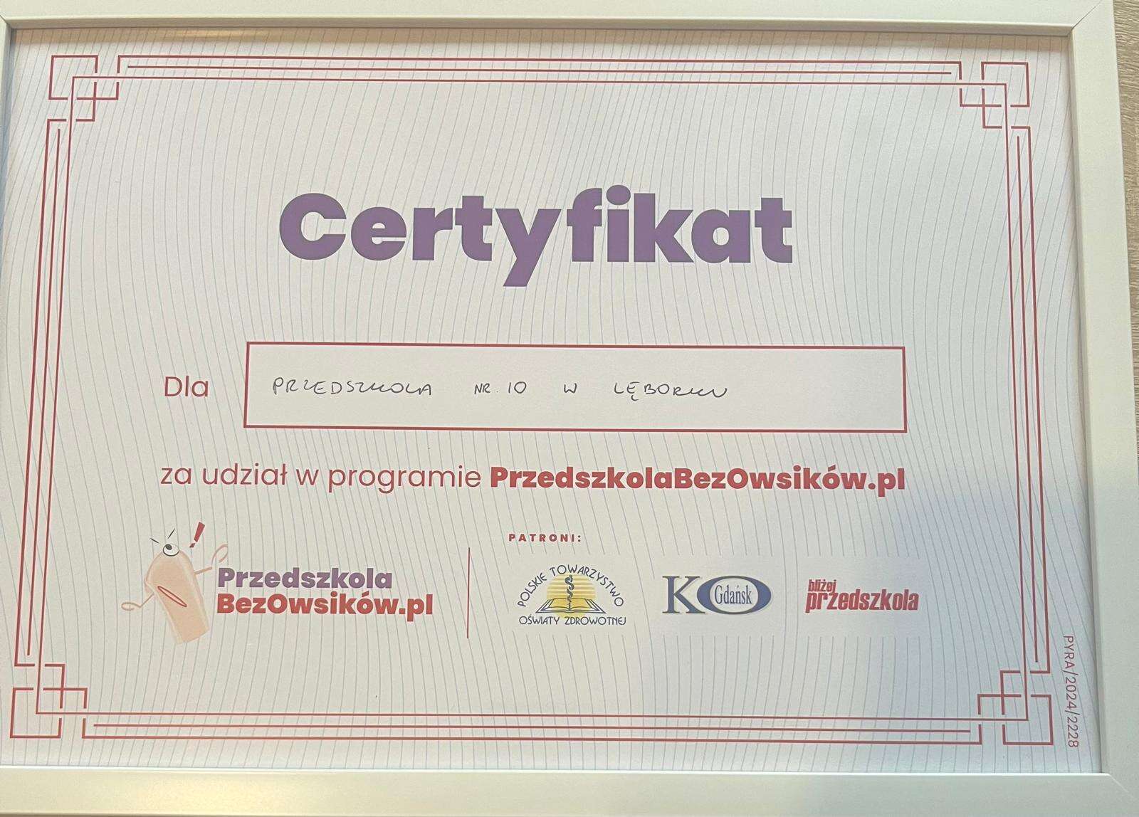 Nasze przedszkole wzięło udział w ogólnopolskim programie edukacyjnym " PrzedszkolaBezOwsików.pl".