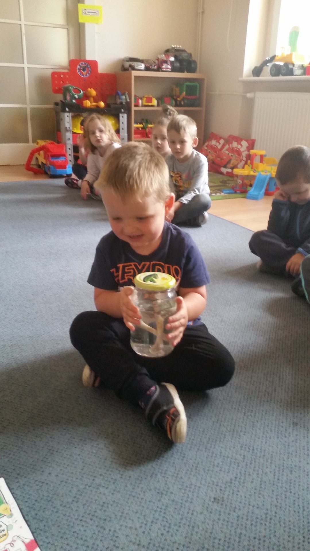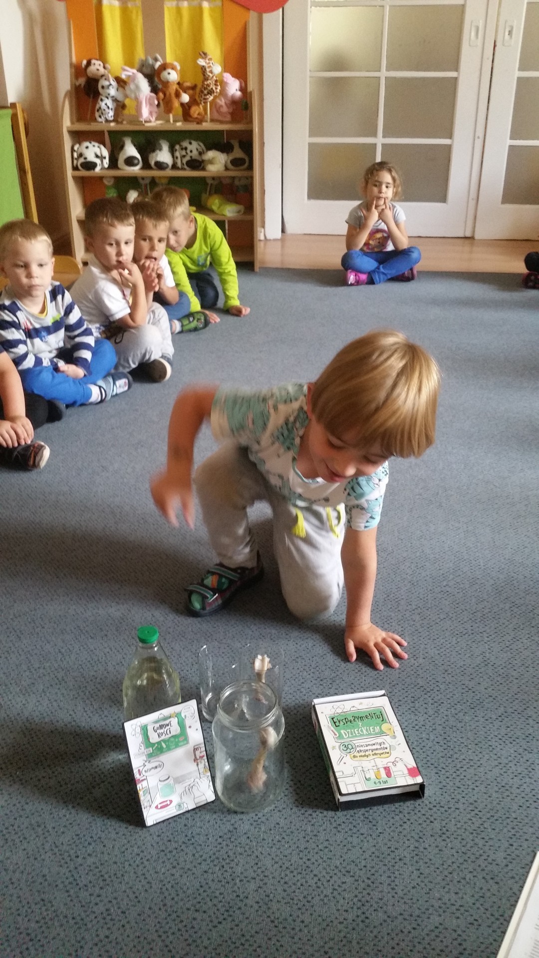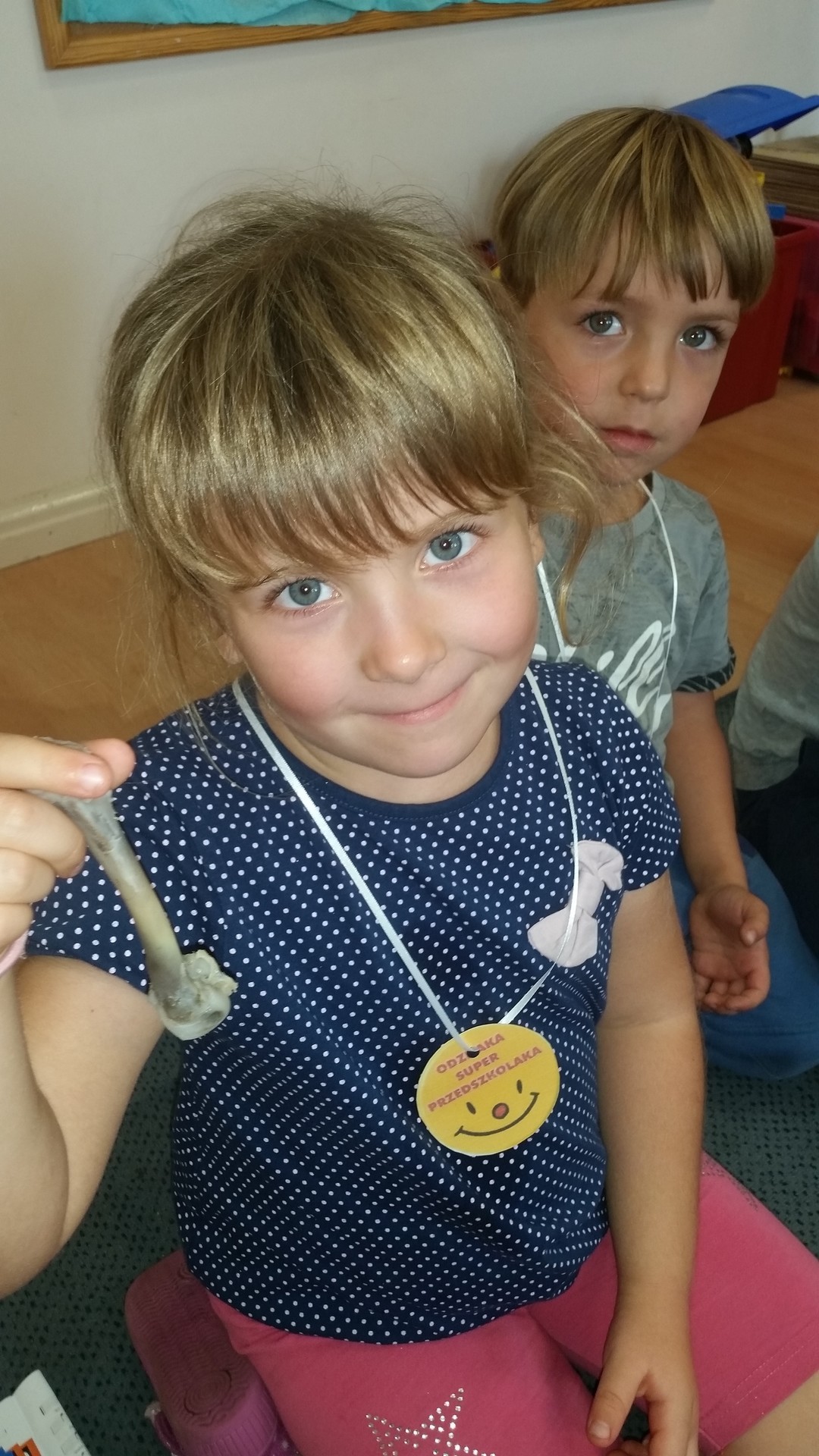 Razem z dziećmi tuż po zjedzeniu pysznego kurczaka zrobionego przez Panią Krysię i Panią Danusię postanowiliśmy przeprowadzić doświadczenie z kością i octem.