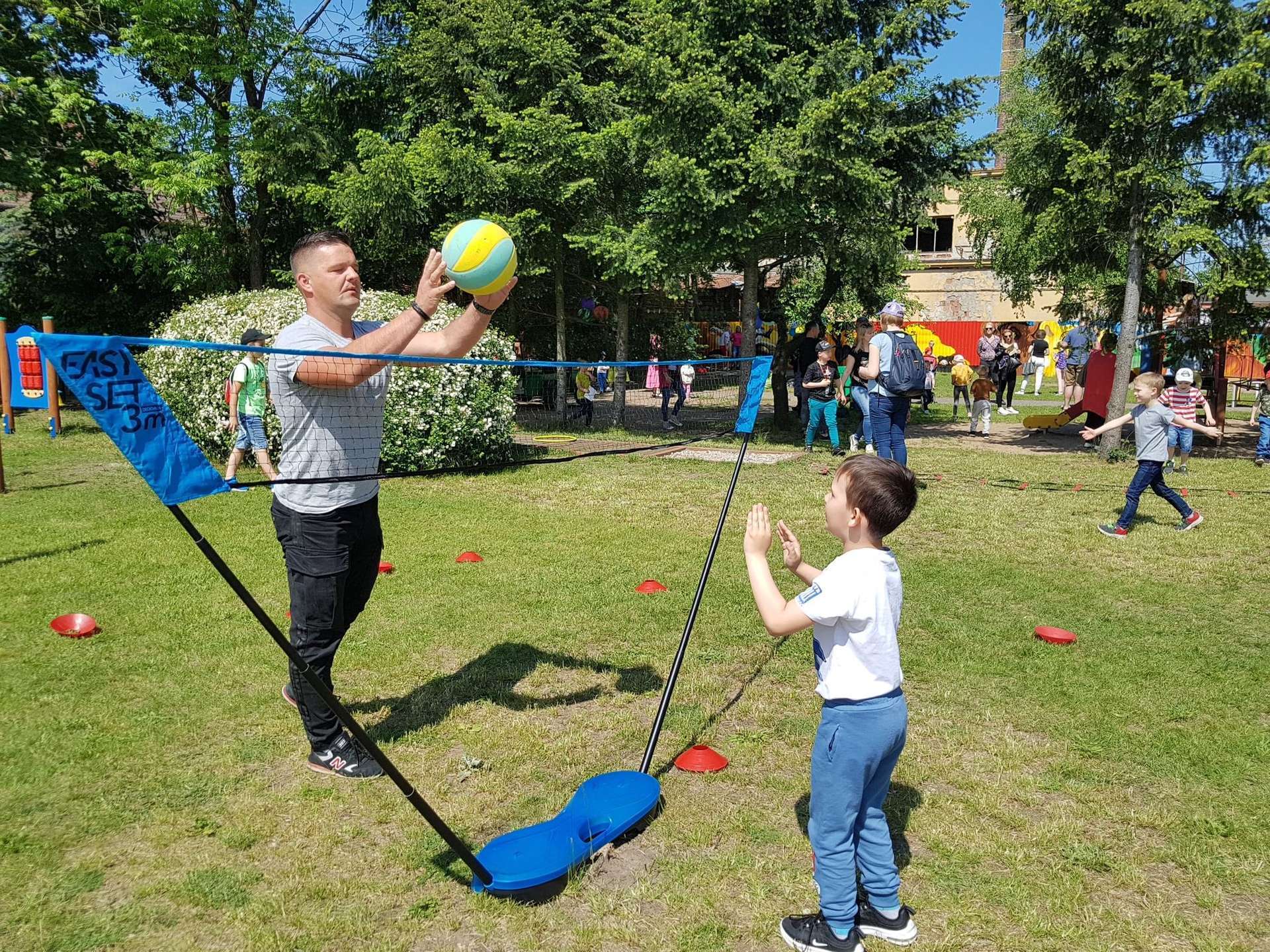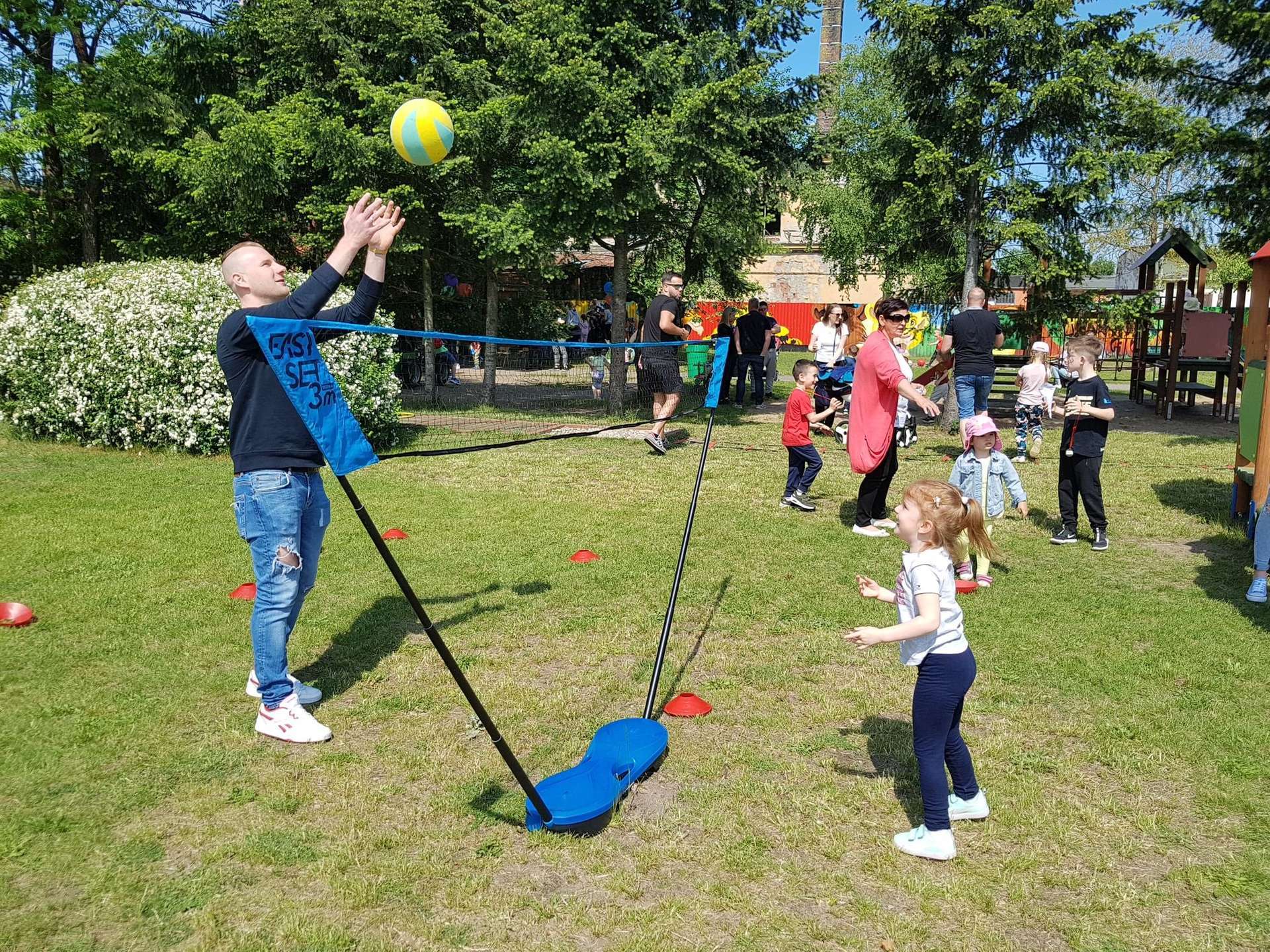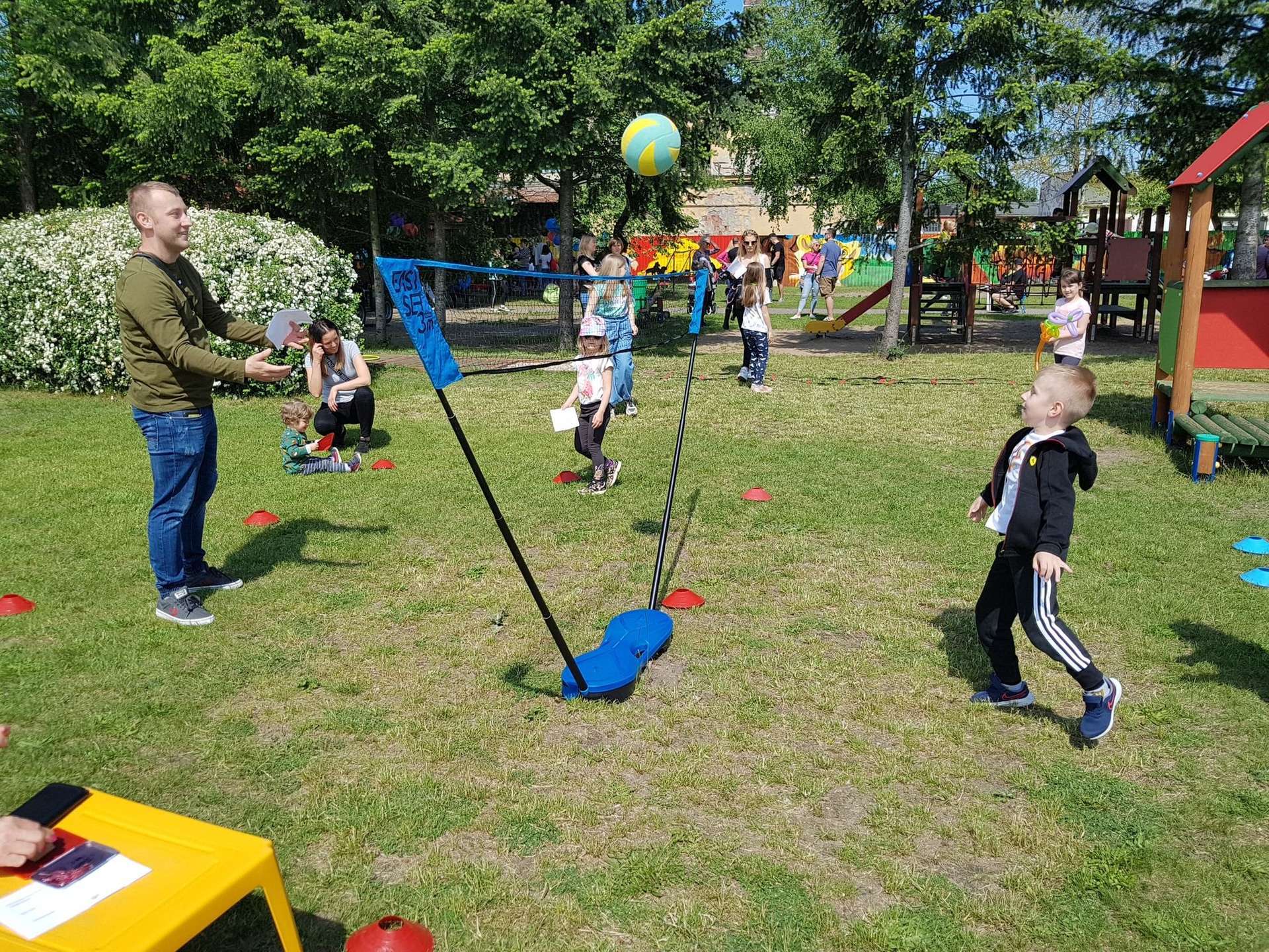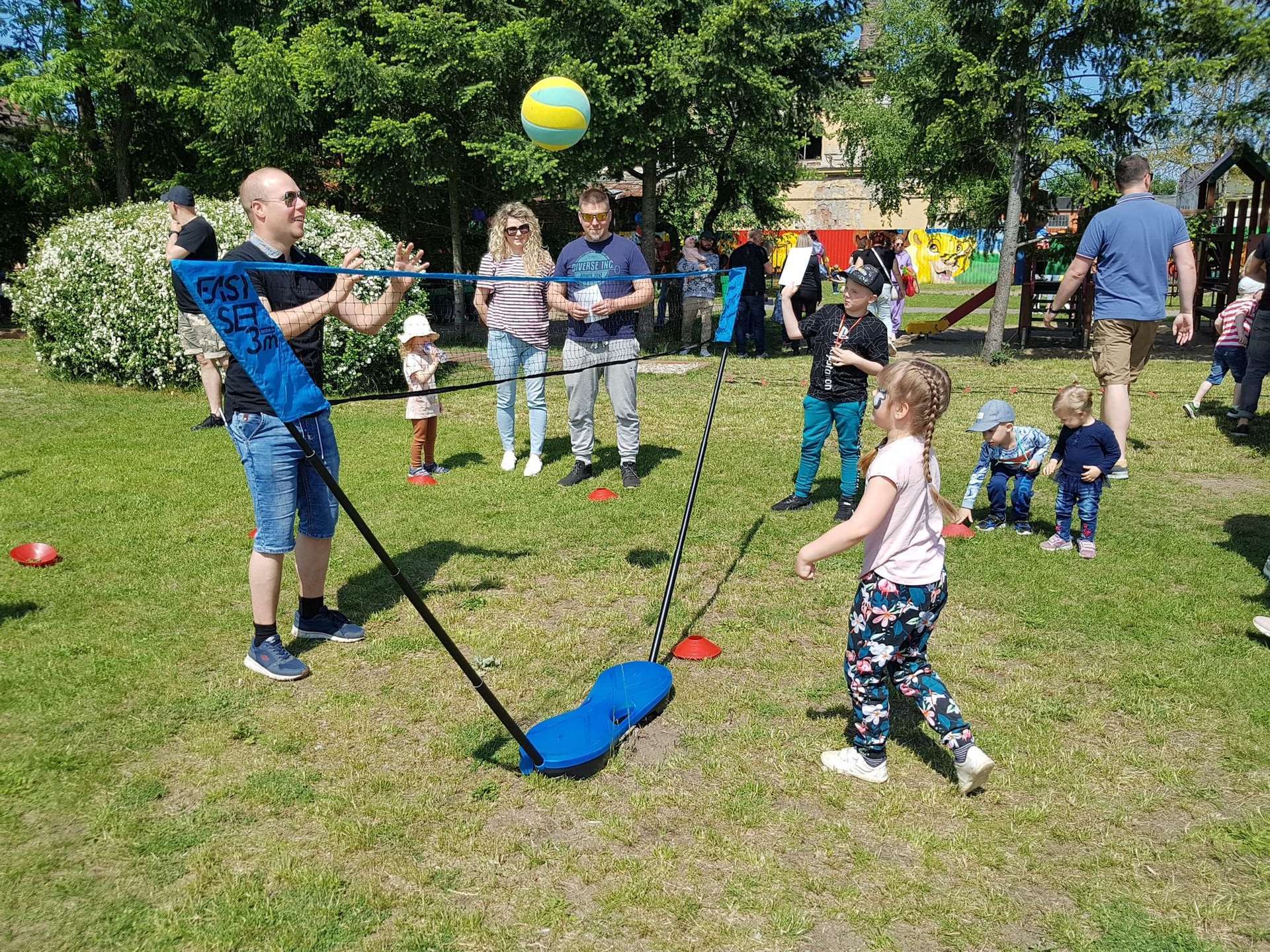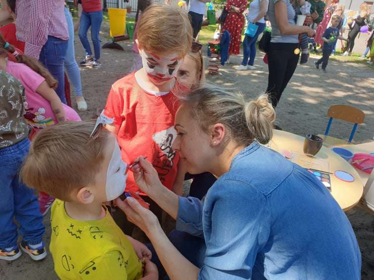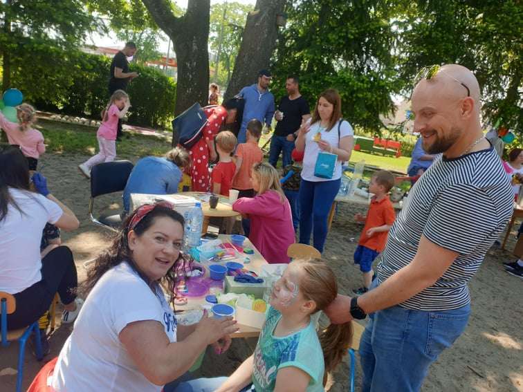4 czerwca, w piękny słoneczny dzień odbył się Festyn Rodzinny pod hasłem "Zamiast siedzieć przed ekranem, ruszaj się z aktywnym planem". Festyn podzielony był na dwie części : część artystyczną i rekreacyjną. W tej drugiej dzieci wraz z rodzicami uczestniczyły w konkurencjach sportowych, które poprowadził p. Michał Pietrzyk - tata dziewczynek z naszego przedszkola oraz nauczyciele. Pozytywnych emocji było bardzo wiele. Po wykonaniu sportowych zadań każde dziecko otrzymało złoty medal. Uczestnicy mieli również wiele innych atrakcji. Nie zabrakło również tradycyjnego grillowania i słodkości.