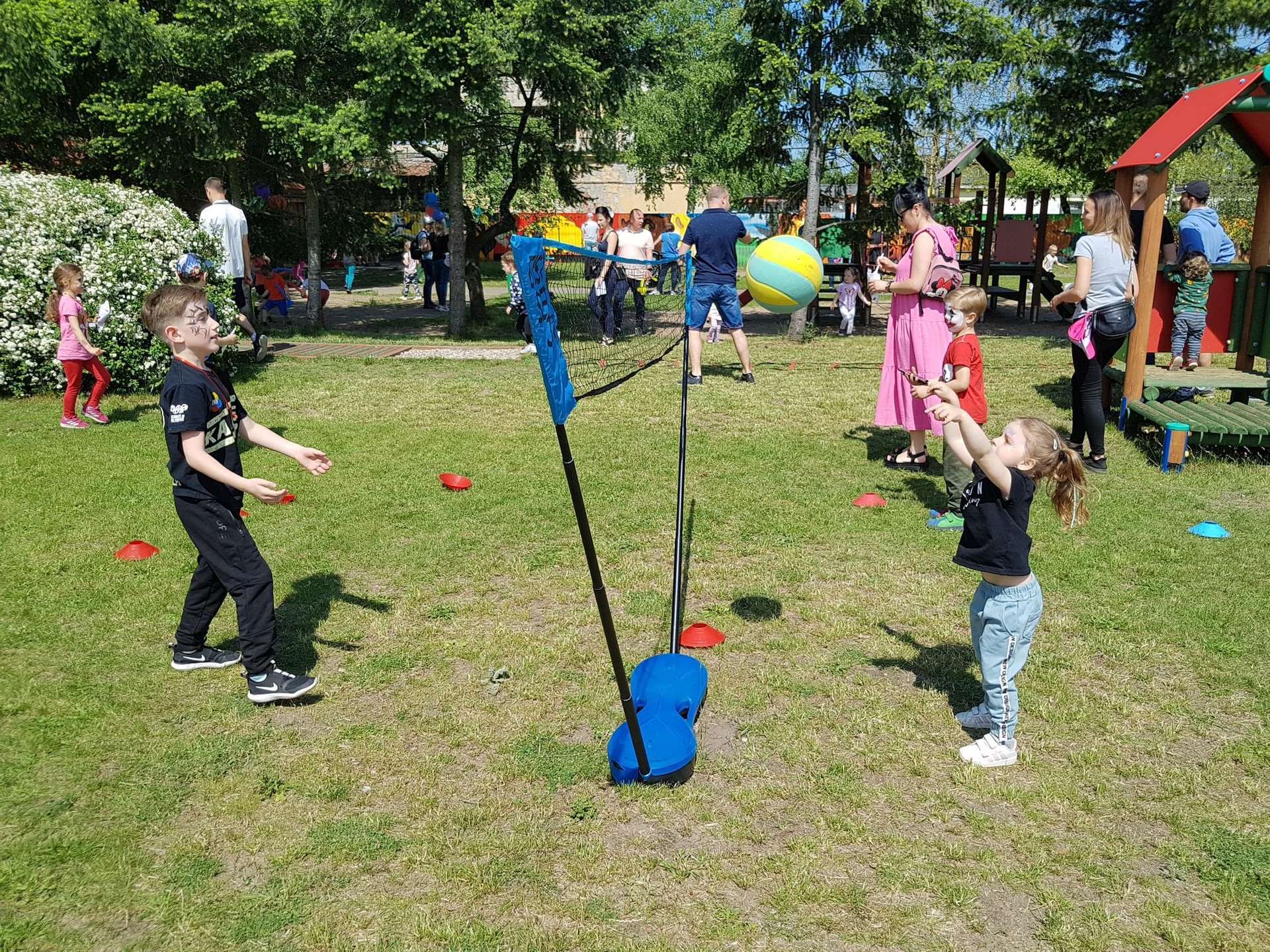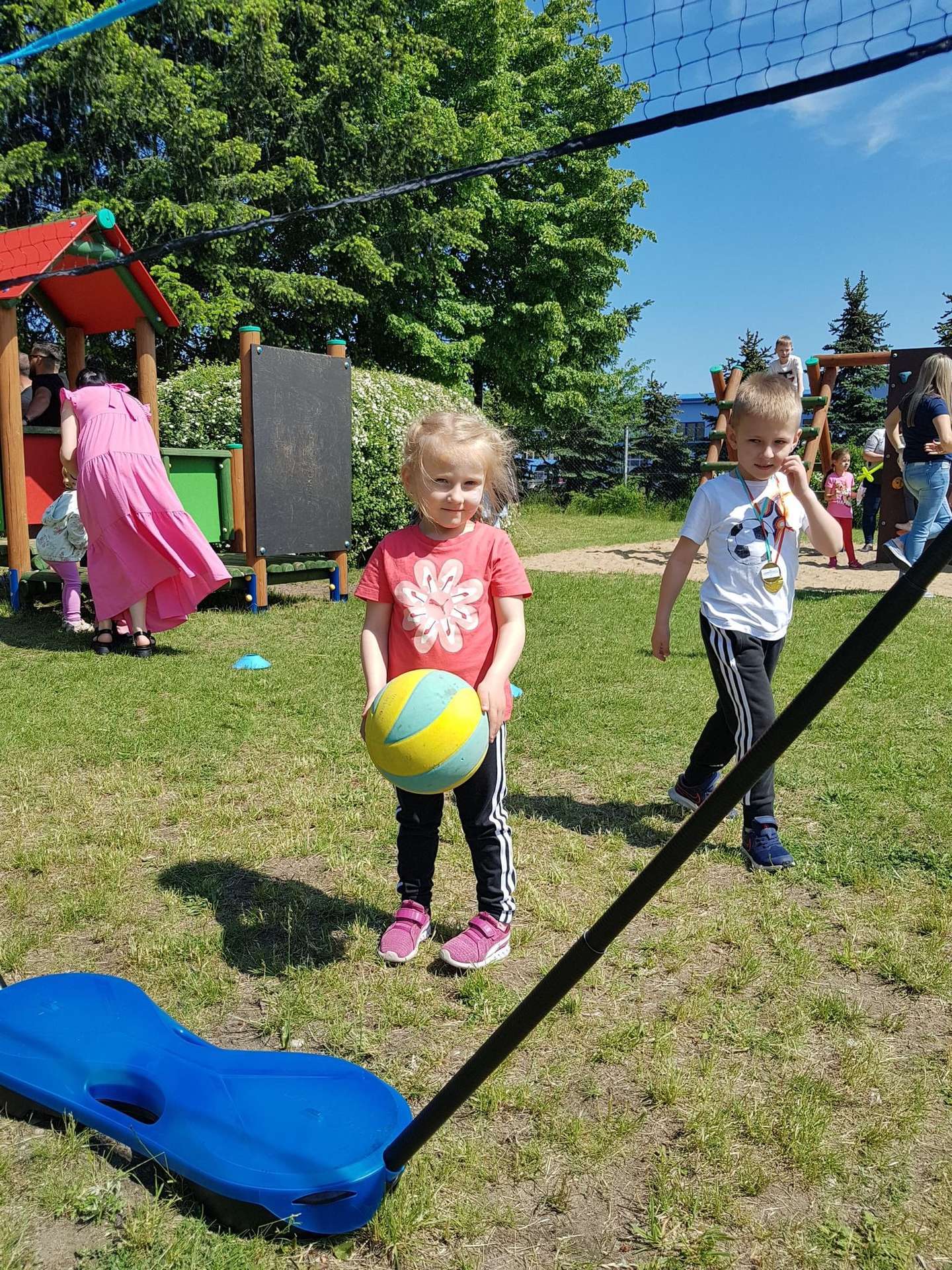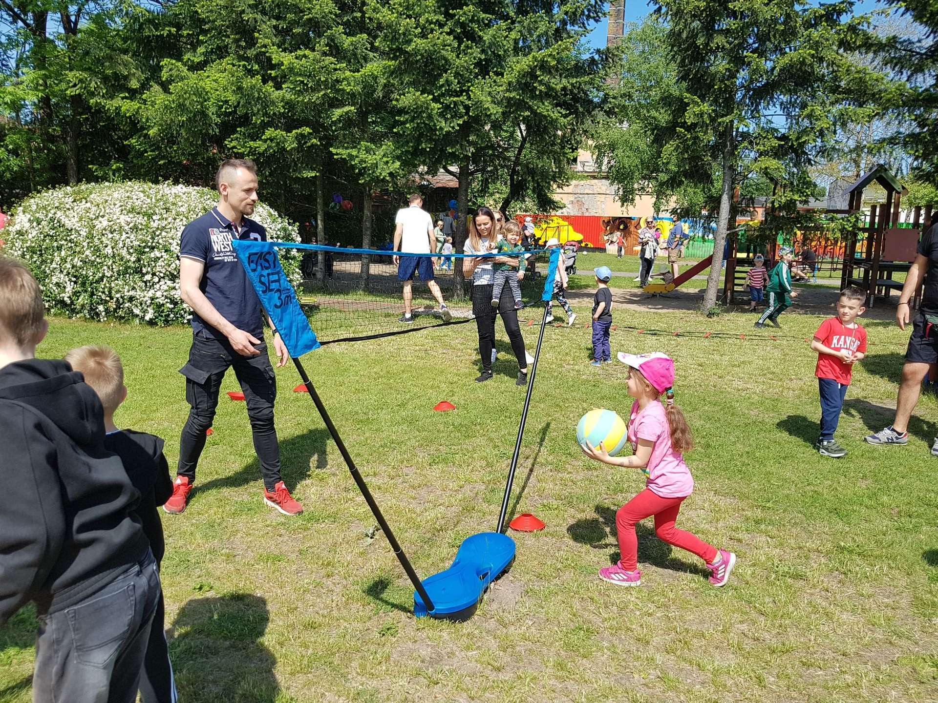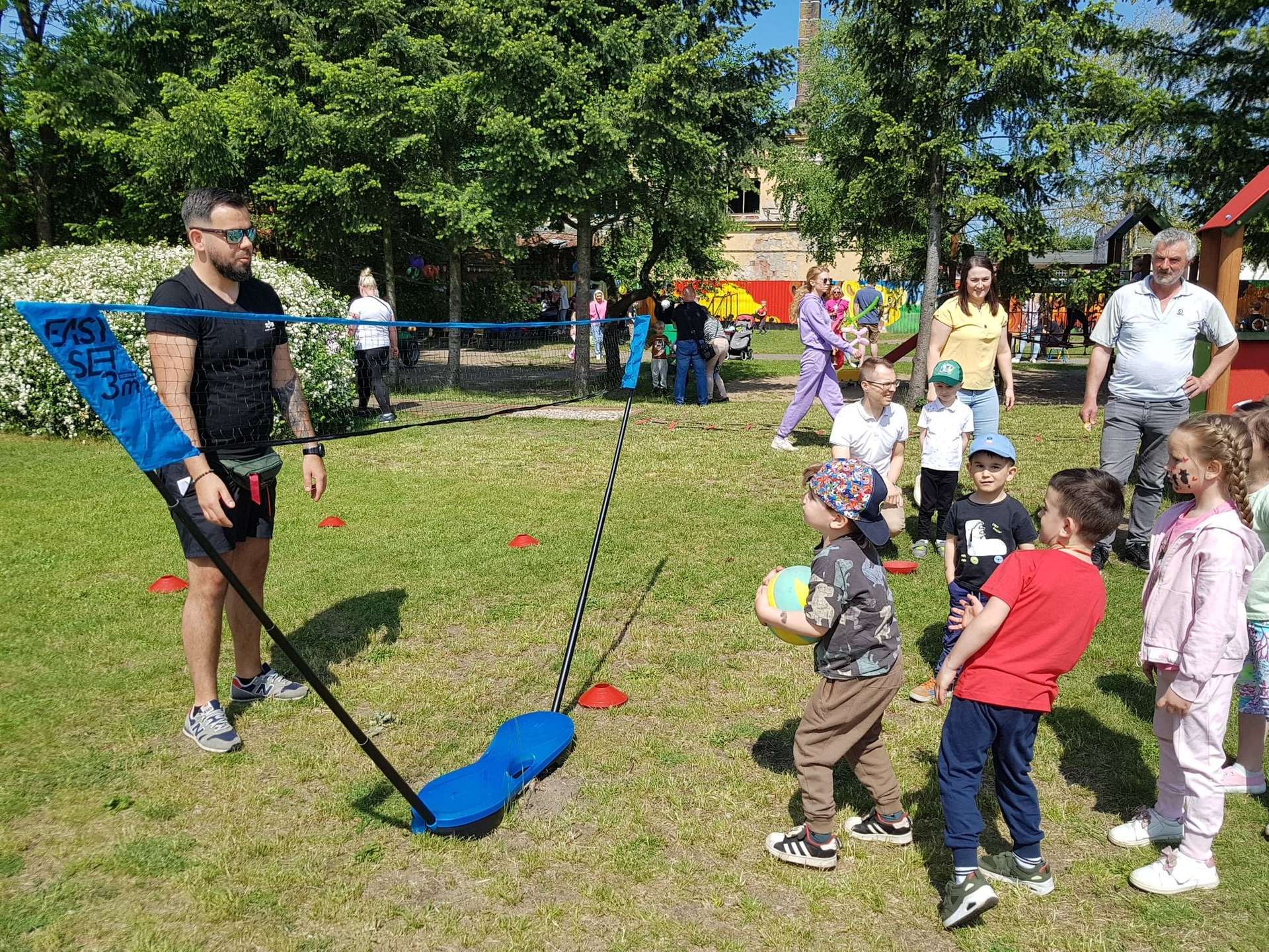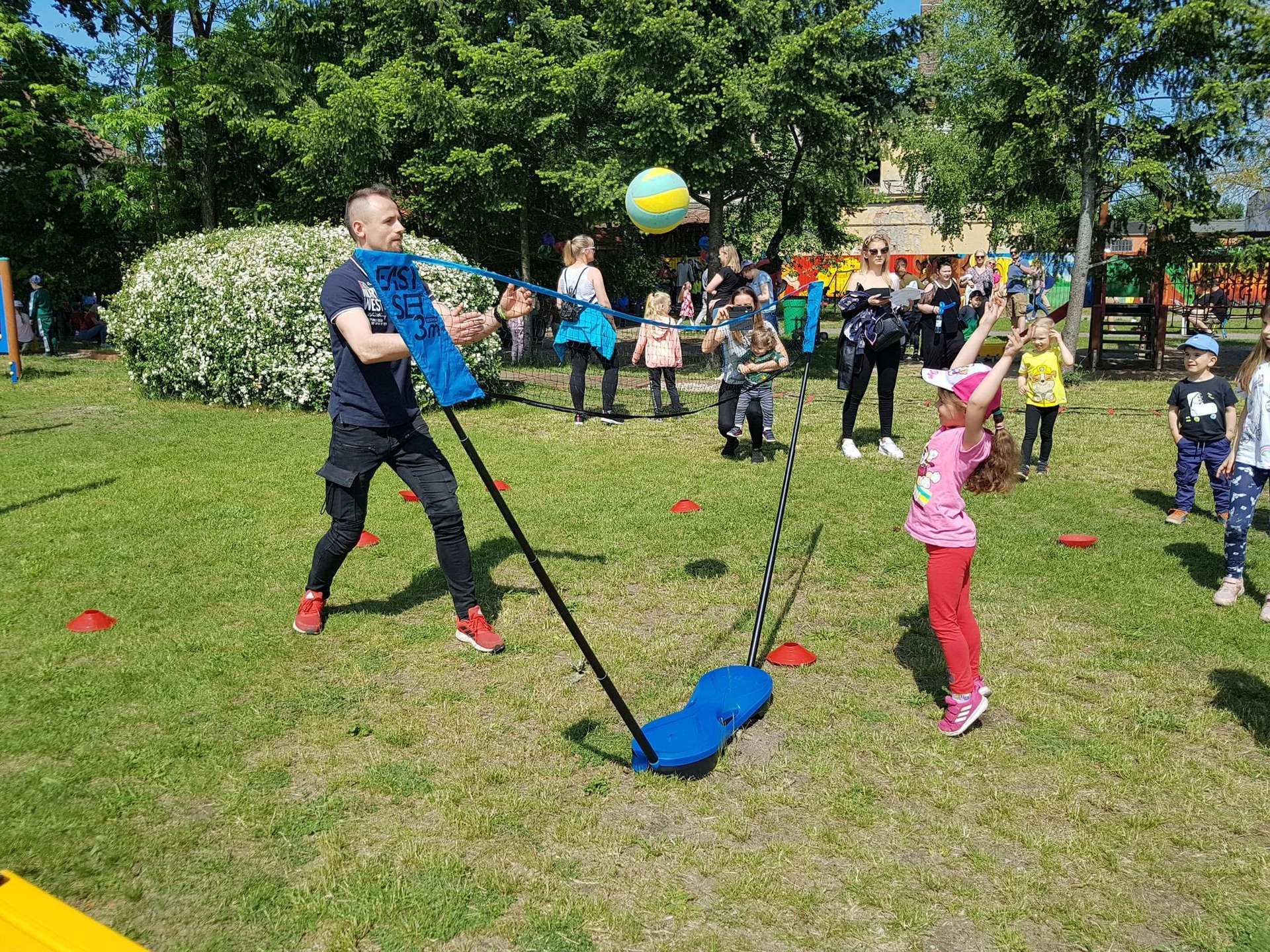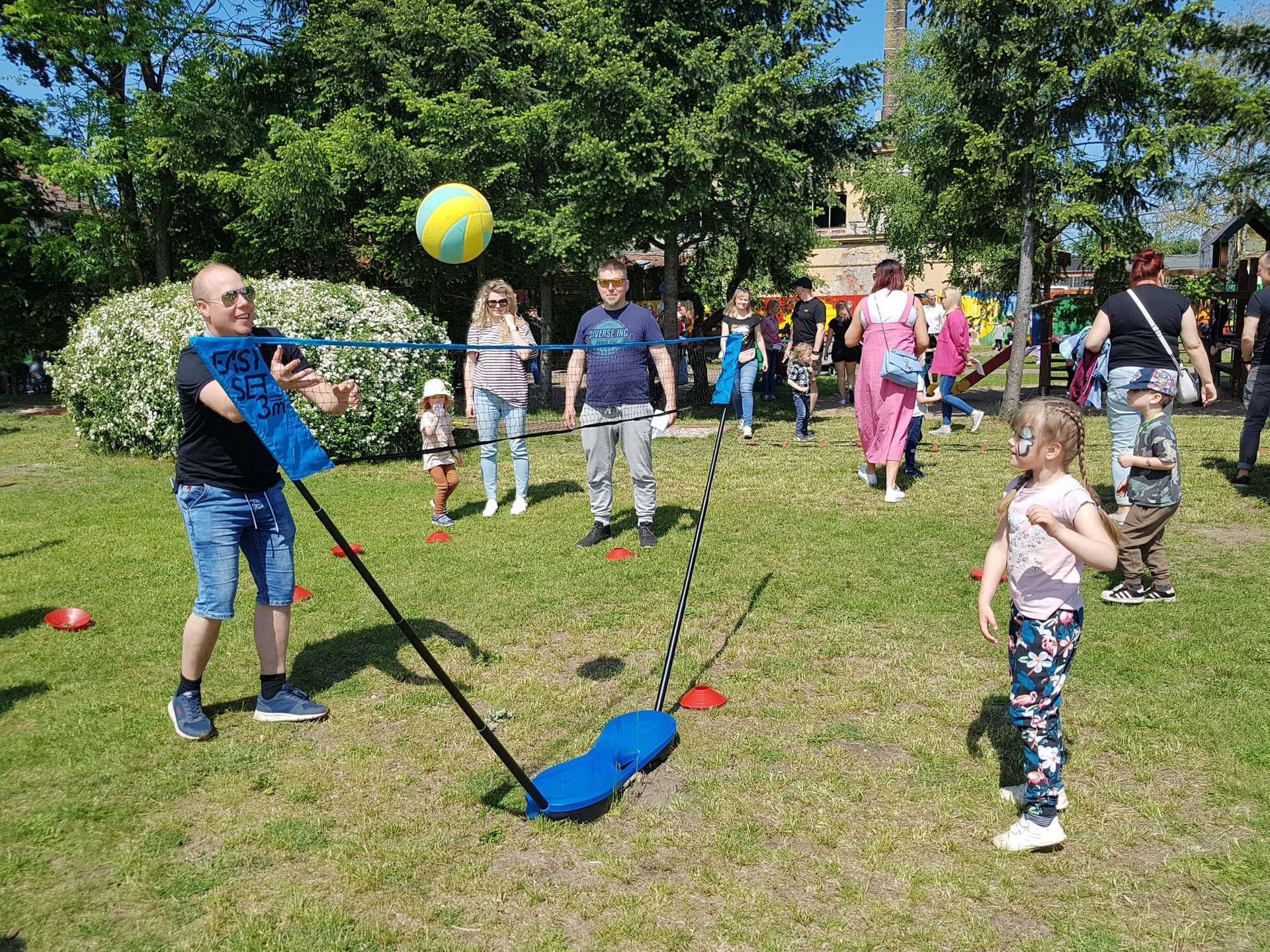 4 czerwca, w piękny słoneczny dzień odbył się Festyn Rodzinny pod hasłem "Zamiast siedzieć przed ekranem, ruszaj się z aktywnym planem". Festyn podzielony był na dwie części : część artystyczną i rekreacyjną. W tej drugiej dzieci wraz z rodzicami uczestniczyły w konkurencjach sportowych, które poprowadził p. Michał Pietrzyk - tata dziewczynek z naszego przedszkola oraz nauczyciele. Pozytywnych emocji było bardzo wiele. Po wykonaniu sportowych zadań każde dziecko otrzymało złoty medal. Uczestnicy mieli również wiele innych atrakcji. Nie zabrakło również tradycyjnego grillowania i słodkości.
