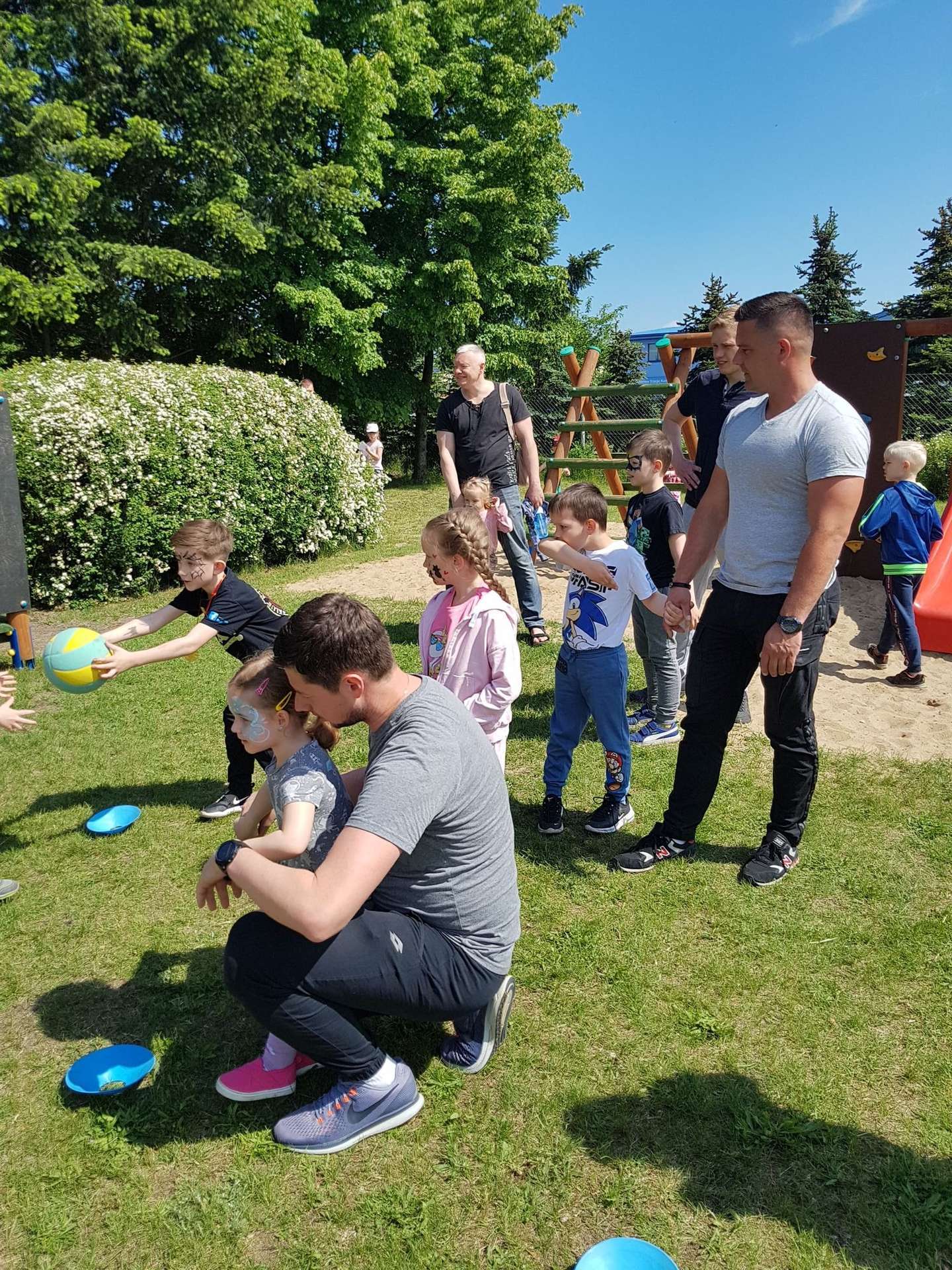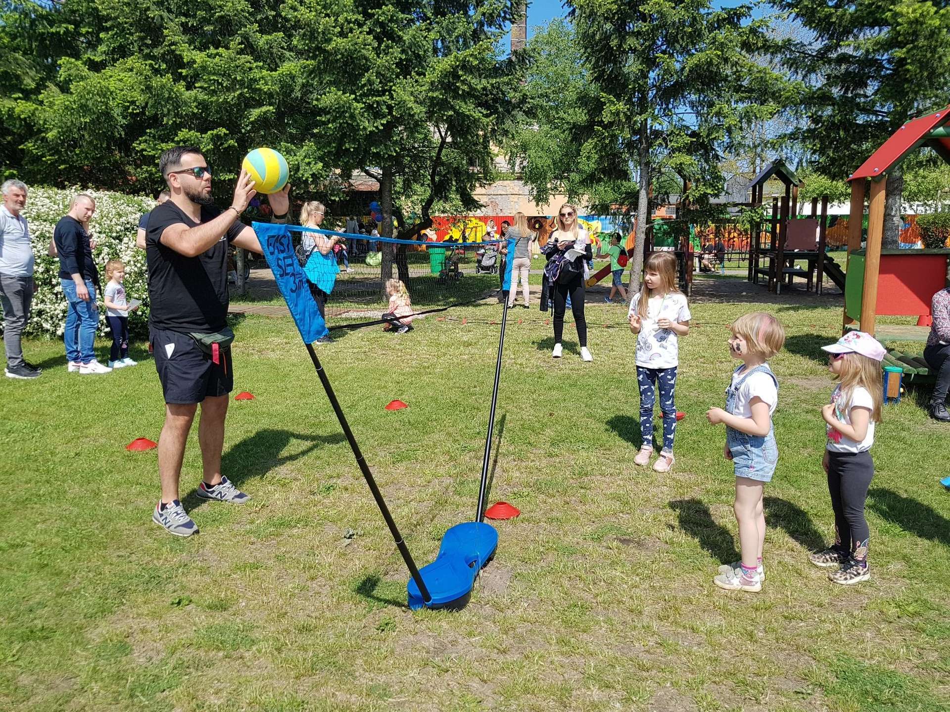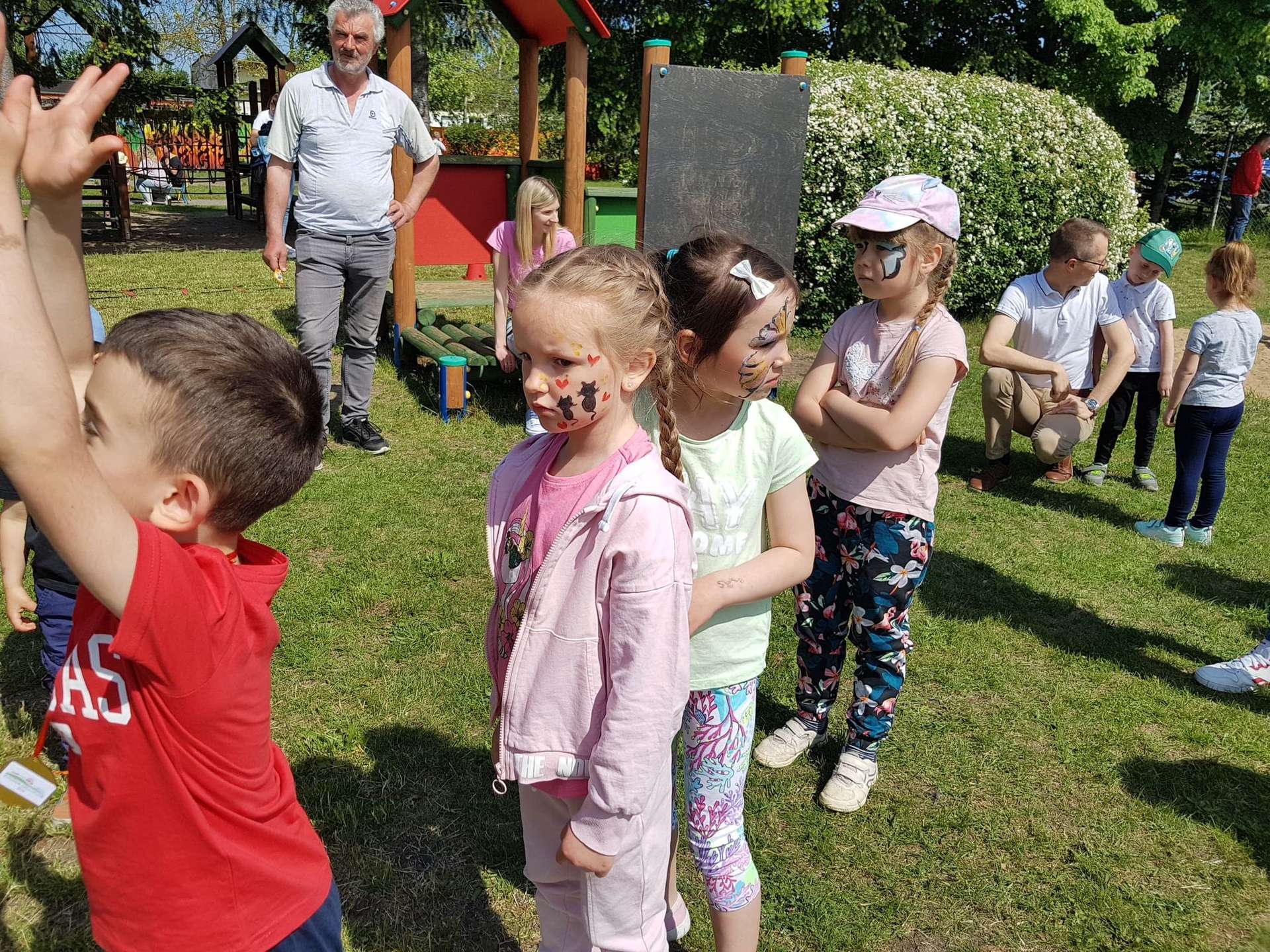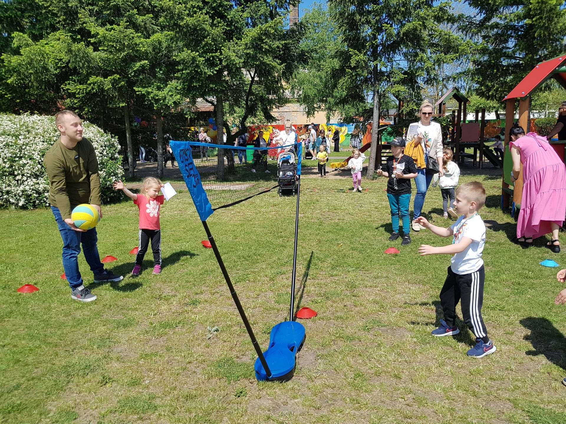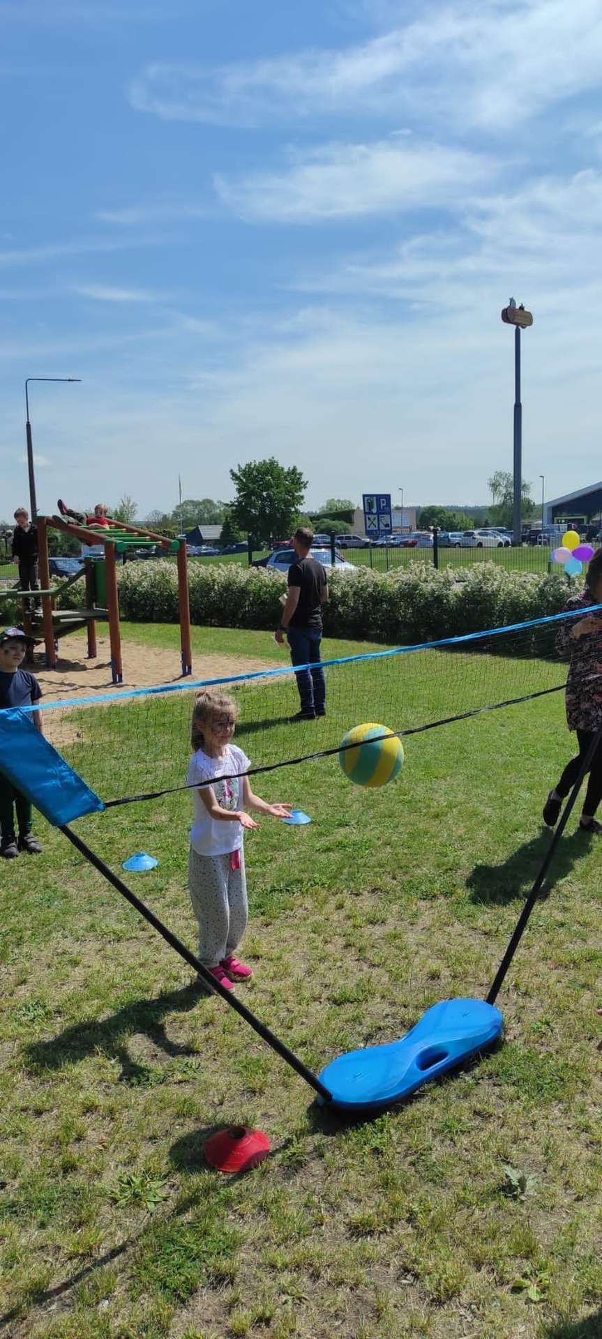 4 czerwca, w piękny słoneczny dzień odbył się Festyn Rodzinny pod hasłem "Zamiast siedzieć przed ekranem, ruszaj się z aktywnym planem". Festyn podzielony był na dwie części : część artystyczną i rekreacyjną. W tej drugiej dzieci wraz z rodzicami uczestniczyły w konkurencjach sportowych, które poprowadził p. Michał Pietrzyk - tata dziewczynek z naszego przedszkola oraz nauczyciele. Pozytywnych emocji było bardzo wiele. Po wykonaniu sportowych zadań każde dziecko otrzymało złoty medal. Uczestnicy mieli również wiele innych atrakcji. Nie zabrakło również tradycyjnego grillowania i słodkości.