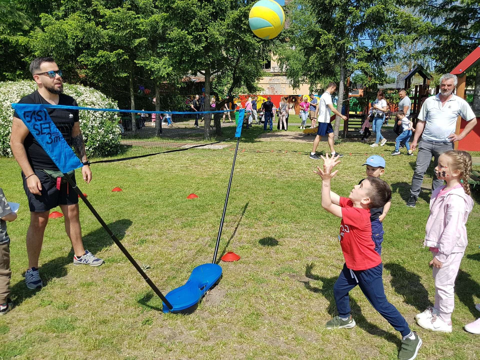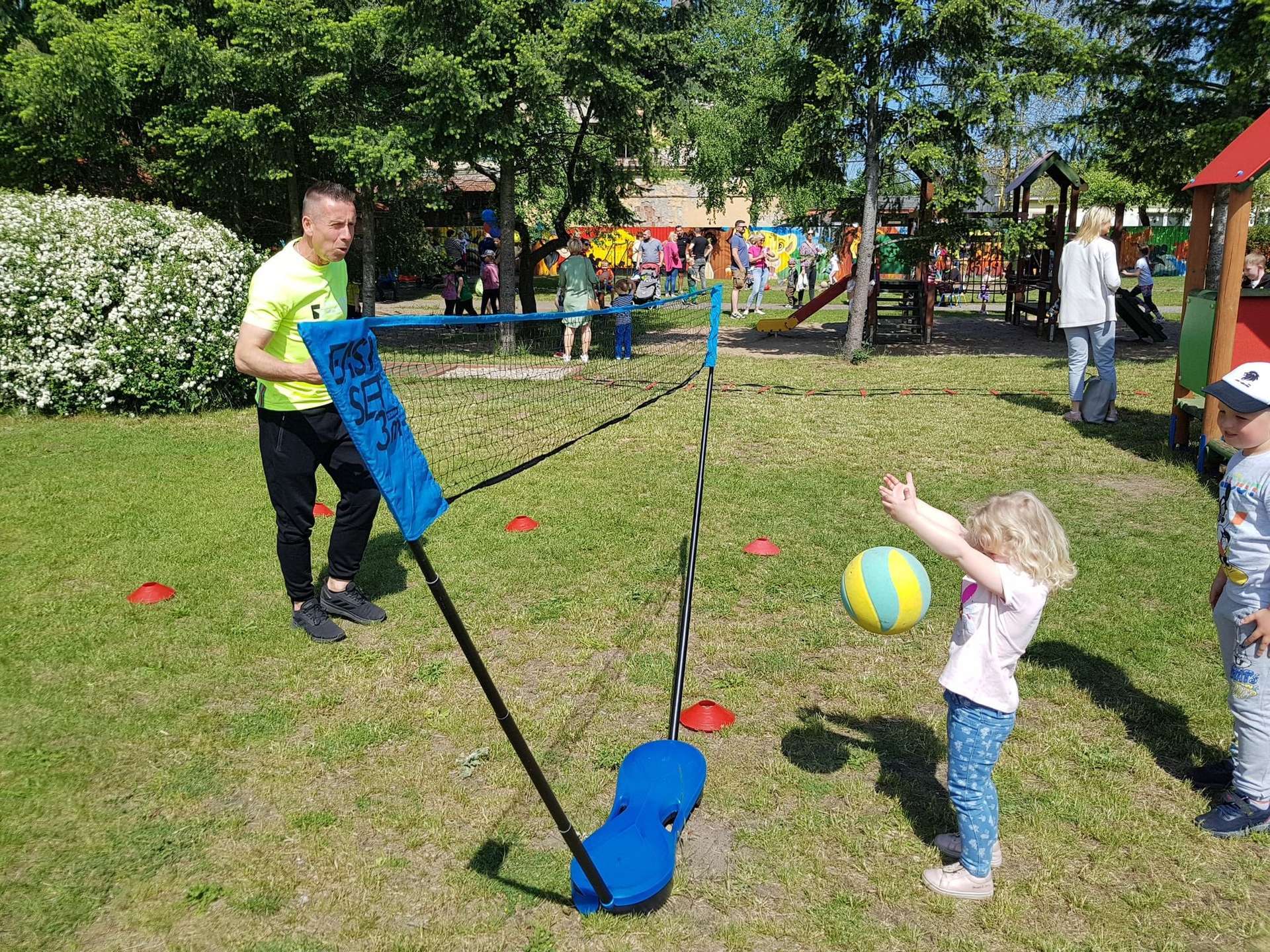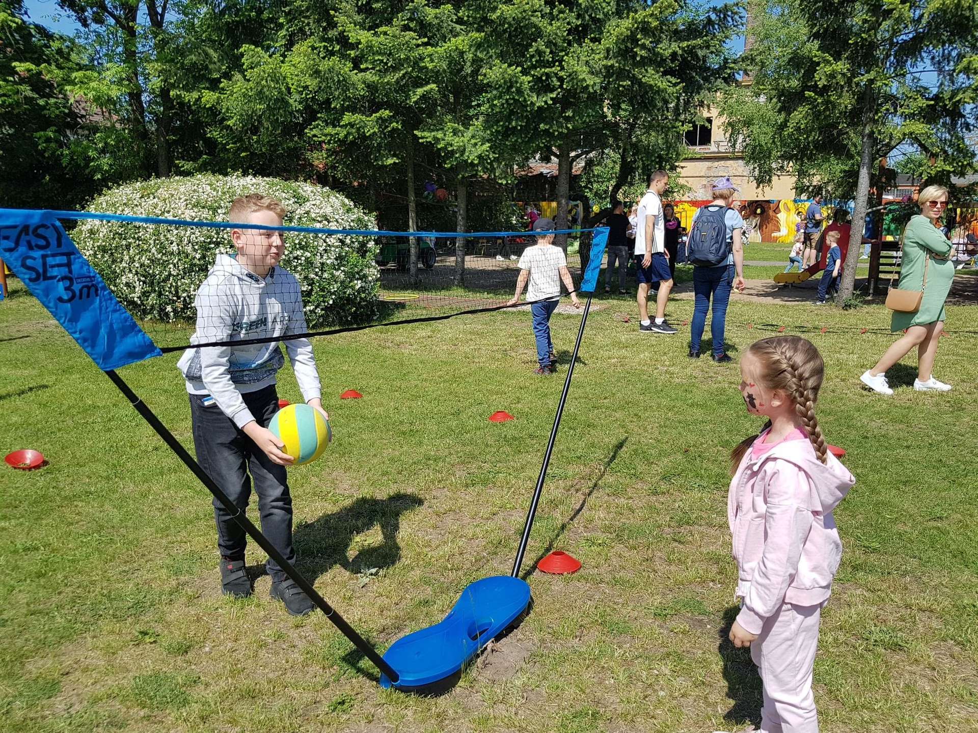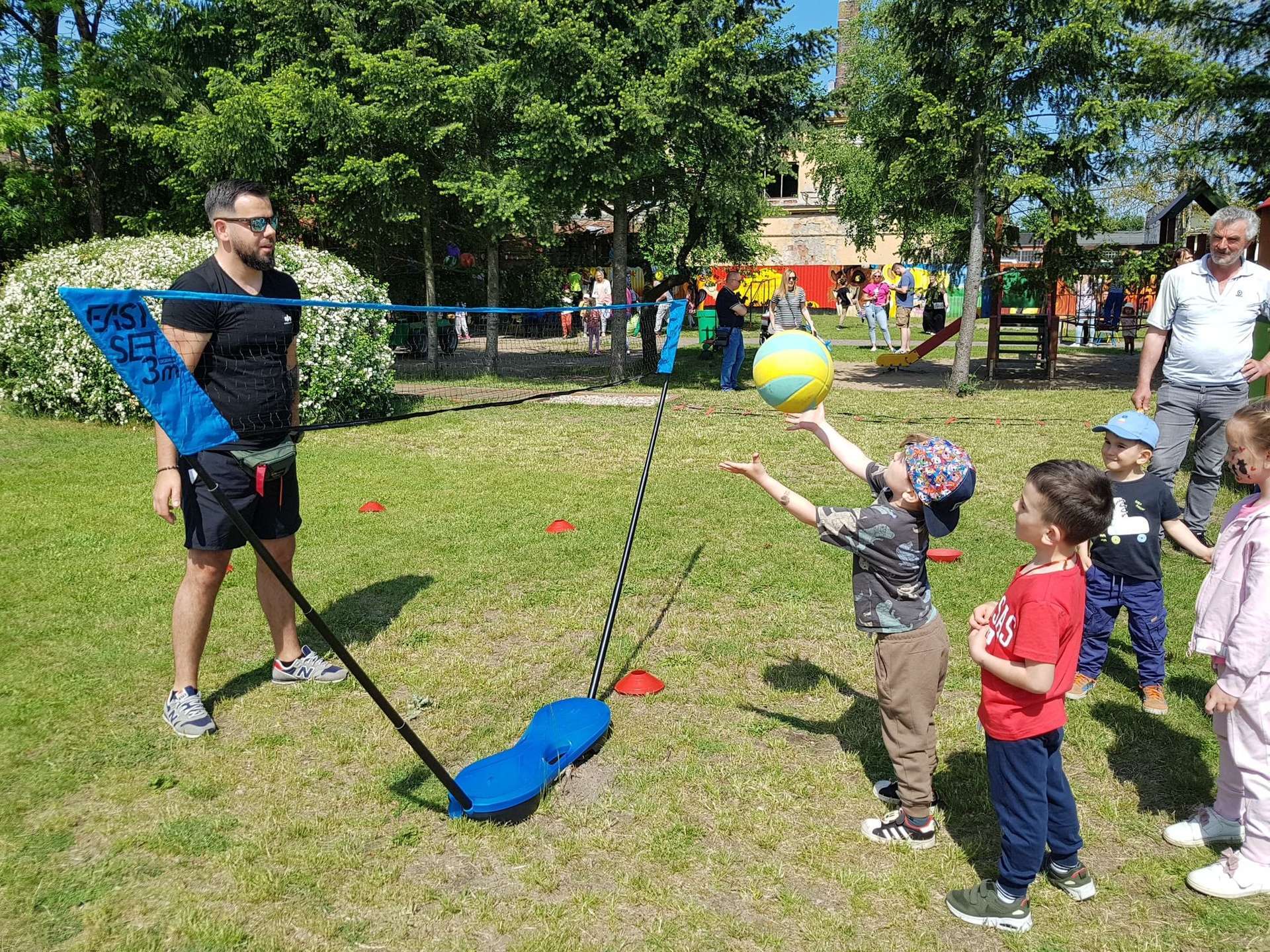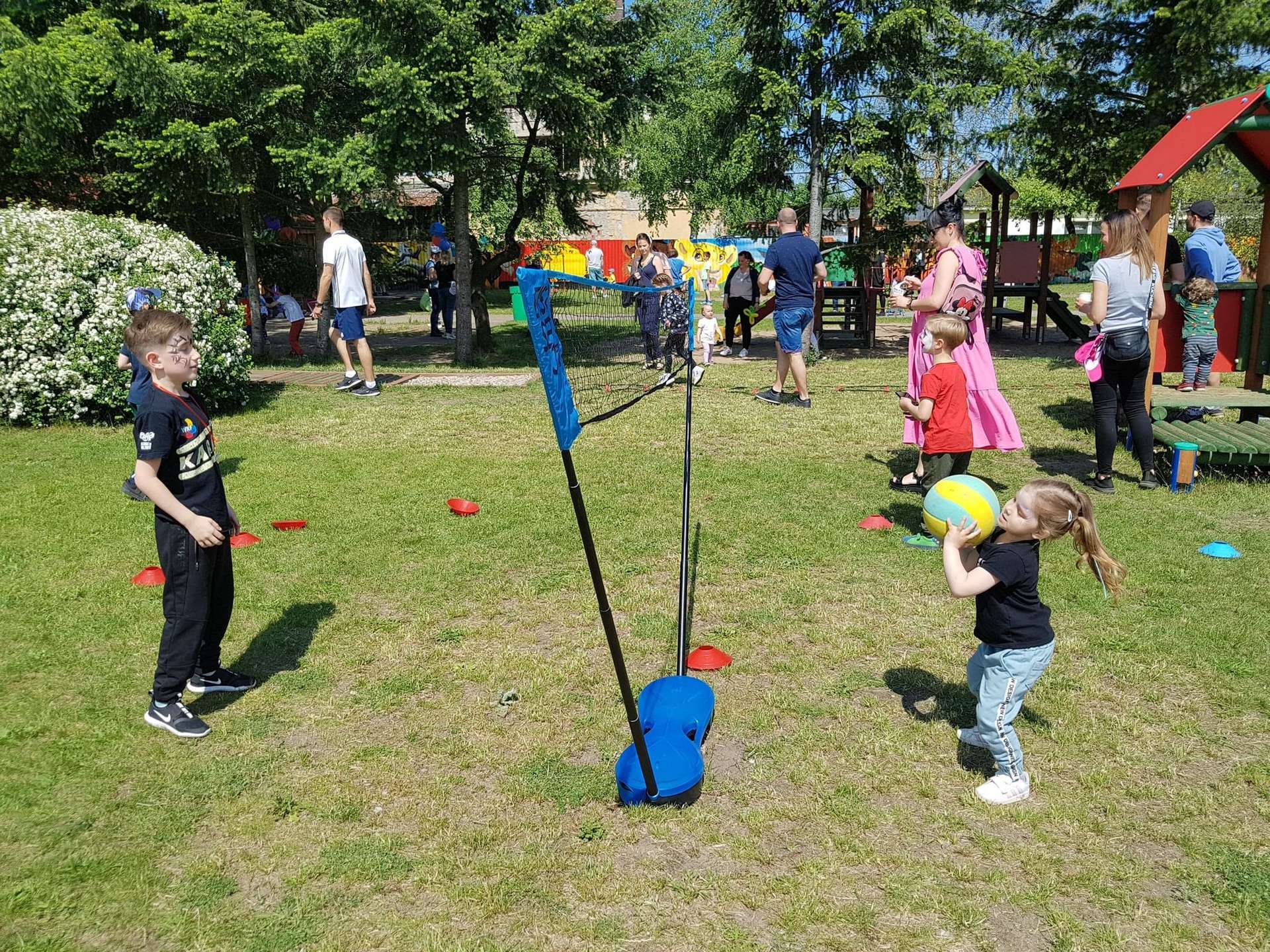 4 czerwca, w piękny słoneczny dzień odbył się Festyn Rodzinny pod hasłem "Zamiast siedzieć przed ekranem, ruszaj się z aktywnym planem". Festyn podzielony był na dwie części : część artystyczną i rekreacyjną. W tej drugiej dzieci wraz z rodzicami uczestniczyły w konkurencjach sportowych, które poprowadził p. Michał Pietrzyk - tata dziewczynek z naszego przedszkola oraz nauczyciele. Pozytywnych emocji było bardzo wiele. Po wykonaniu sportowych zadań każde dziecko otrzymało złoty medal. Uczestnicy mieli również wiele innych atrakcji. Nie zabrakło również tradycyjnego grillowania i słodkości.