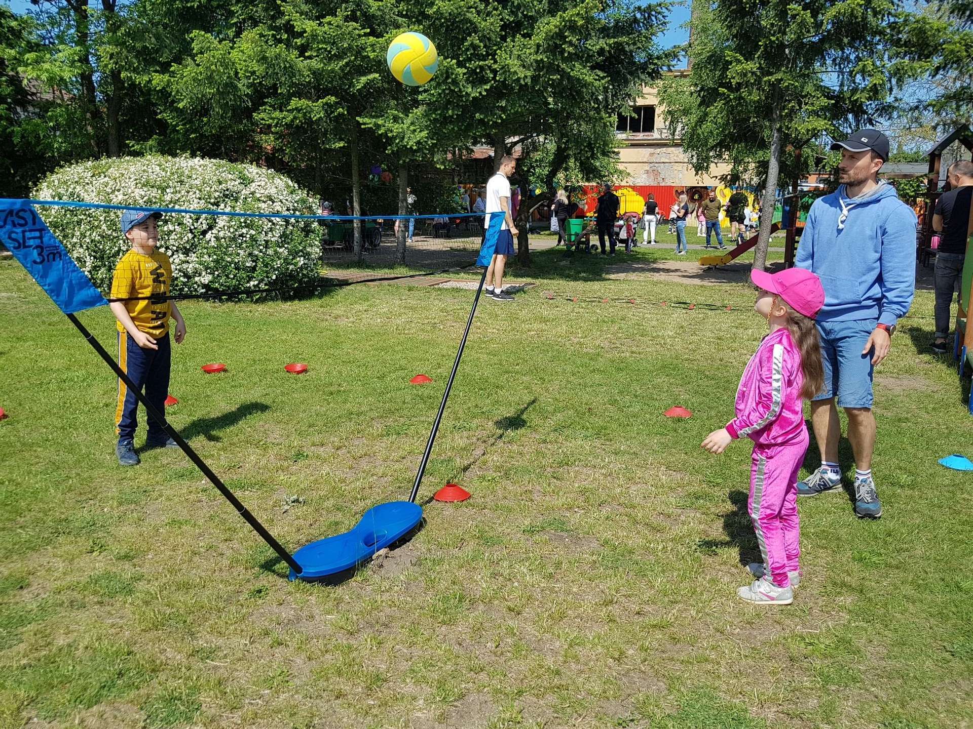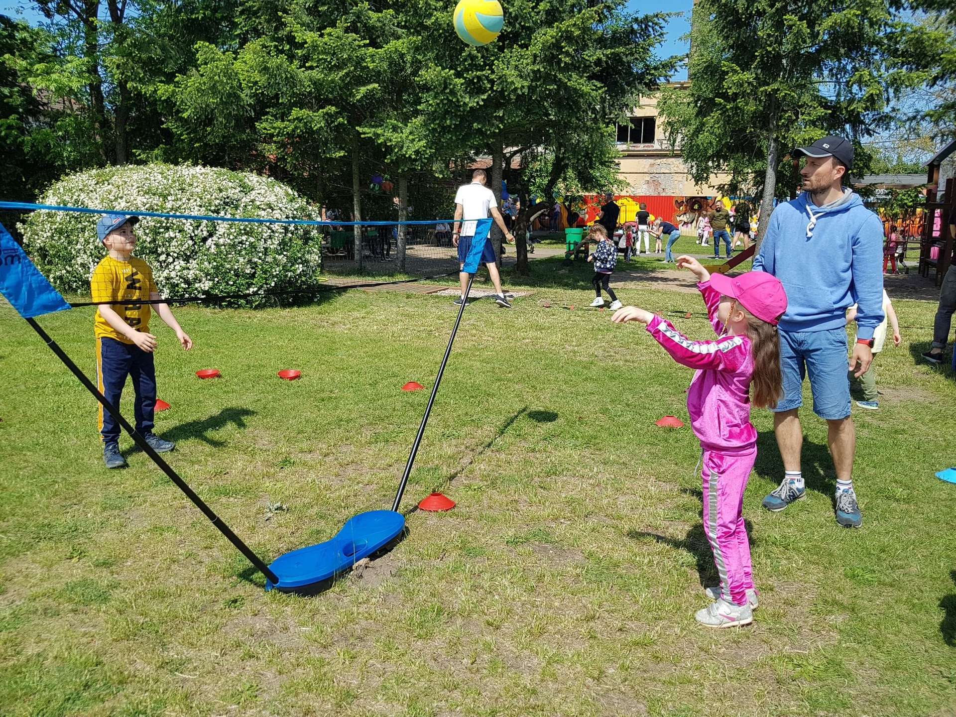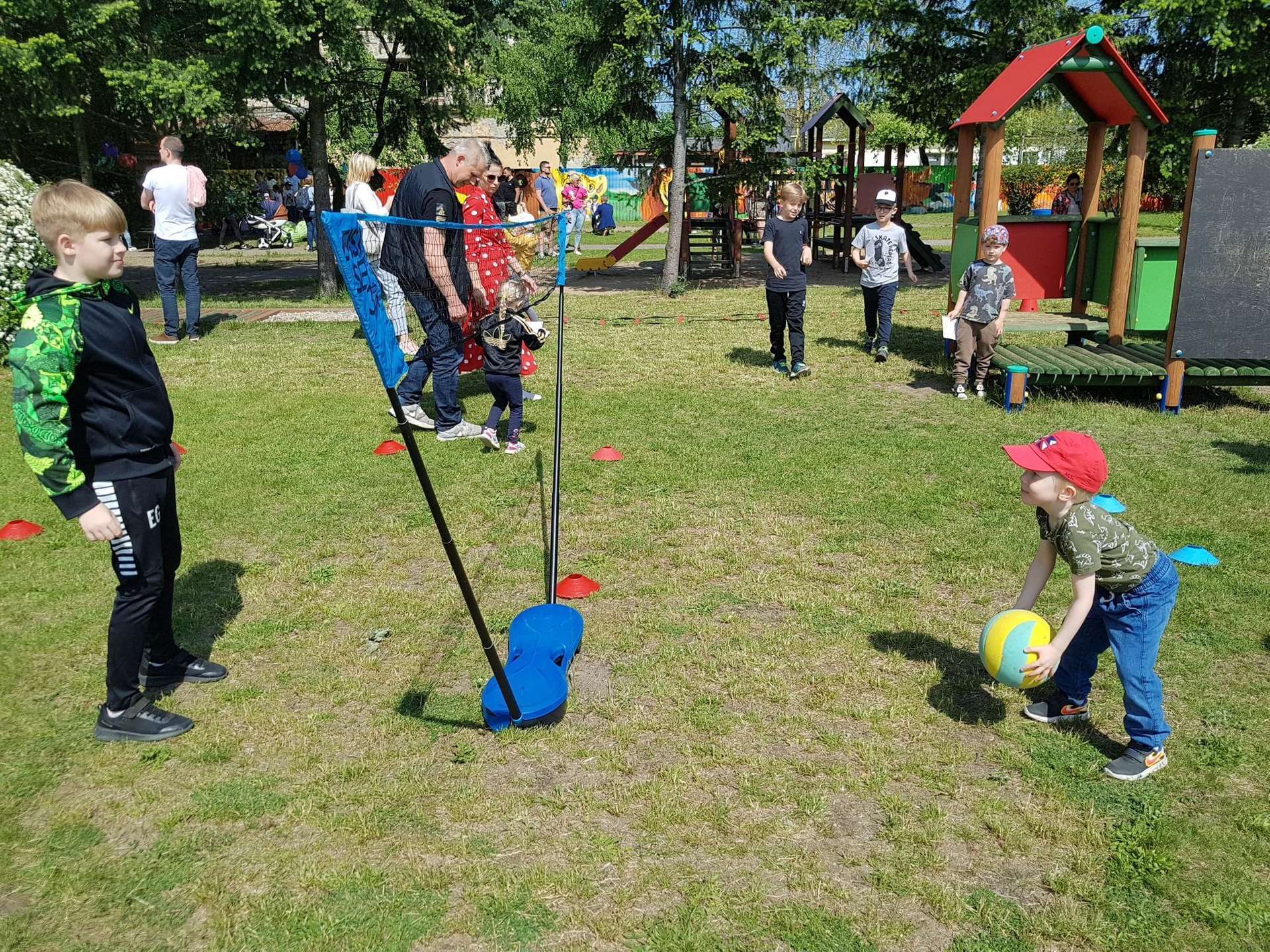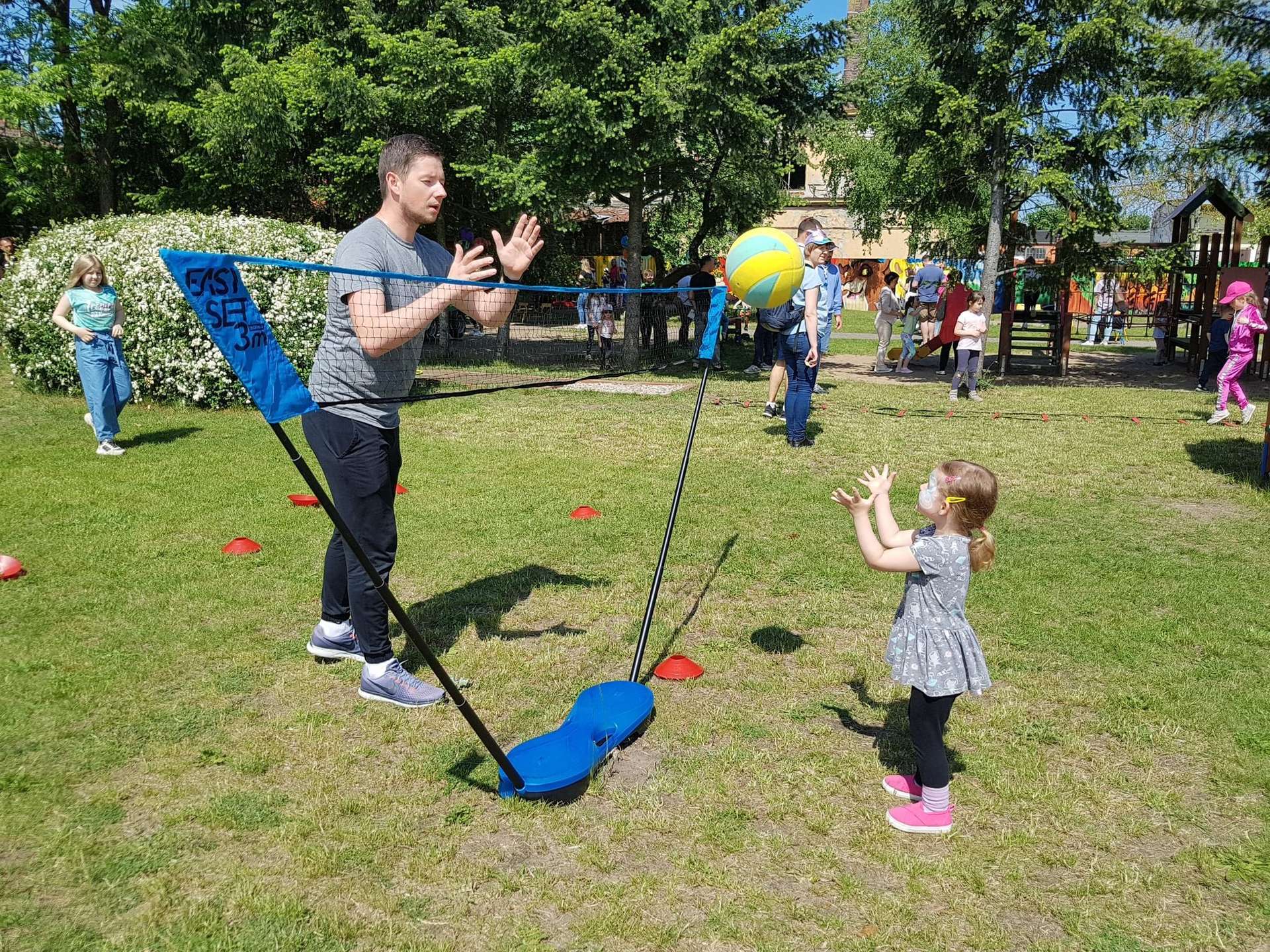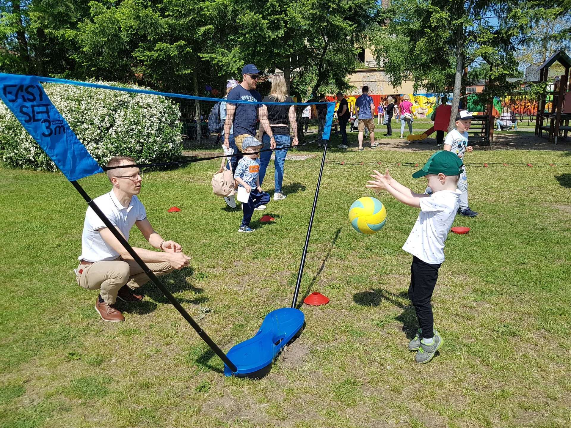 4 czerwca, w piękny słoneczny dzień odbył się Festyn Rodzinny pod hasłem "Zamiast siedzieć przed ekranem, ruszaj się z aktywnym planem". Festyn podzielony był na dwie części : część artystyczną i rekreacyjną. W tej drugiej dzieci wraz z rodzicami uczestniczyły w konkurencjach sportowych, które poprowadził p. Michał Pietrzyk - tata dziewczynek z naszego przedszkola oraz nauczyciele. Pozytywnych emocji było bardzo wiele. Po wykonaniu sportowych zadań każde dziecko otrzymało złoty medal. Uczestnicy mieli również wiele innych atrakcji. Nie zabrakło również tradycyjnego grillowania i słodkości.