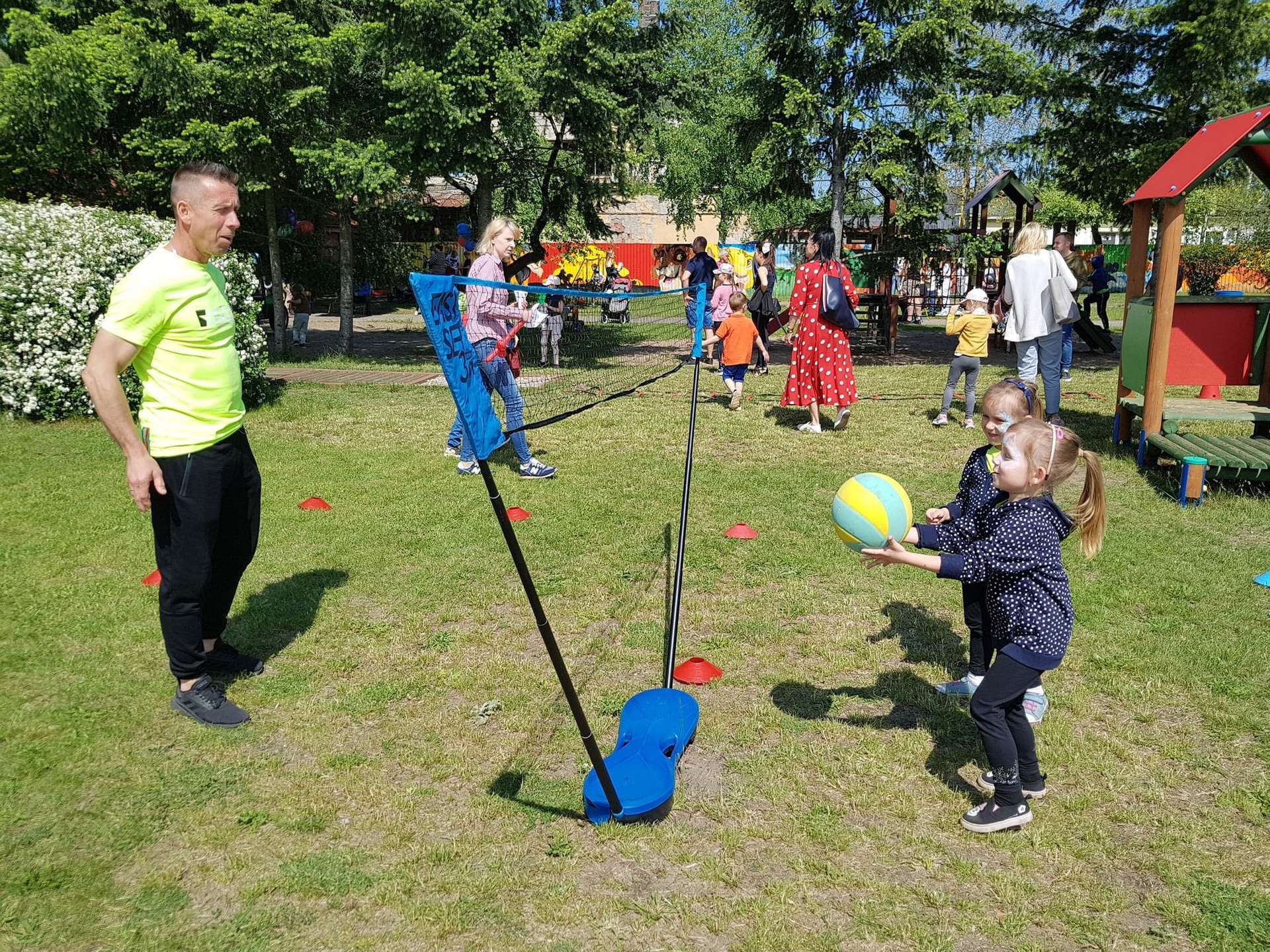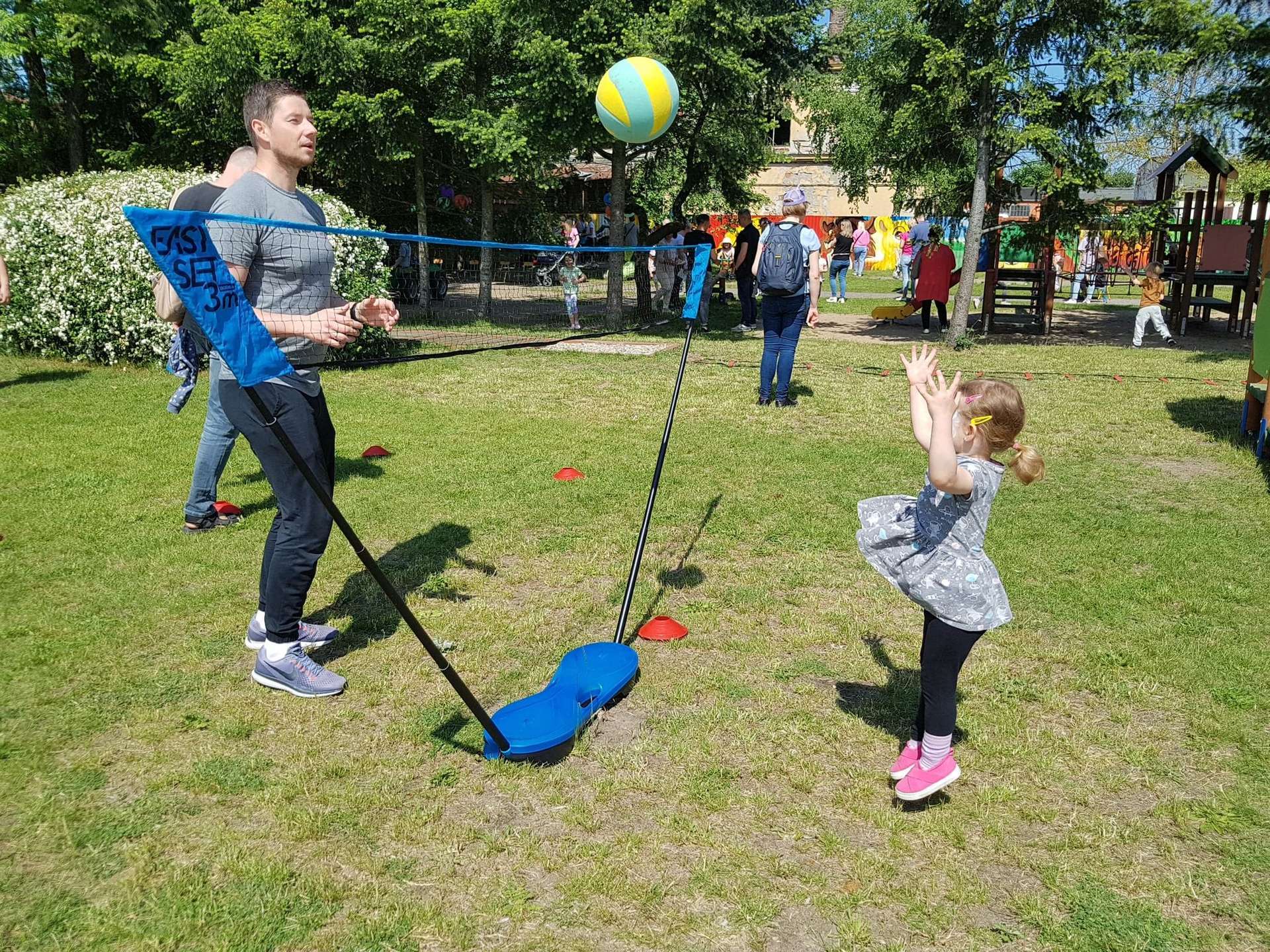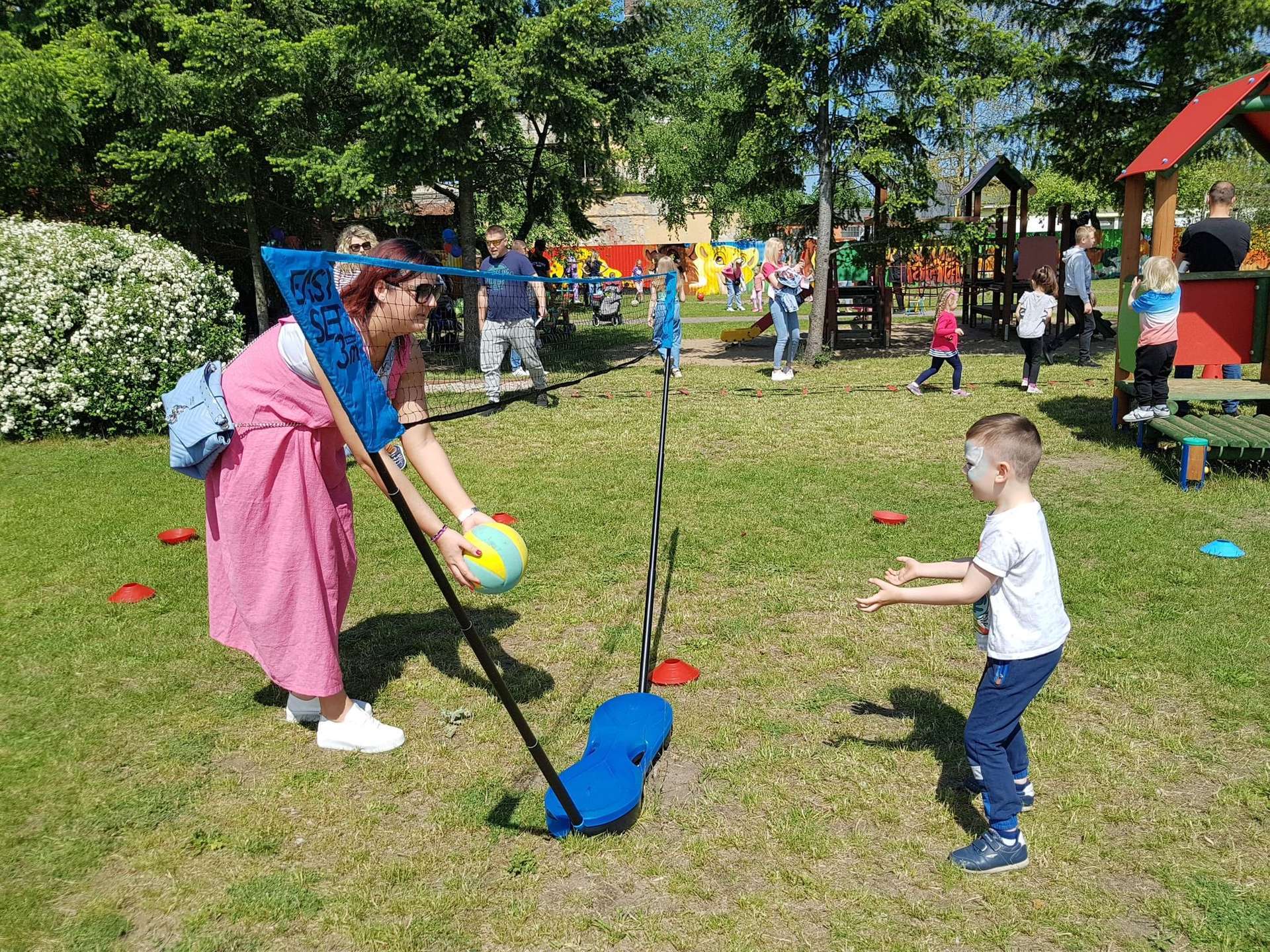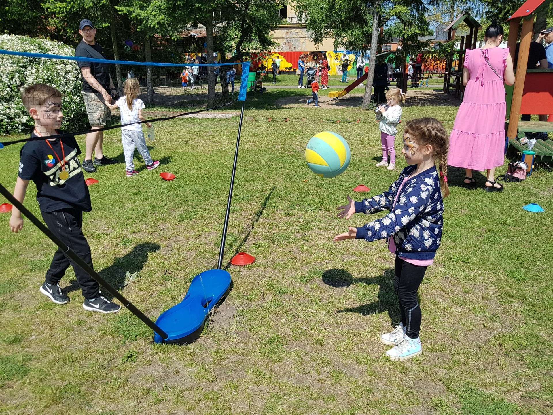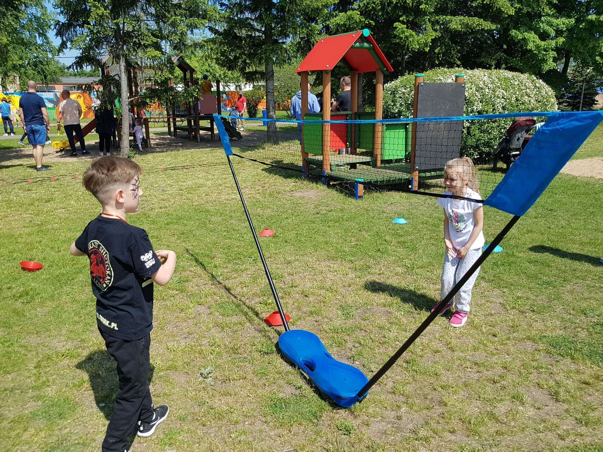 4 czerwca, w piękny słoneczny dzień odbył się Festyn Rodzinny pod hasłem "Zamiast siedzieć przed ekranem, ruszaj się z aktywnym planem". Festyn podzielony był na dwie części : część artystyczną i rekreacyjną. W tej drugiej dzieci wraz z rodzicami uczestniczyły w konkurencjach sportowych, które poprowadził p. Michał Pietrzyk - tata dziewczynek z naszego przedszkola oraz nauczyciele. Pozytywnych emocji było bardzo wiele. Po wykonaniu sportowych zadań każde dziecko otrzymało złoty medal. Uczestnicy mieli również wiele innych atrakcji. Nie zabrakło również tradycyjnego grillowania i słodkości.