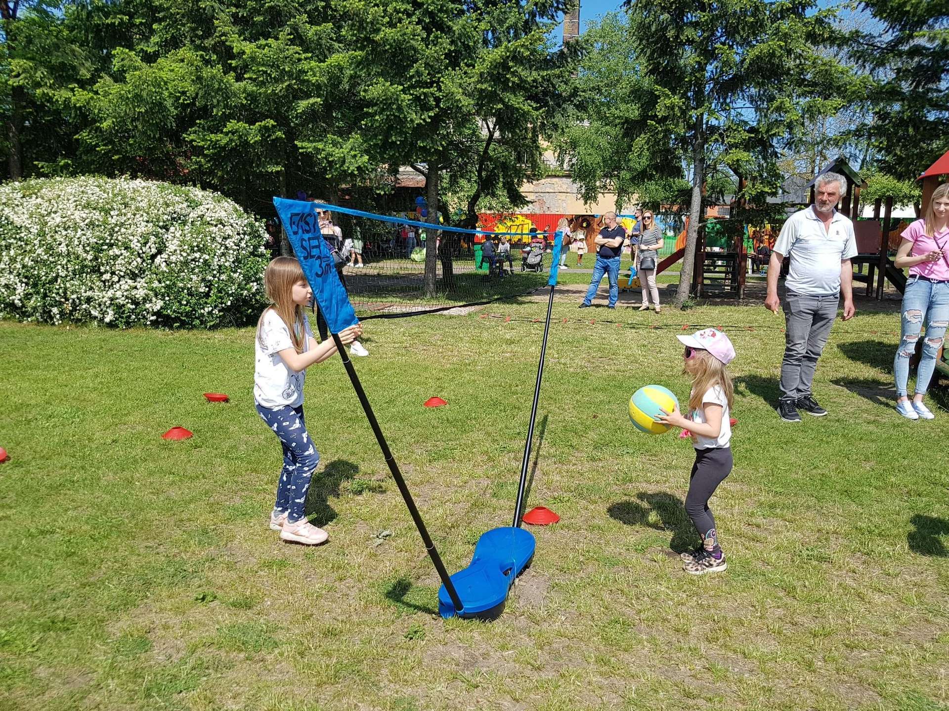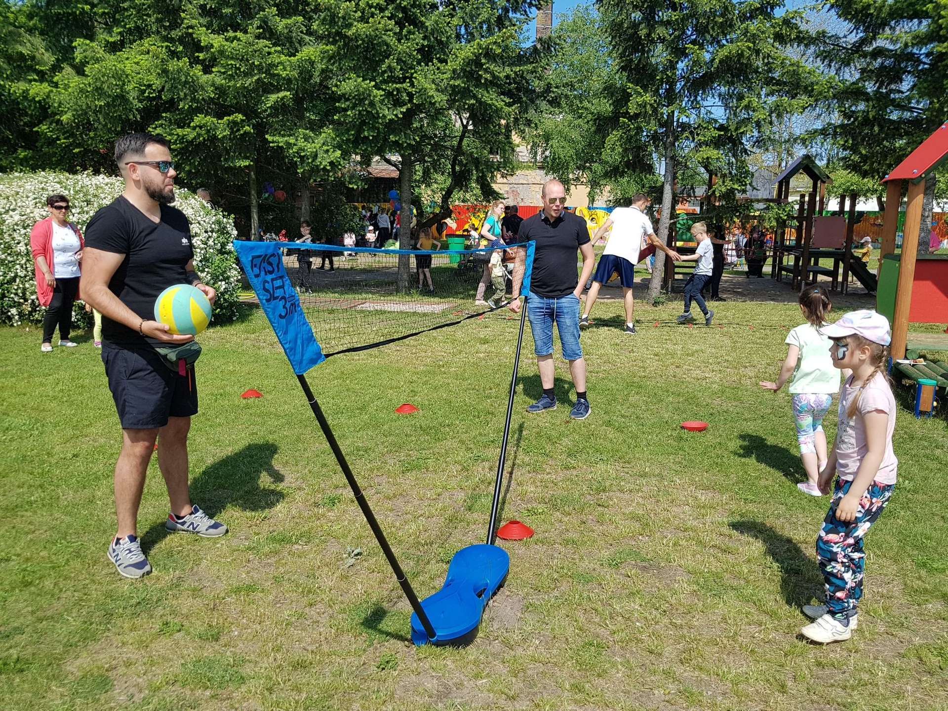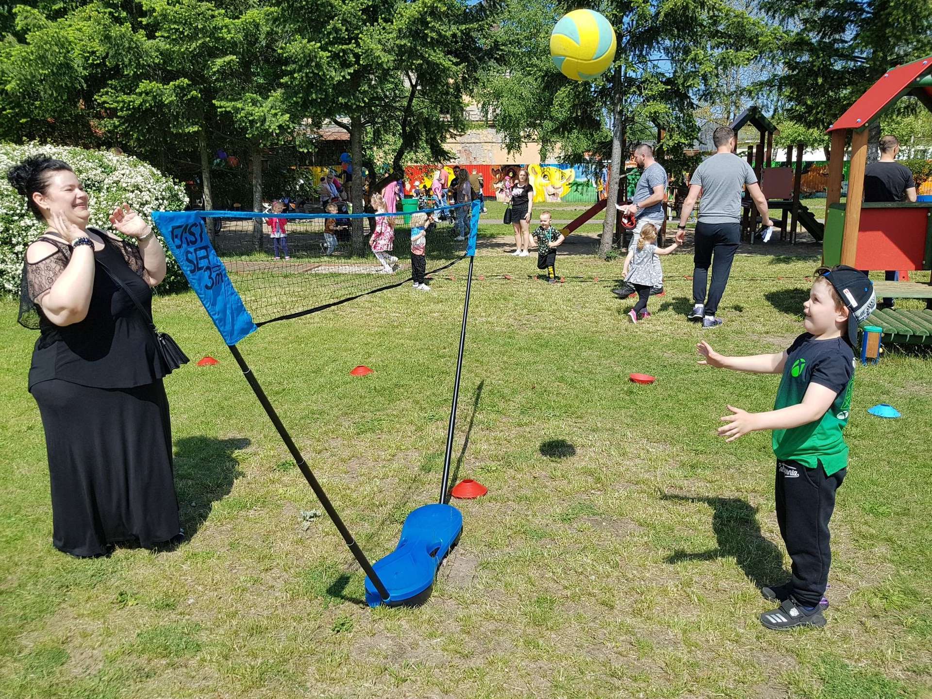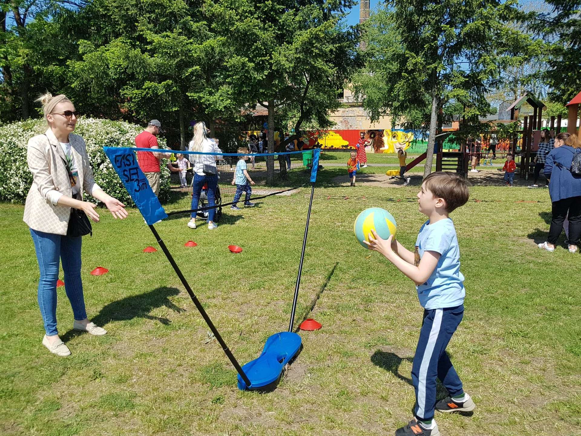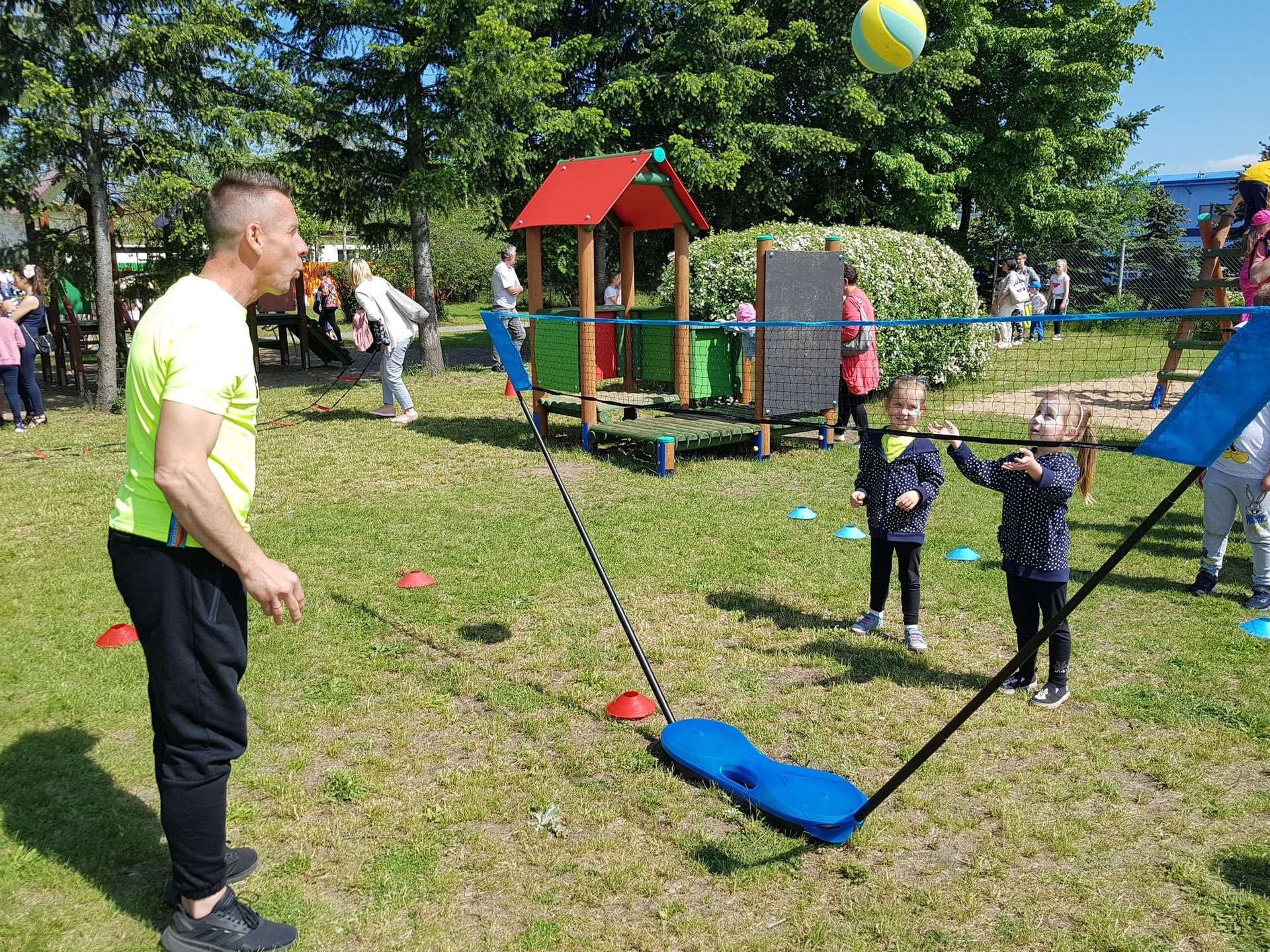4 czerwca, w piękny słoneczny dzień odbył się Festyn Rodzinny pod hasłem "Zamiast siedzieć przed ekranem, ruszaj się z aktywnym planem". Festyn podzielony był na dwie części : część artystyczną i rekreacyjną. W tej drugiej dzieci wraz z rodzicami uczestniczyły w konkurencjach sportowych, które poprowadził p. Michał Pietrzyk - tata dziewczynek z naszego przedszkola oraz nauczyciele. Pozytywnych emocji było bardzo wiele. Po wykonaniu sportowych zadań każde dziecko otrzymało złoty medal. Uczestnicy mieli również wiele innych atrakcji. Nie zabrakło również tradycyjnego grillowania i słodkości.