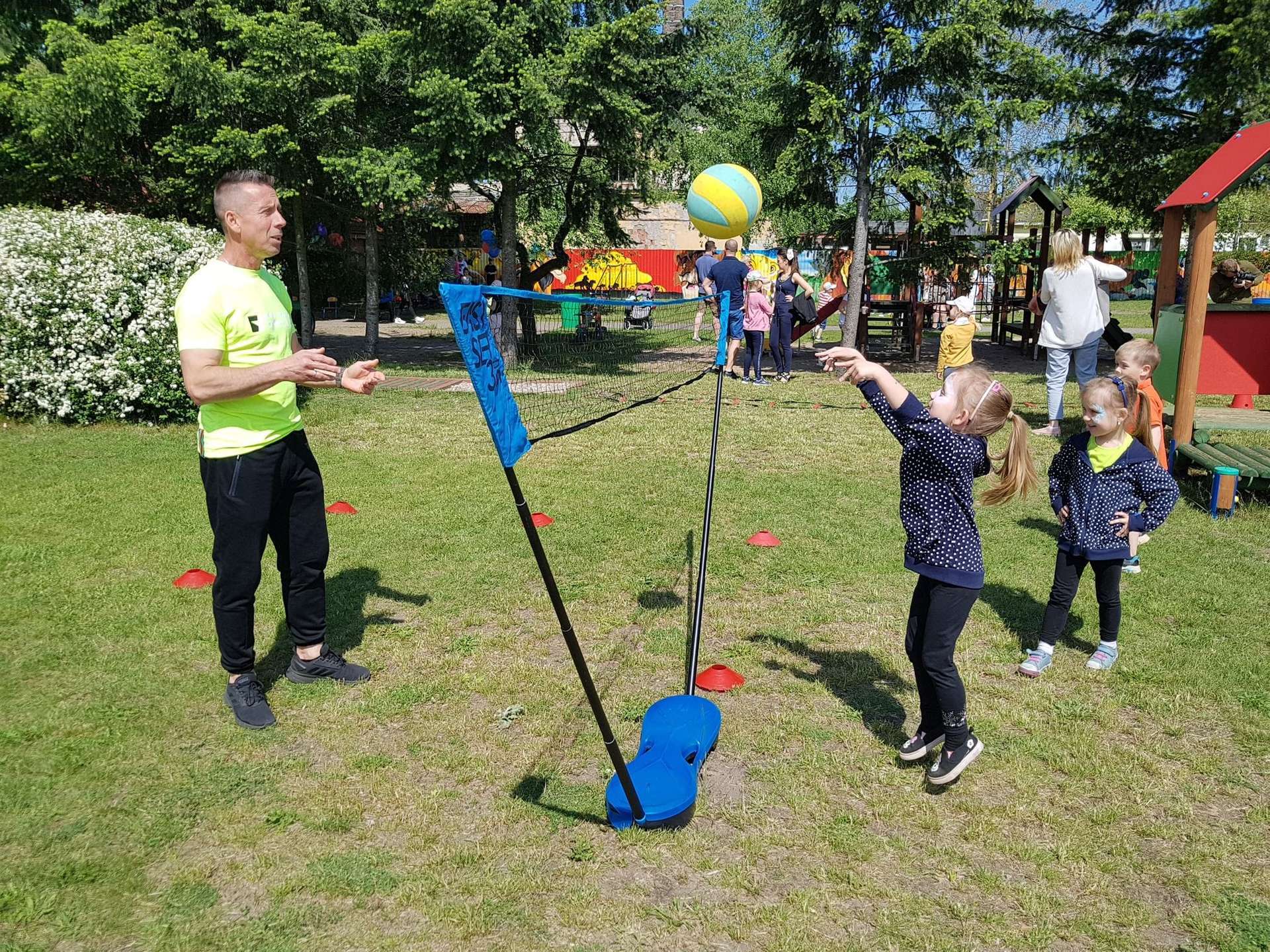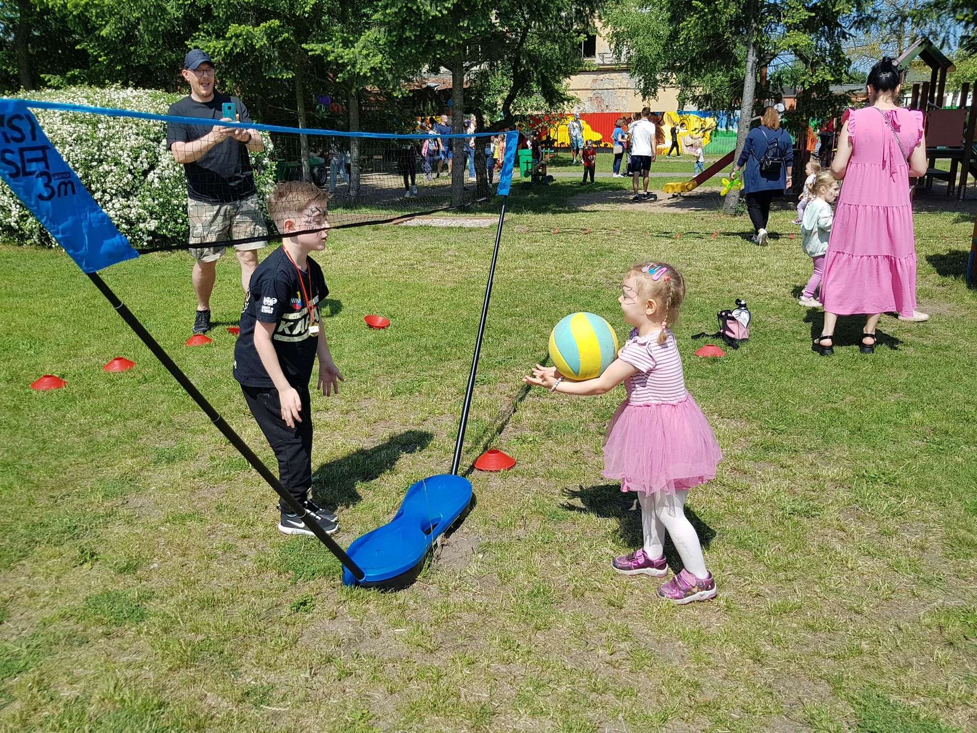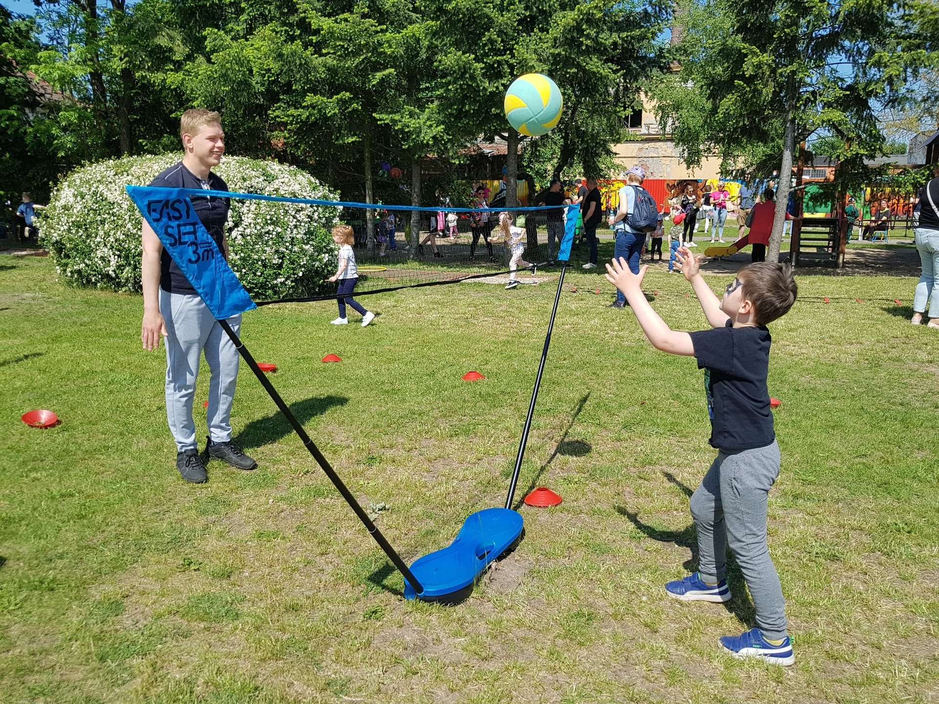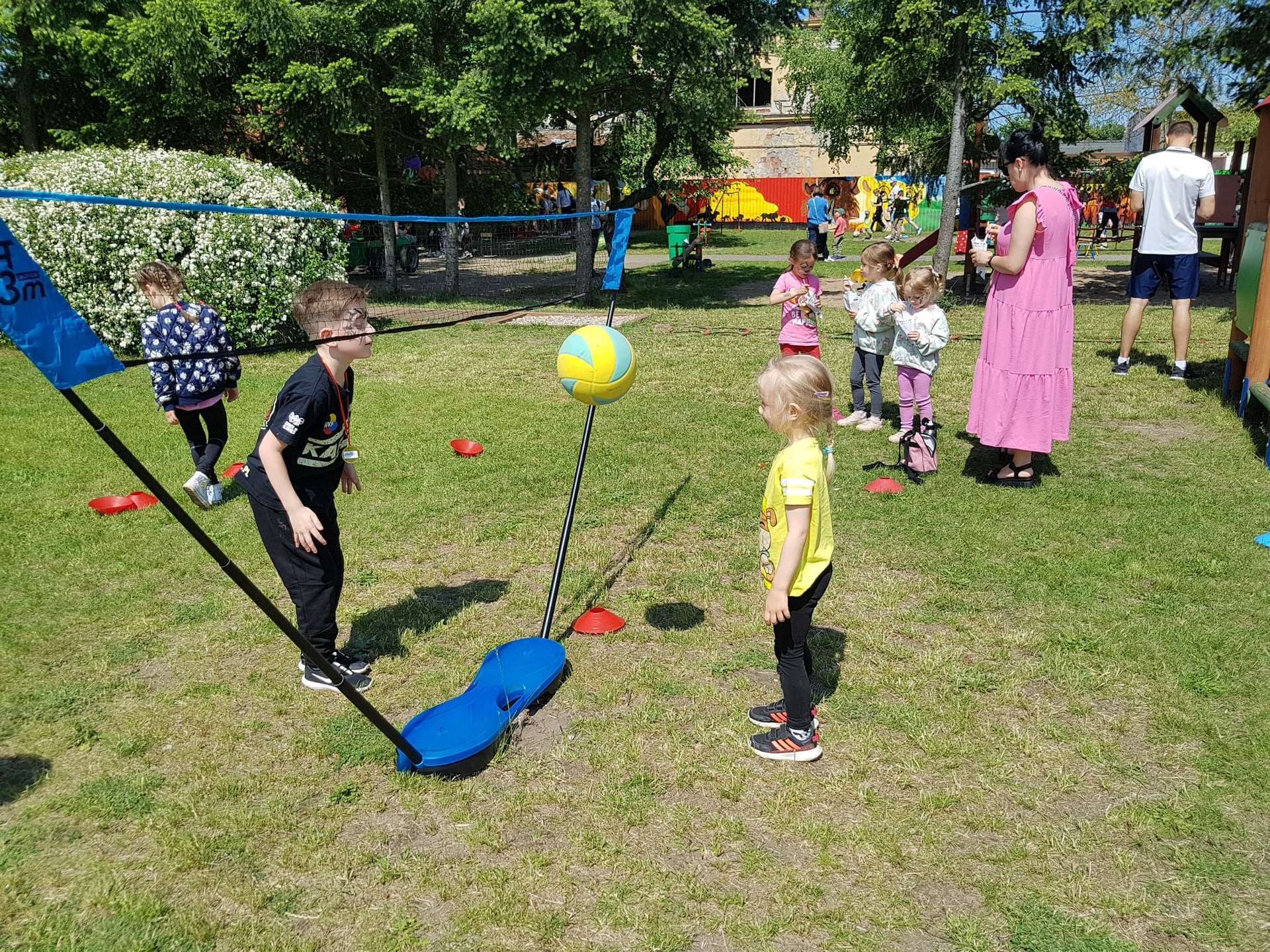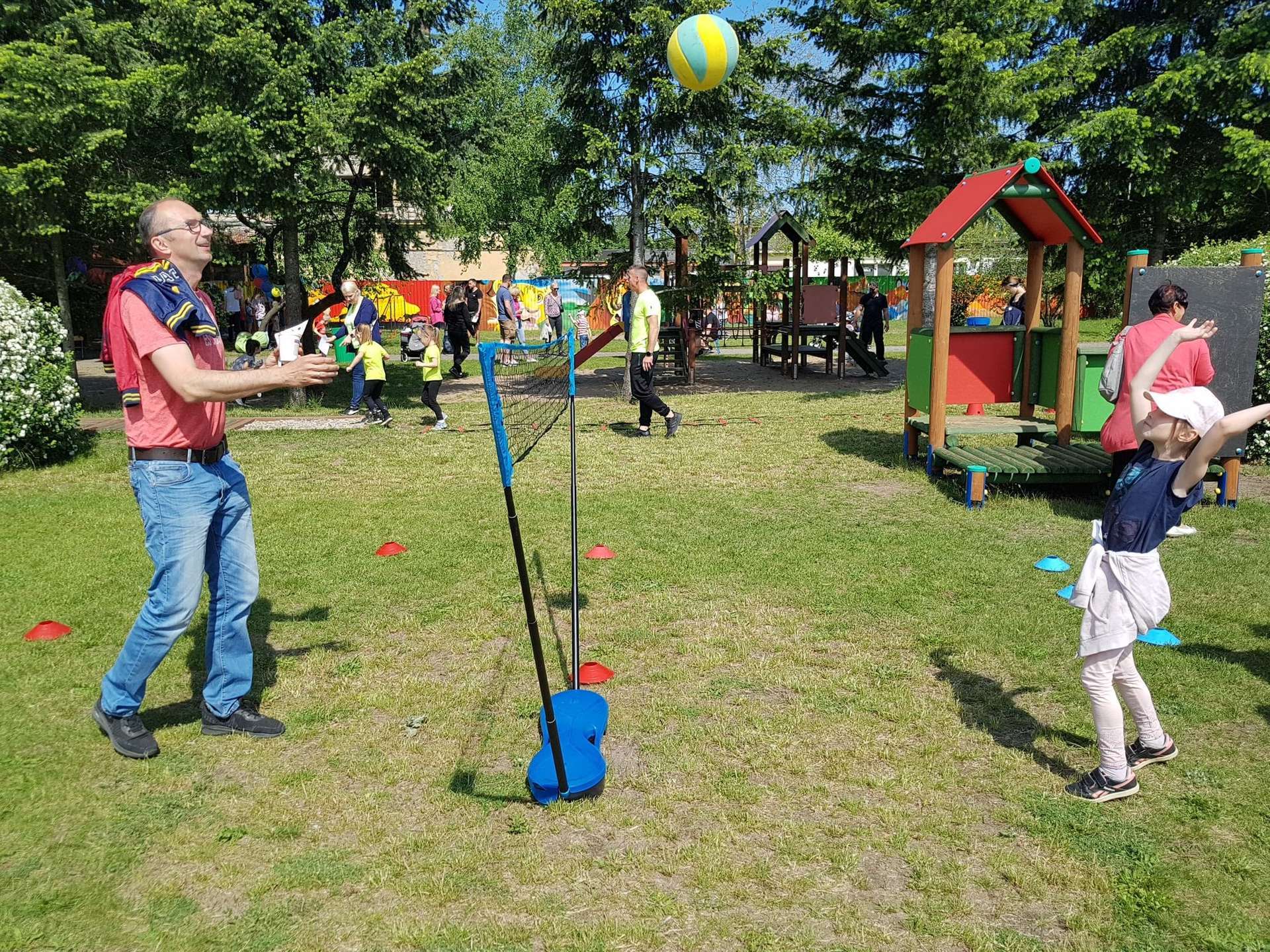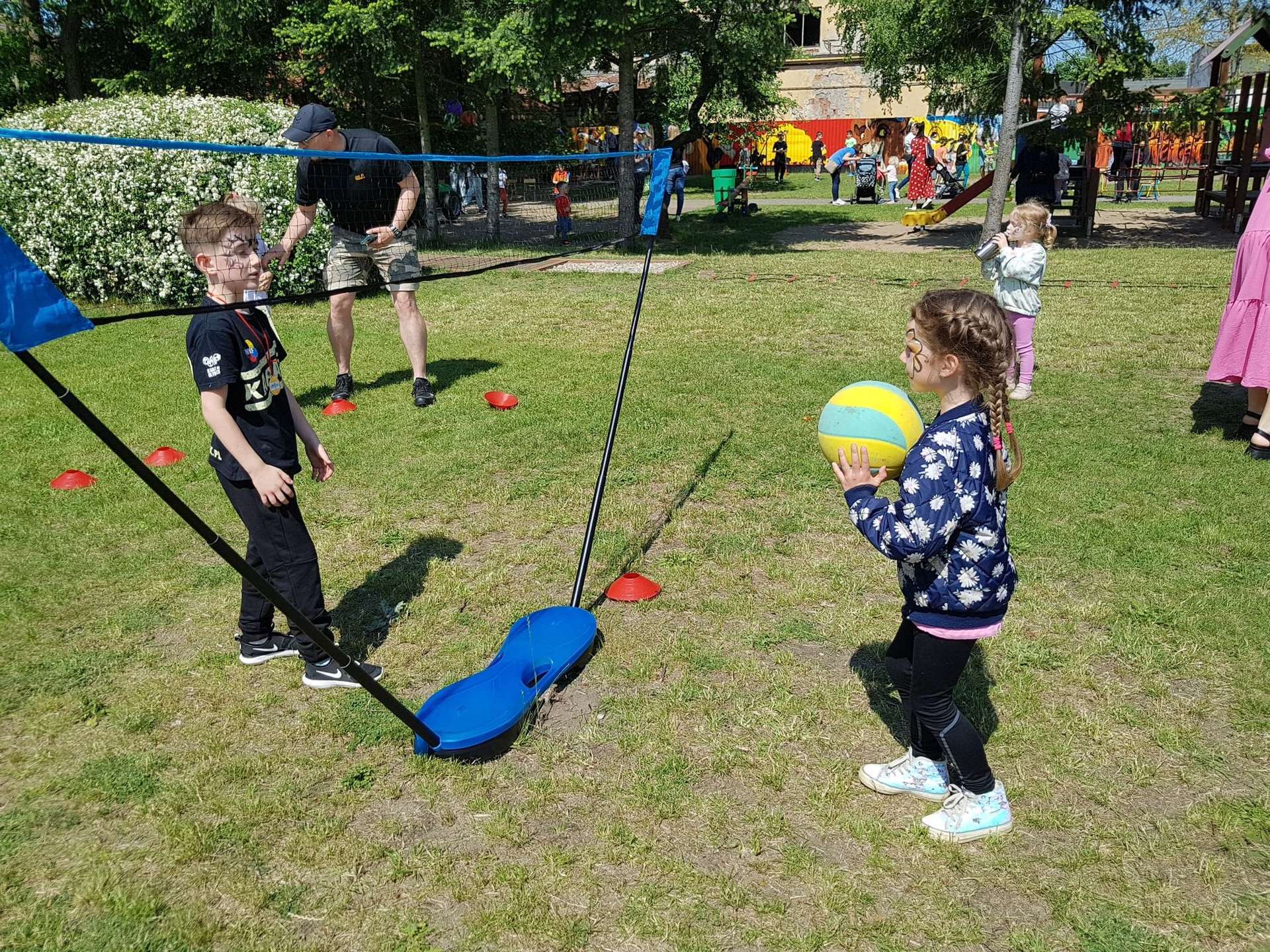 4 czerwca, w piękny słoneczny dzień odbył się Festyn Rodzinny pod hasłem "Zamiast siedzieć przed ekranem, ruszaj się z aktywnym planem". Festyn podzielony był na dwie części : część artystyczną i rekreacyjną. W tej drugiej dzieci wraz z rodzicami uczestniczyły w konkurencjach sportowych, które poprowadził p. Michał Pietrzyk - tata dziewczynek z naszego przedszkola oraz nauczyciele. Pozytywnych emocji było bardzo wiele. Po wykonaniu sportowych zadań każde dziecko otrzymało złoty medal. Uczestnicy mieli również wiele innych atrakcji. Nie zabrakło również tradycyjnego grillowania i słodkości.