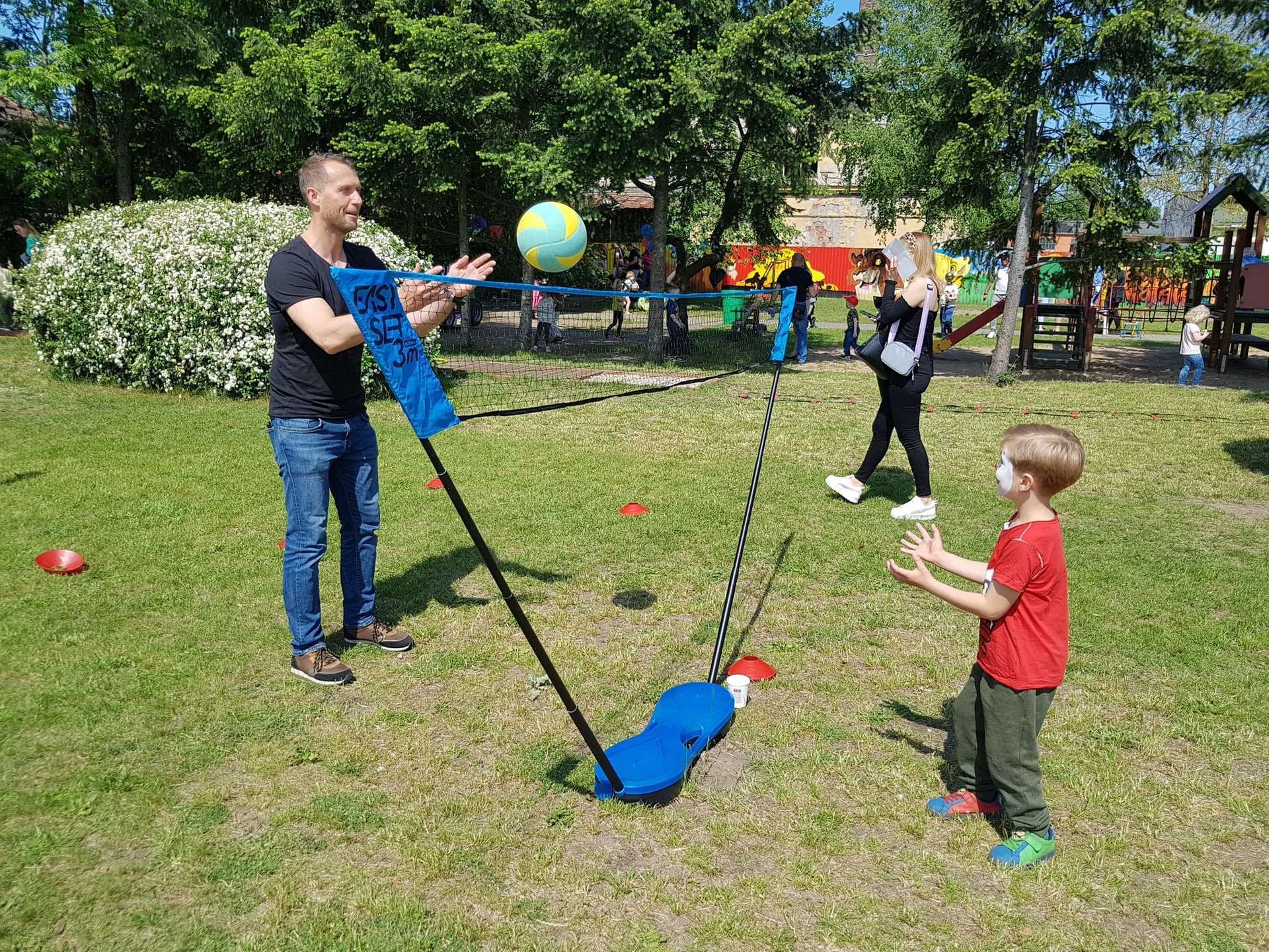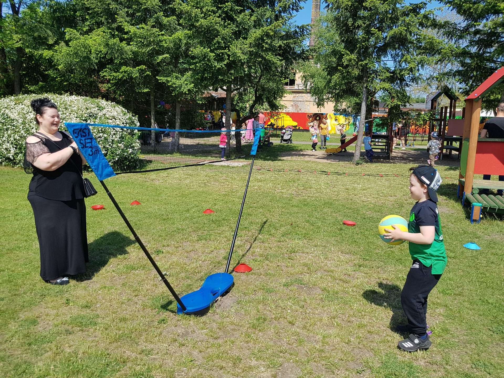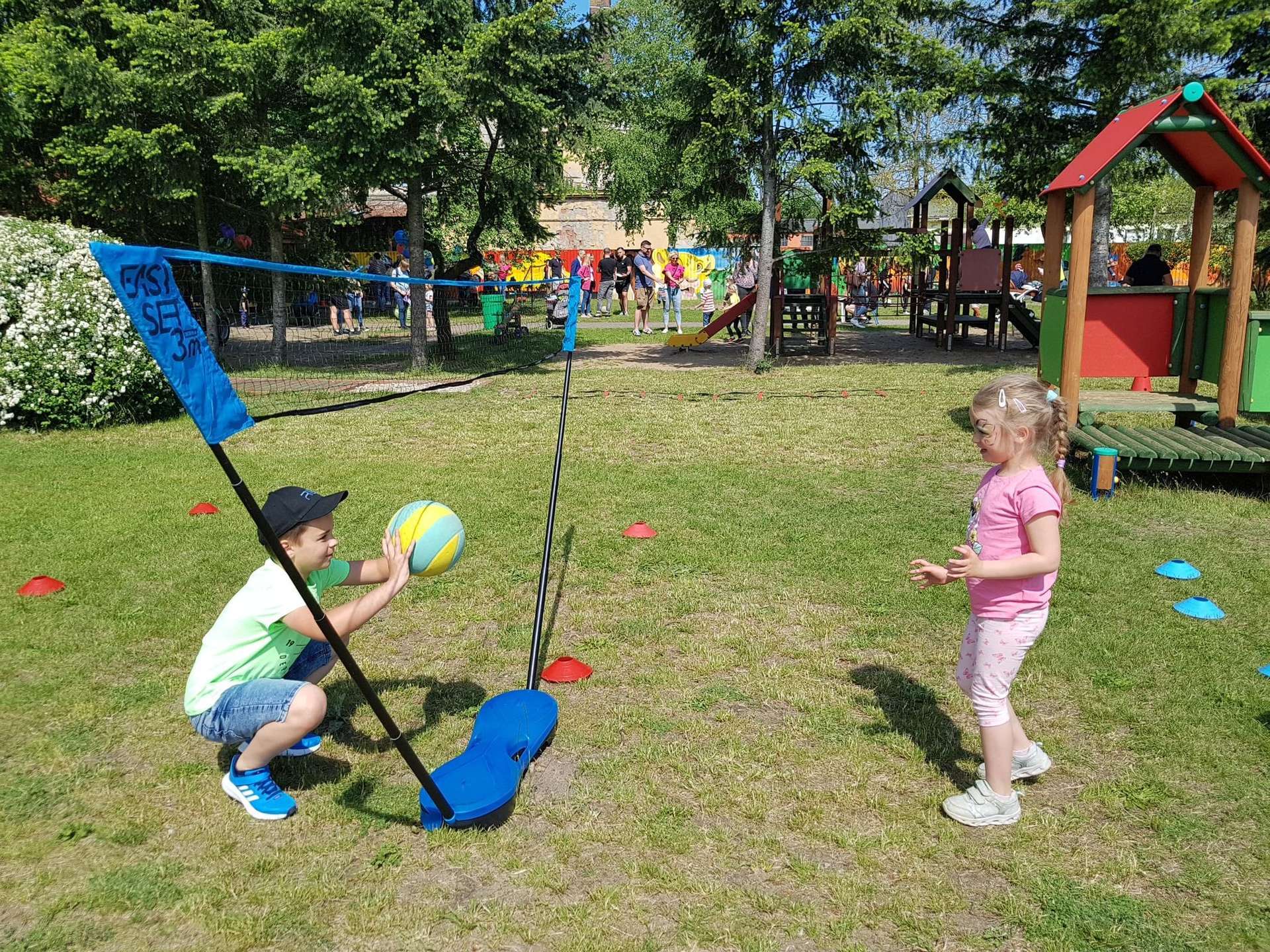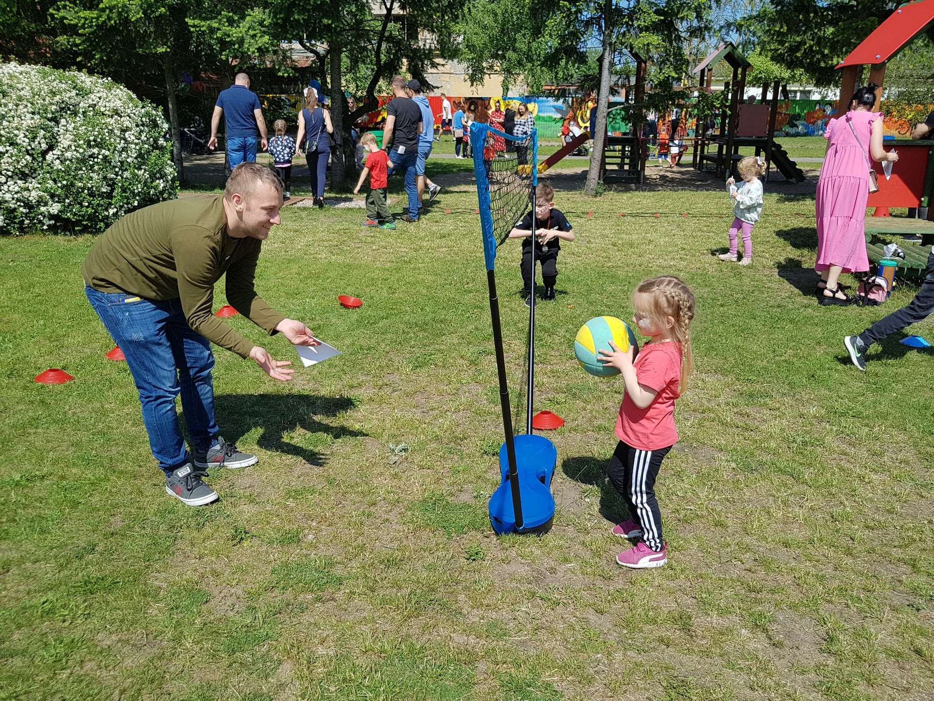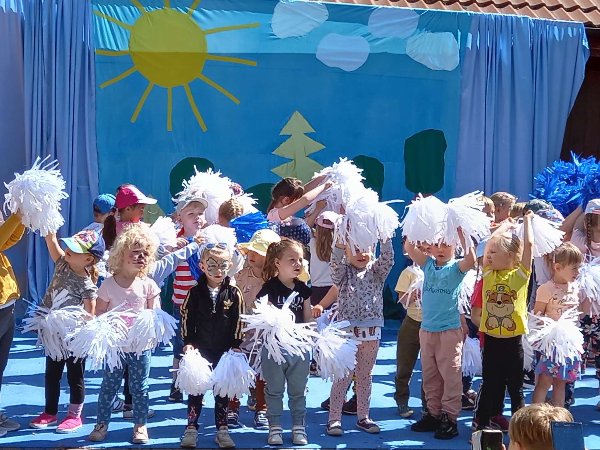 4 czerwca, w piękny słoneczny dzień odbył się Festyn Rodzinny pod hasłem "Zamiast siedzieć przed ekranem, ruszaj się z aktywnym planem". Festyn podzielony był na dwie części : część artystyczną i rekreacyjną. W tej drugiej dzieci wraz z rodzicami uczestniczyły w konkurencjach sportowych, które poprowadził p. Michał Pietrzyk - tata dziewczynek z naszego przedszkola oraz nauczyciele. Pozytywnych emocji było bardzo wiele. Po wykonaniu sportowych zadań każde dziecko otrzymało złoty medal. Uczestnicy mieli również wiele innych atrakcji. Nie zabrakło również tradycyjnego grillowania i słodkości.