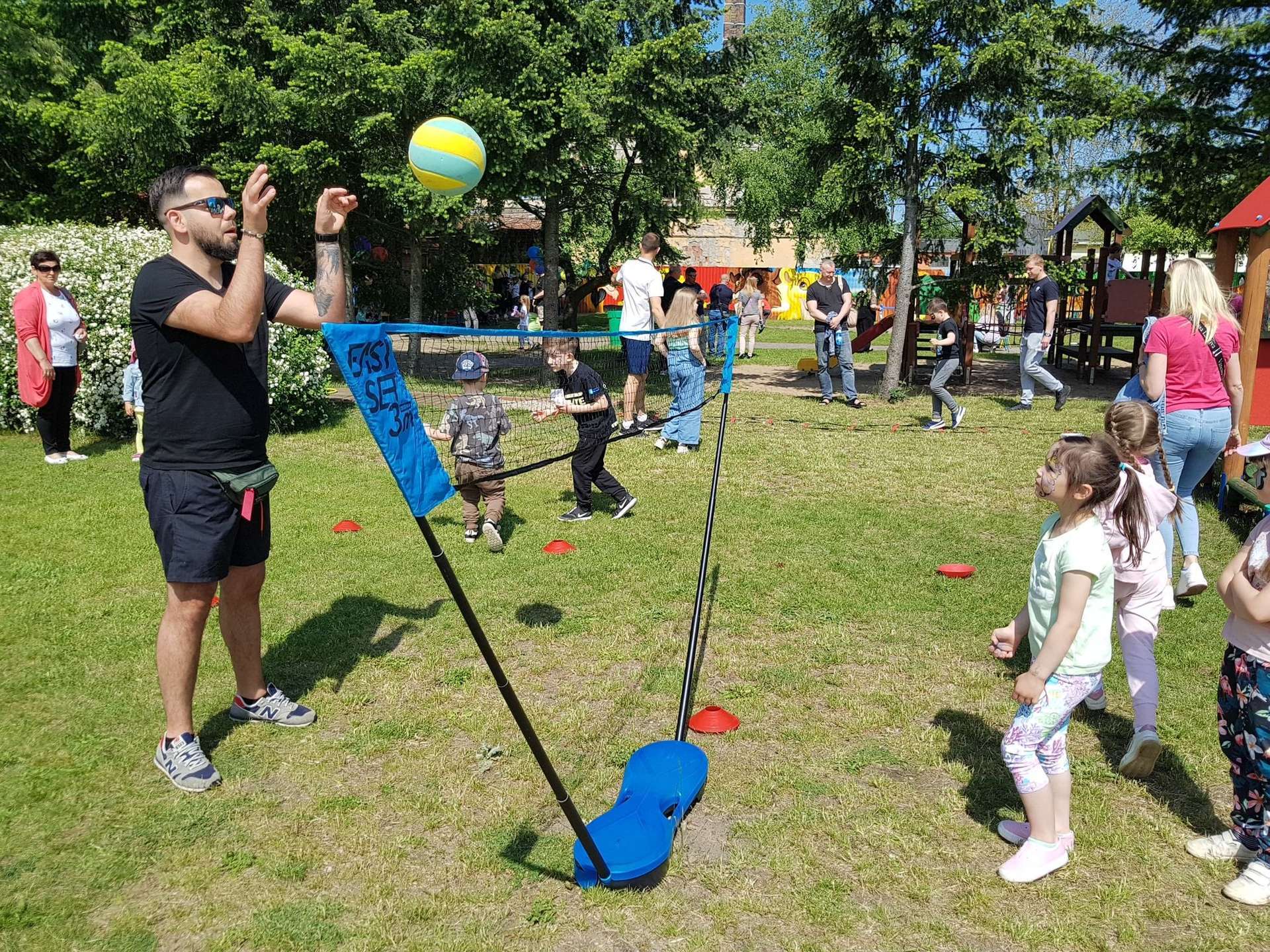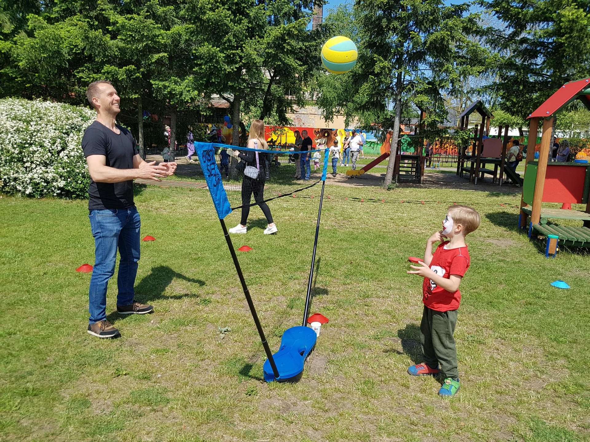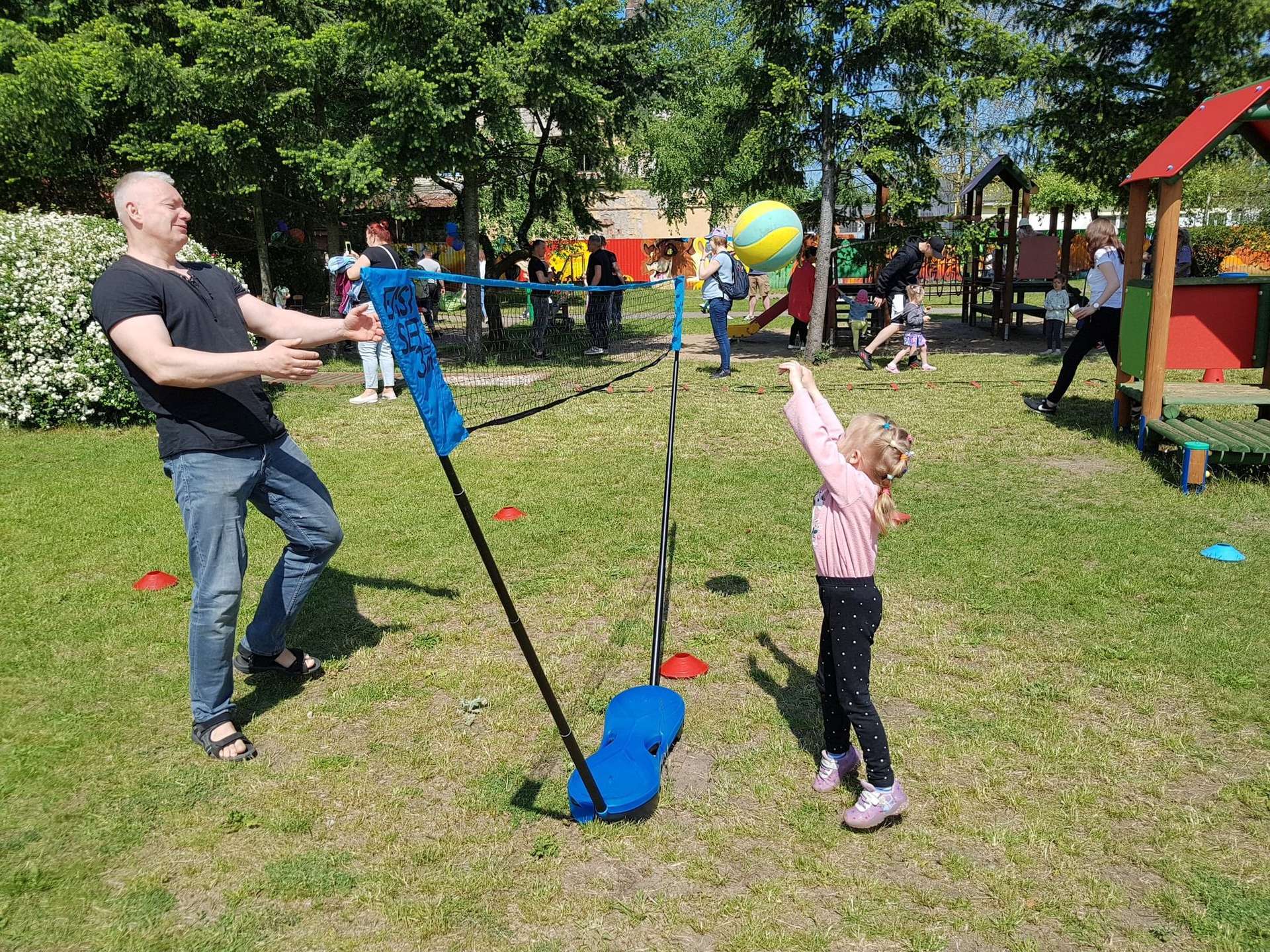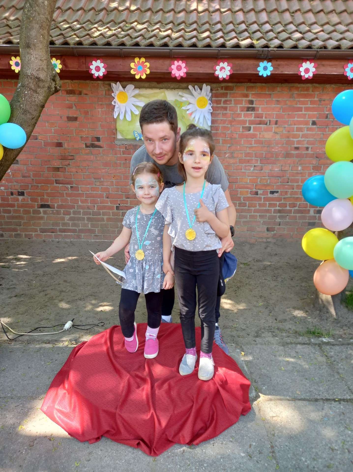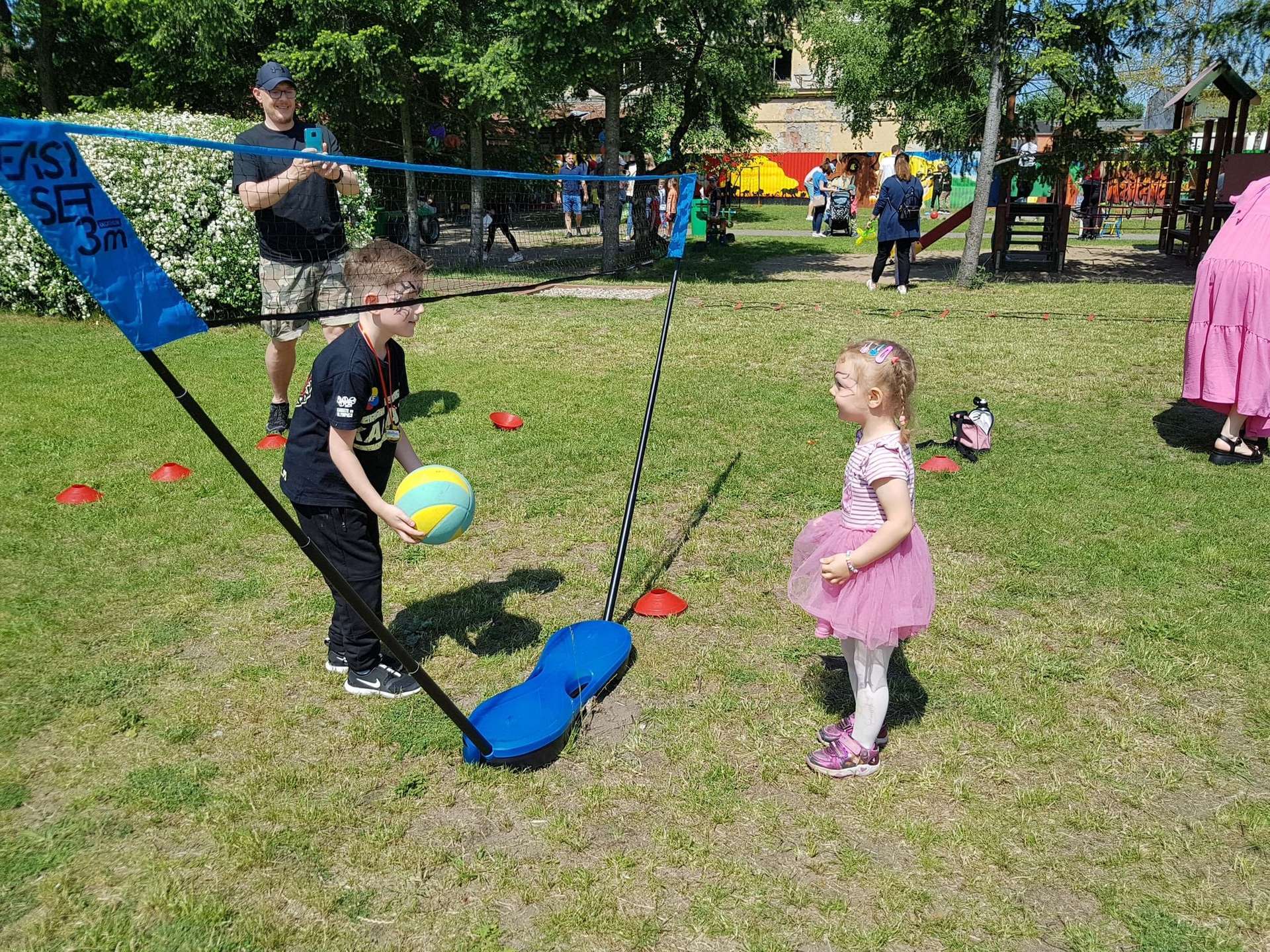 4 czerwca, w piękny słoneczny dzień odbył się Festyn Rodzinny pod hasłem "Zamiast siedzieć przed ekranem, ruszaj się z aktywnym planem". Festyn podzielony był na dwie części : część artystyczną i rekreacyjną. W tej drugiej dzieci wraz z rodzicami uczestniczyły w konkurencjach sportowych, które poprowadził p. Michał Pietrzyk - tata dziewczynek z naszego przedszkola oraz nauczyciele. Pozytywnych emocji było bardzo wiele. Po wykonaniu sportowych zadań każde dziecko otrzymało złoty medal. Uczestnicy mieli również wiele innych atrakcji. Nie zabrakło również tradycyjnego grillowania i słodkości.
