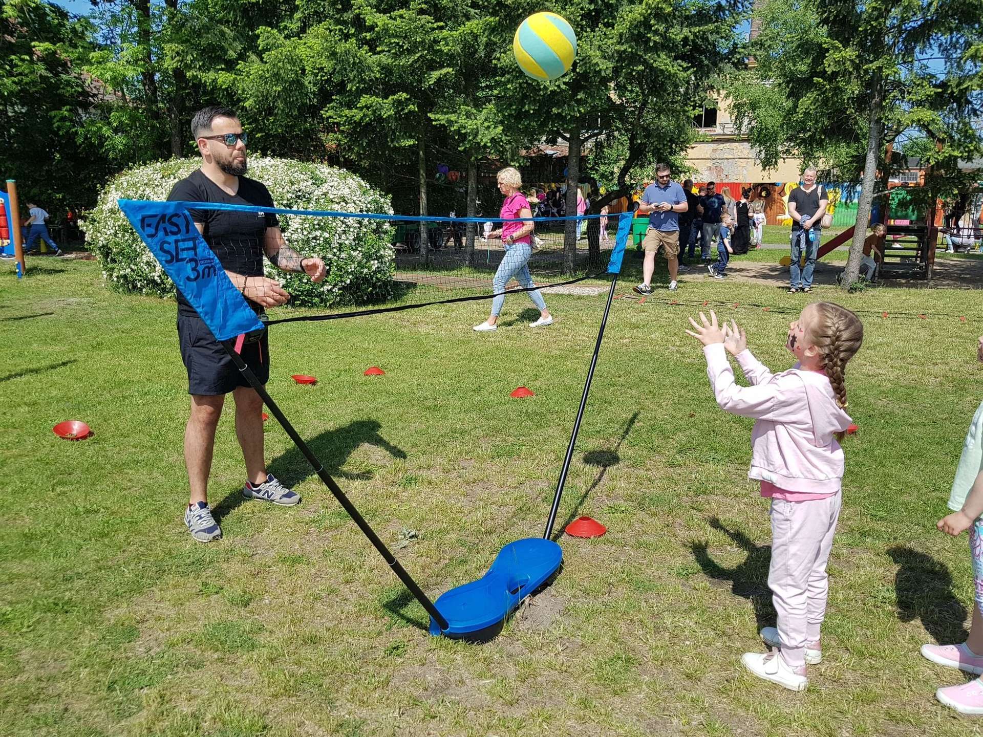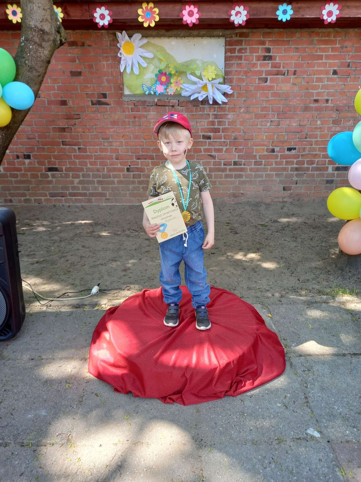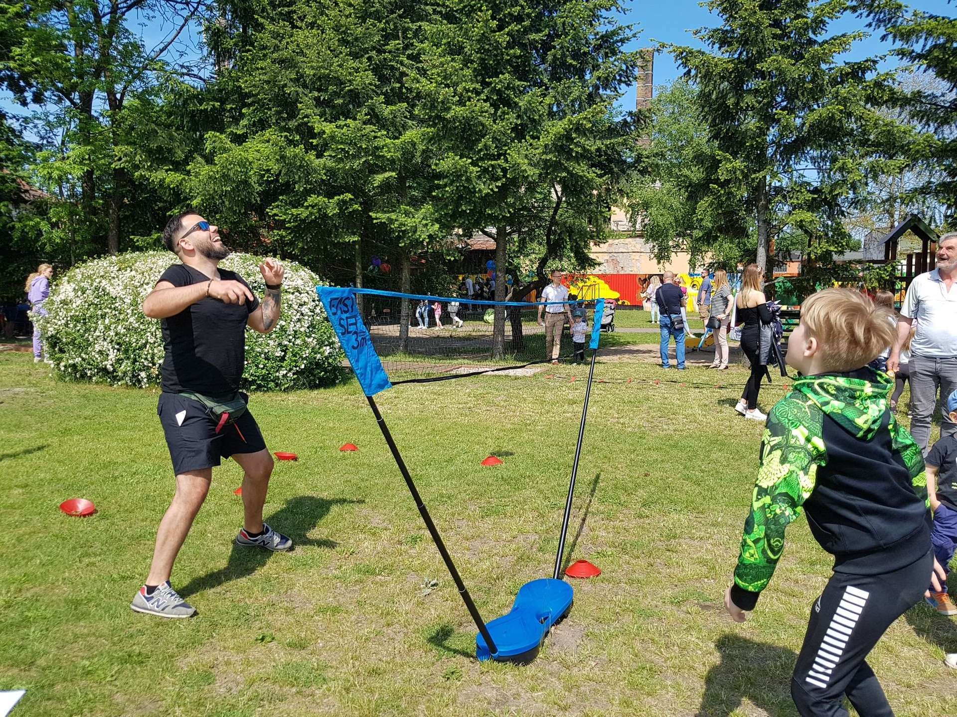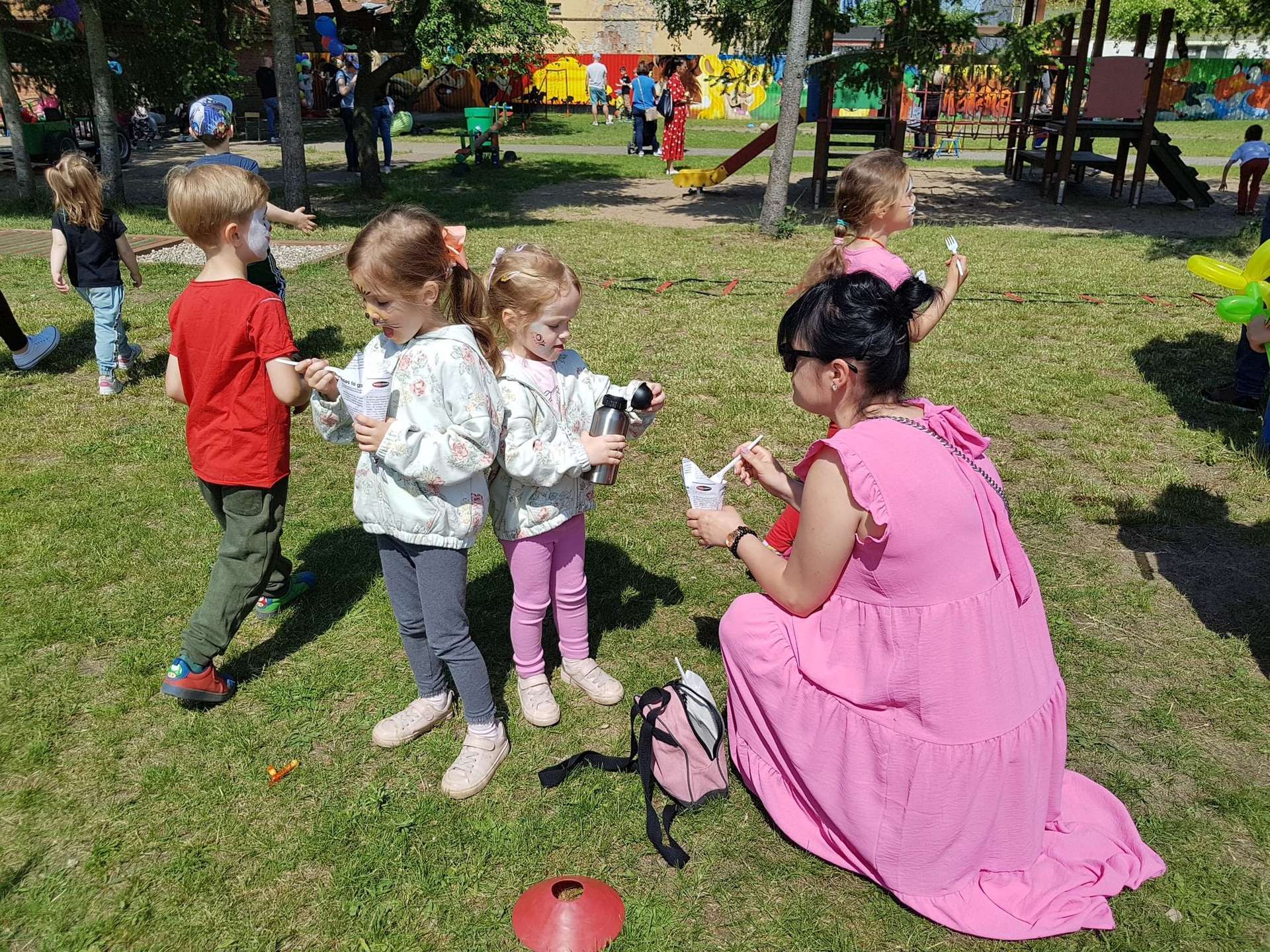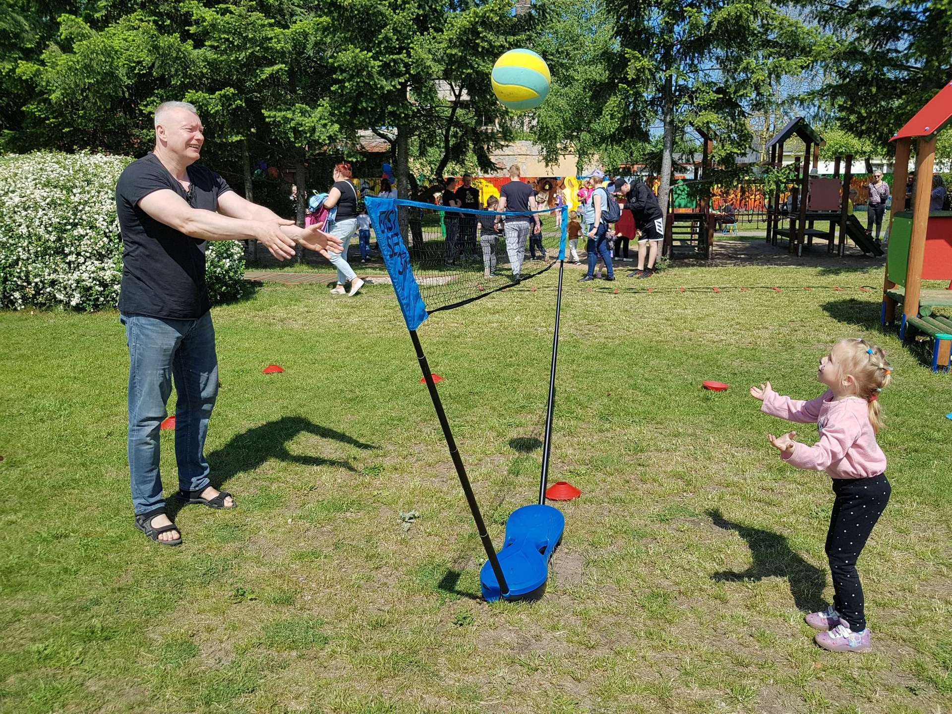 4 czerwca, w piękny słoneczny dzień odbył się Festyn Rodzinny pod hasłem "Zamiast siedzieć przed ekranem, ruszaj się z aktywnym planem". Festyn podzielony był na dwie części : część artystyczną i rekreacyjną. W tej drugiej dzieci wraz z rodzicami uczestniczyły w konkurencjach sportowych, które poprowadził p. Michał Pietrzyk - tata dziewczynek z naszego przedszkola oraz nauczyciele. Pozytywnych emocji było bardzo wiele. Po wykonaniu sportowych zadań każde dziecko otrzymało złoty medal. Uczestnicy mieli również wiele innych atrakcji. Nie zabrakło również tradycyjnego grillowania i słodkości.