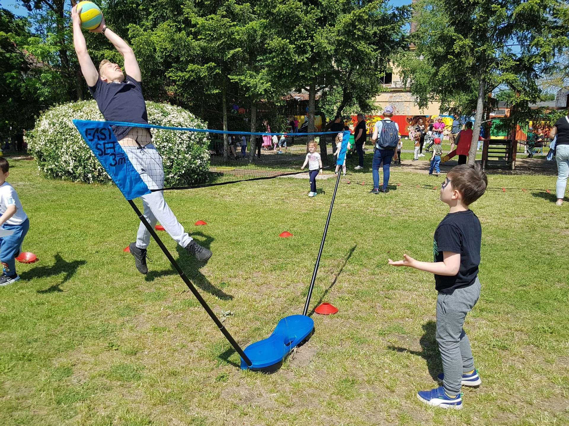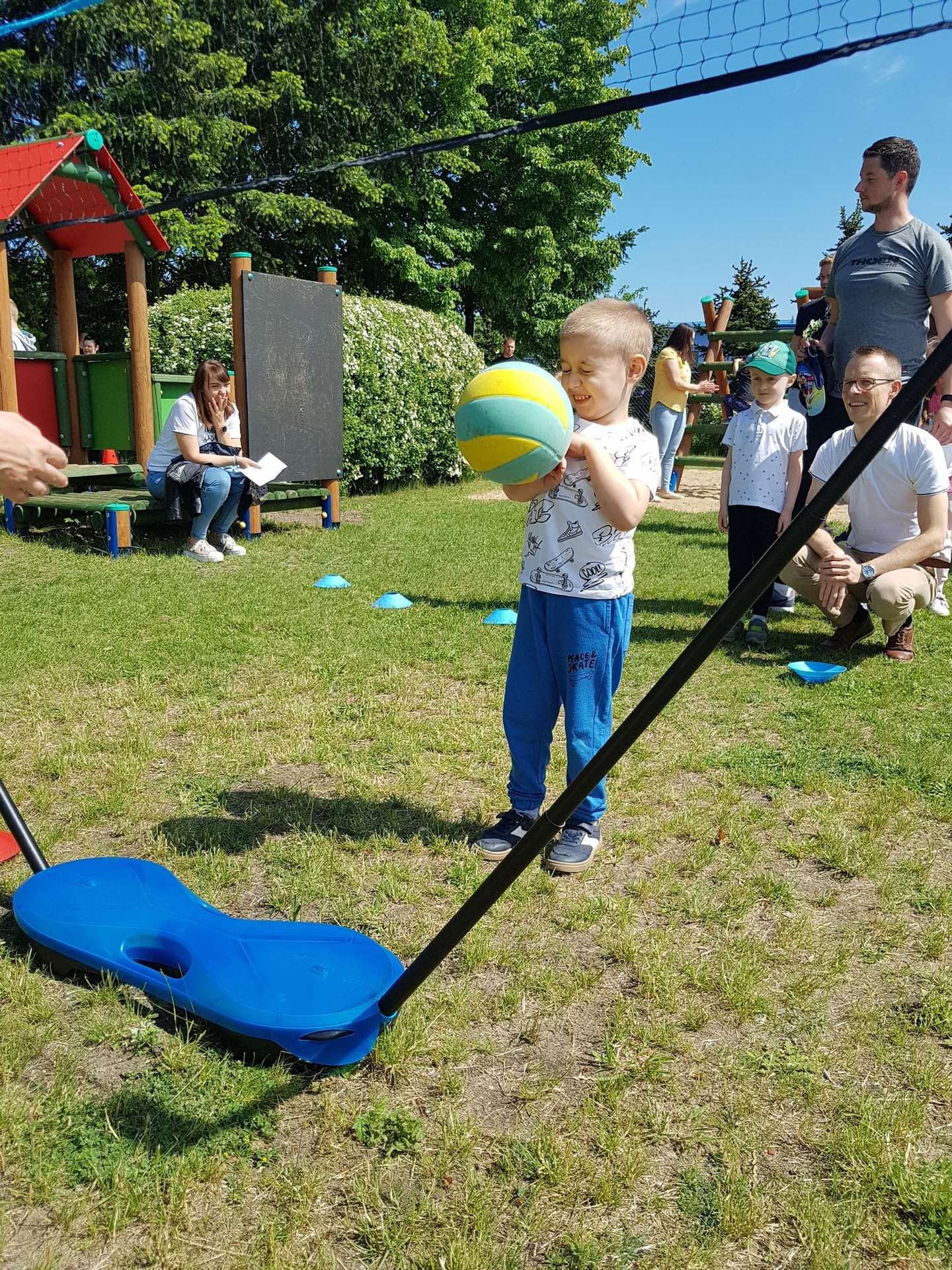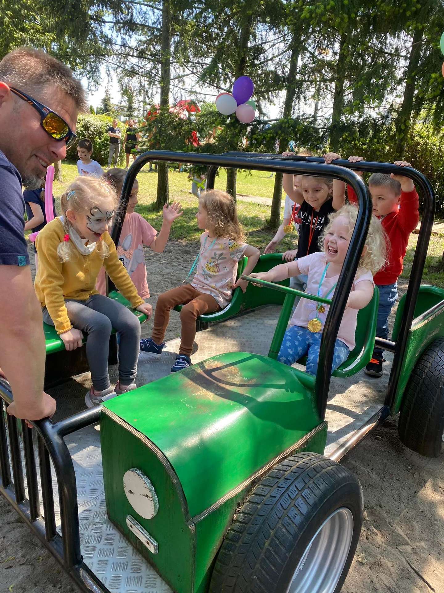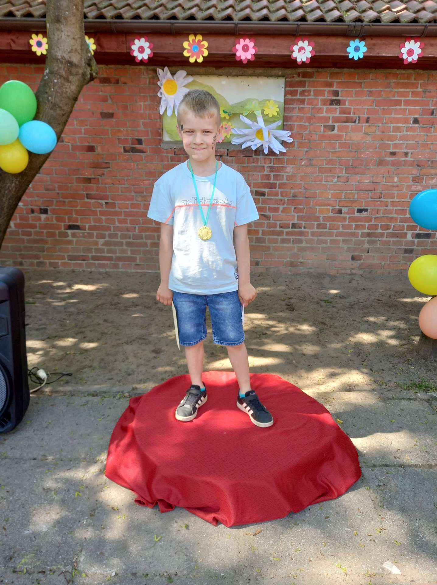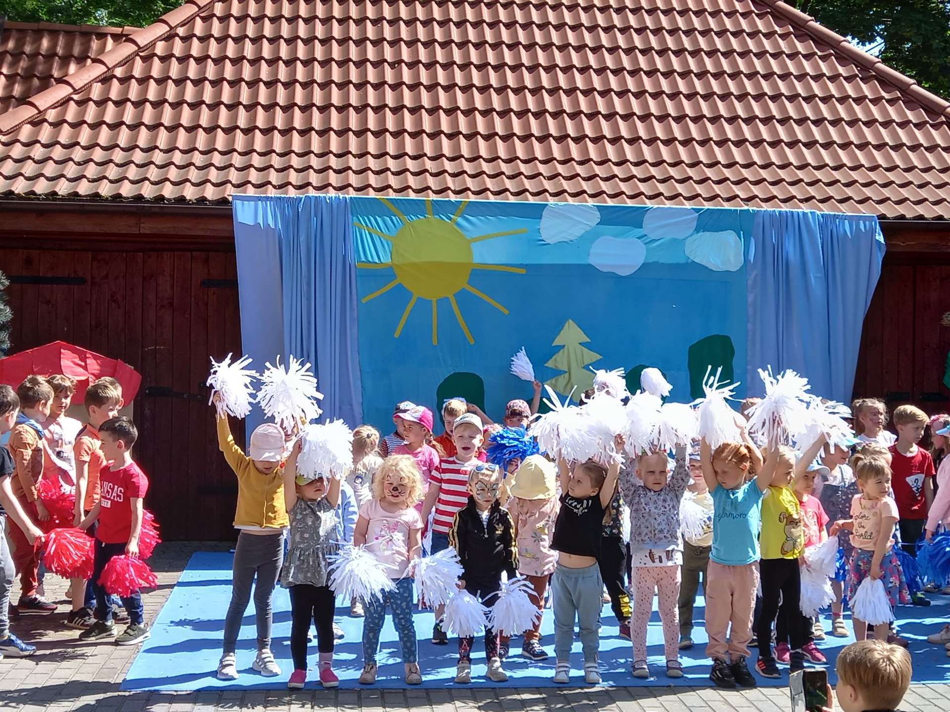 4 czerwca, w piękny słoneczny dzień odbył się Festyn Rodzinny pod hasłem "Zamiast siedzieć przed ekranem, ruszaj się z aktywnym planem". Festyn podzielony był na dwie części : część artystyczną i rekreacyjną. W tej drugiej dzieci wraz z rodzicami uczestniczyły w konkurencjach sportowych, które poprowadził p. Michał Pietrzyk - tata dziewczynek z naszego przedszkola oraz nauczyciele. Pozytywnych emocji było bardzo wiele. Po wykonaniu sportowych zadań każde dziecko otrzymało złoty medal. Uczestnicy mieli również wiele innych atrakcji. Nie zabrakło również tradycyjnego grillowania i słodkości.
