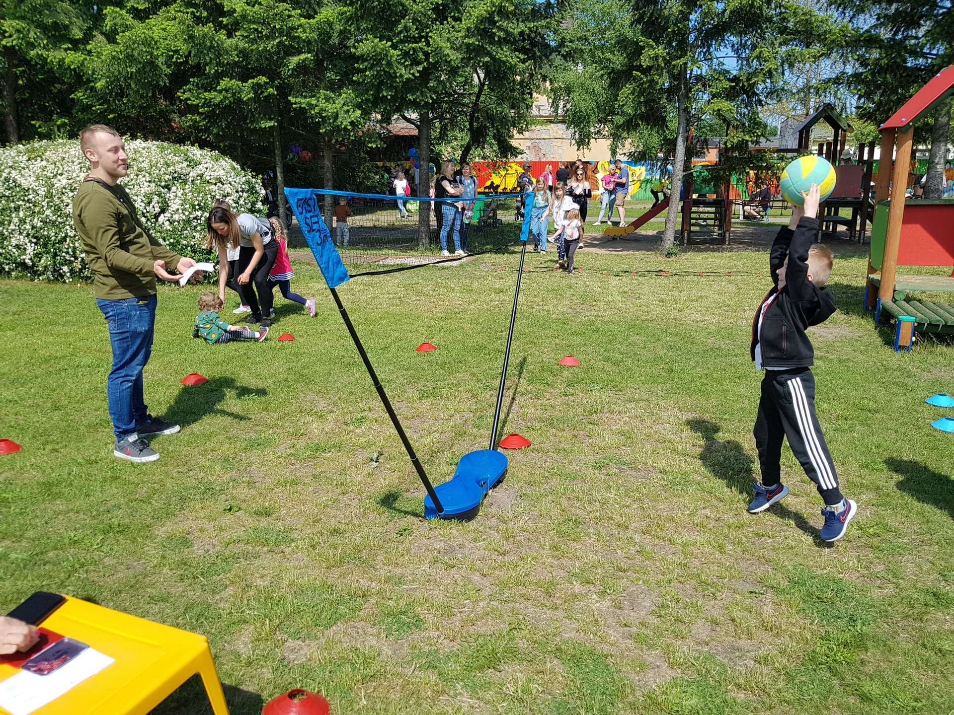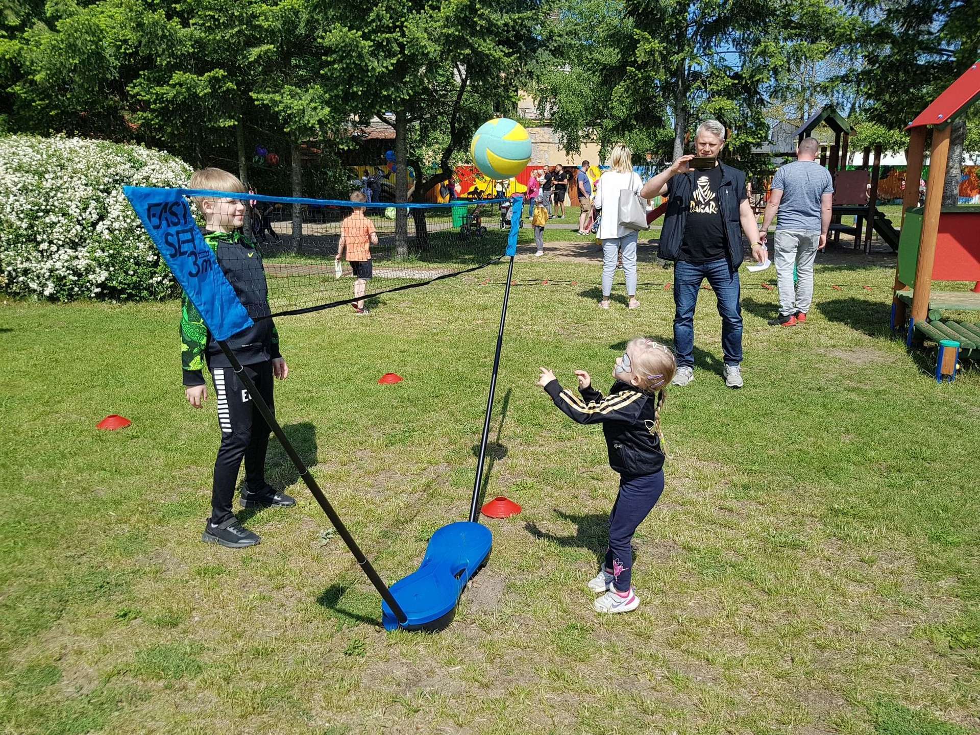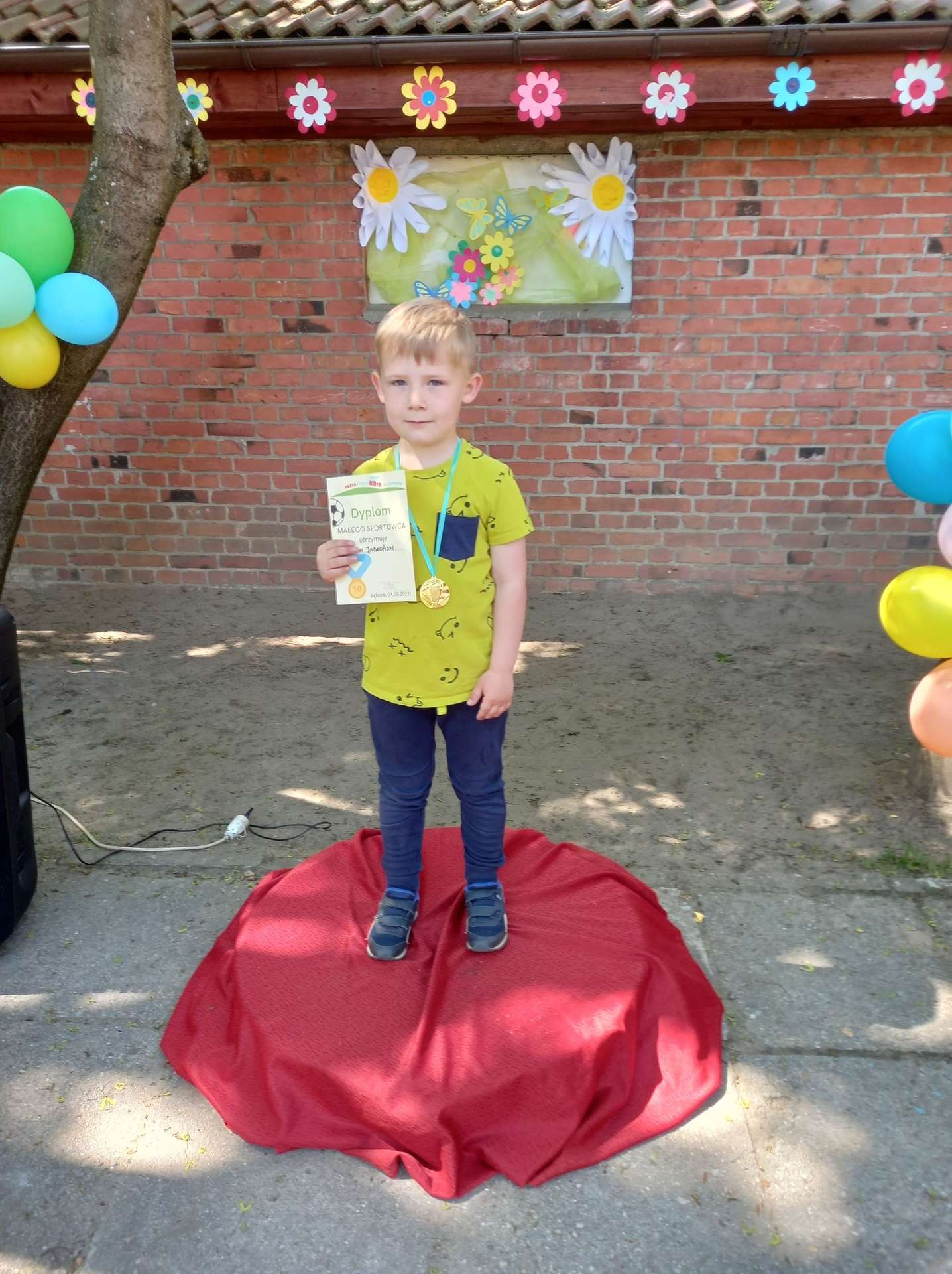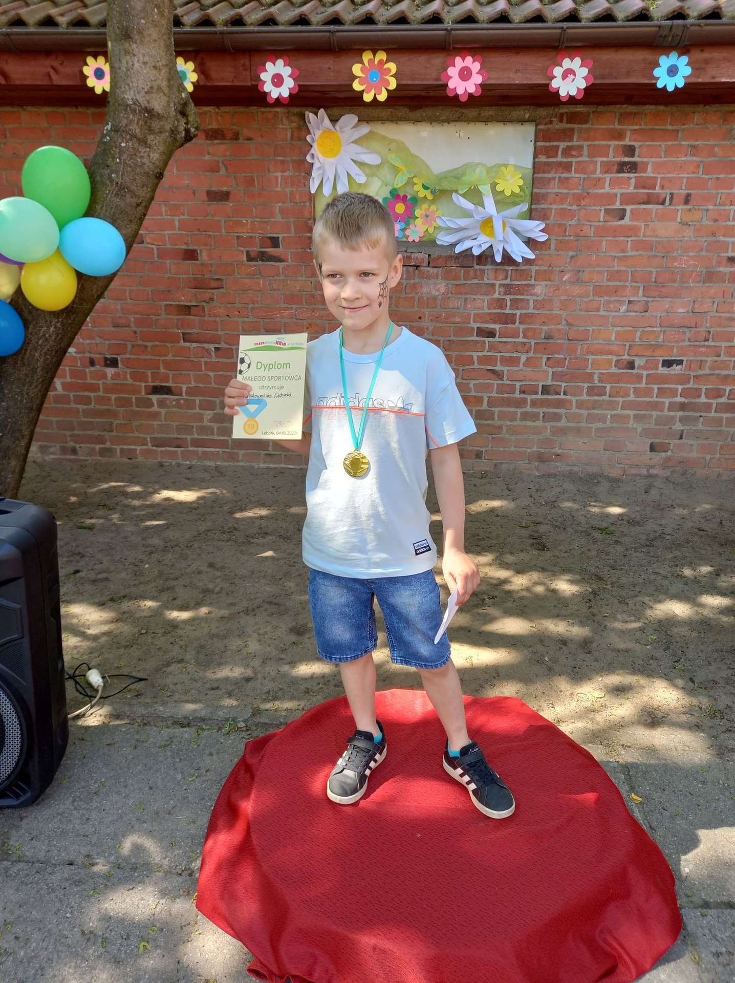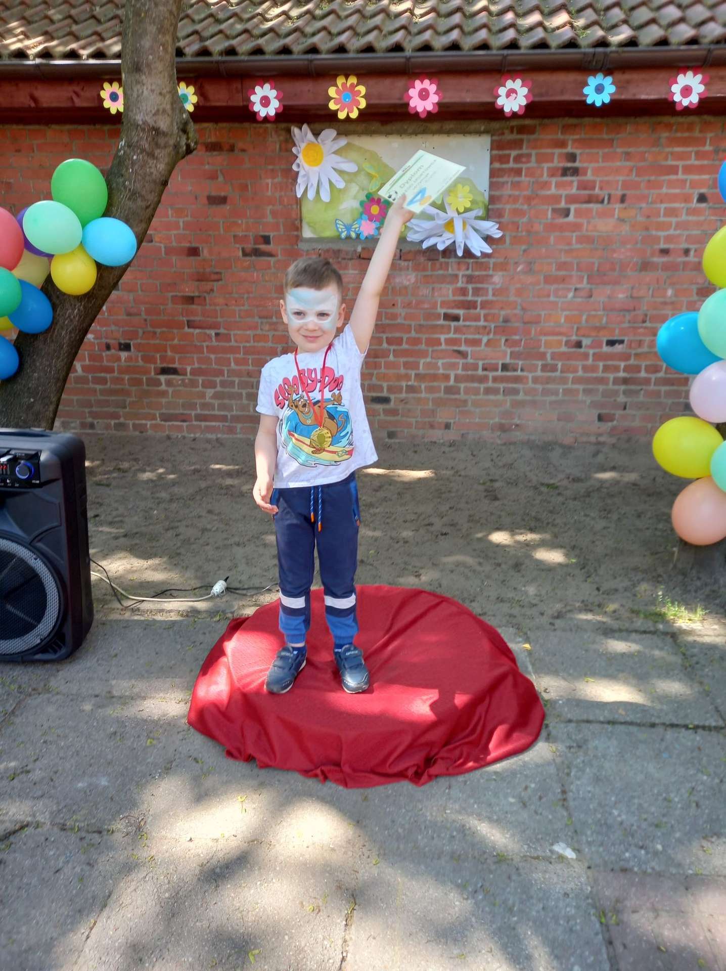 4 czerwca, w piękny słoneczny dzień odbył się Festyn Rodzinny pod hasłem "Zamiast siedzieć przed ekranem, ruszaj się z aktywnym planem". Festyn podzielony był na dwie części : część artystyczną i rekreacyjną. W tej drugiej dzieci wraz z rodzicami uczestniczyły w konkurencjach sportowych, które poprowadził p. Michał Pietrzyk - tata dziewczynek z naszego przedszkola oraz nauczyciele. Pozytywnych emocji było bardzo wiele. Po wykonaniu sportowych zadań każde dziecko otrzymało złoty medal. Uczestnicy mieli również wiele innych atrakcji. Nie zabrakło również tradycyjnego grillowania i słodkości.