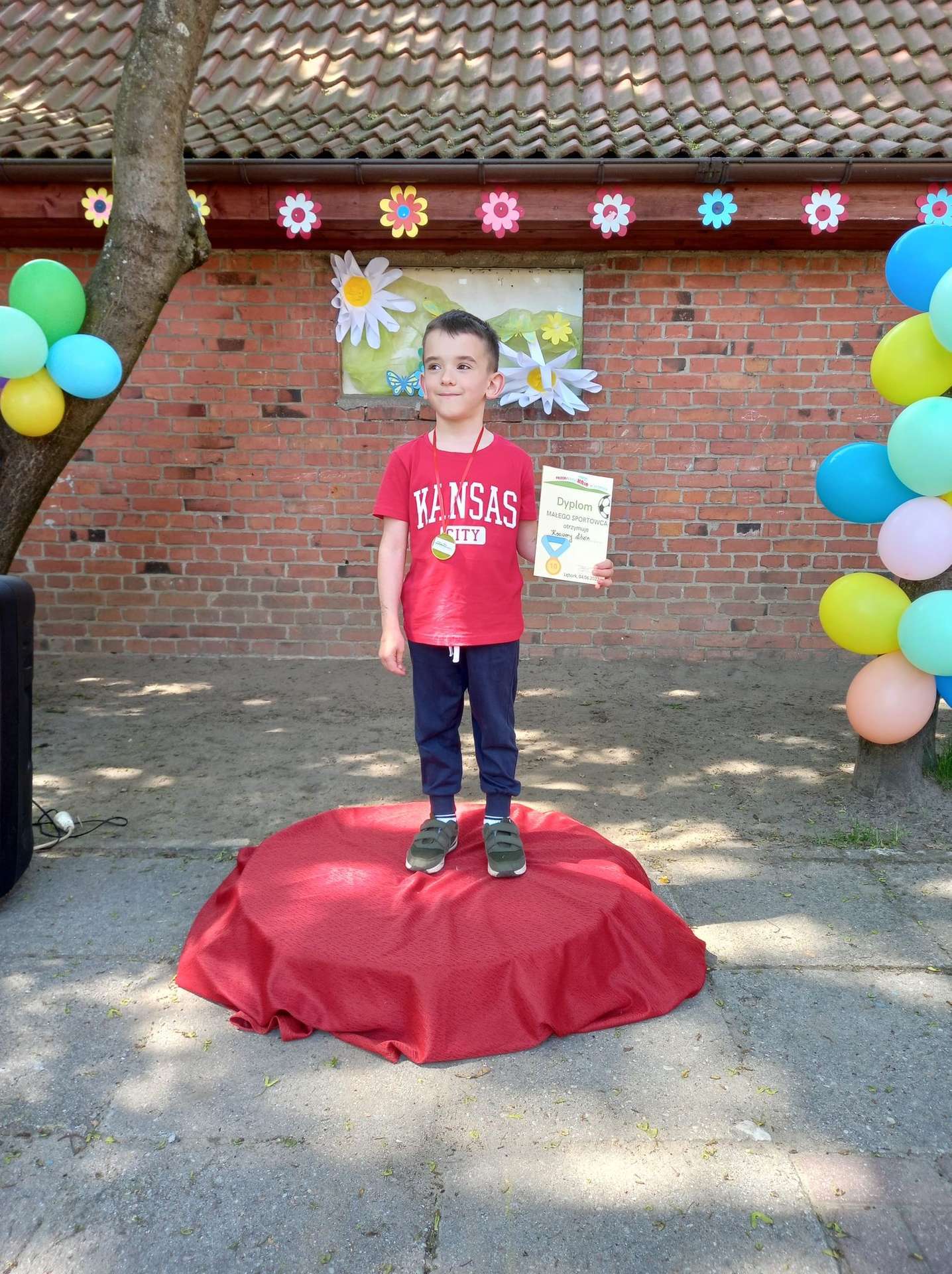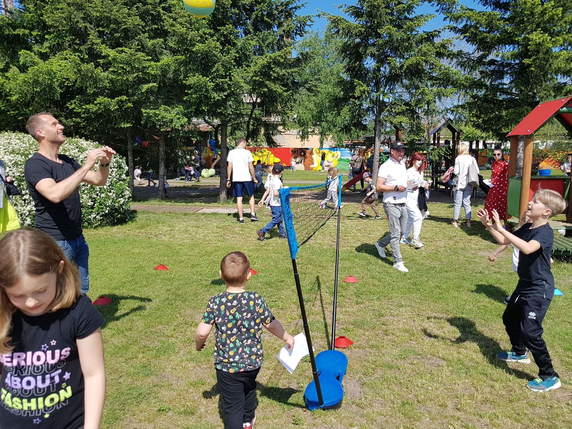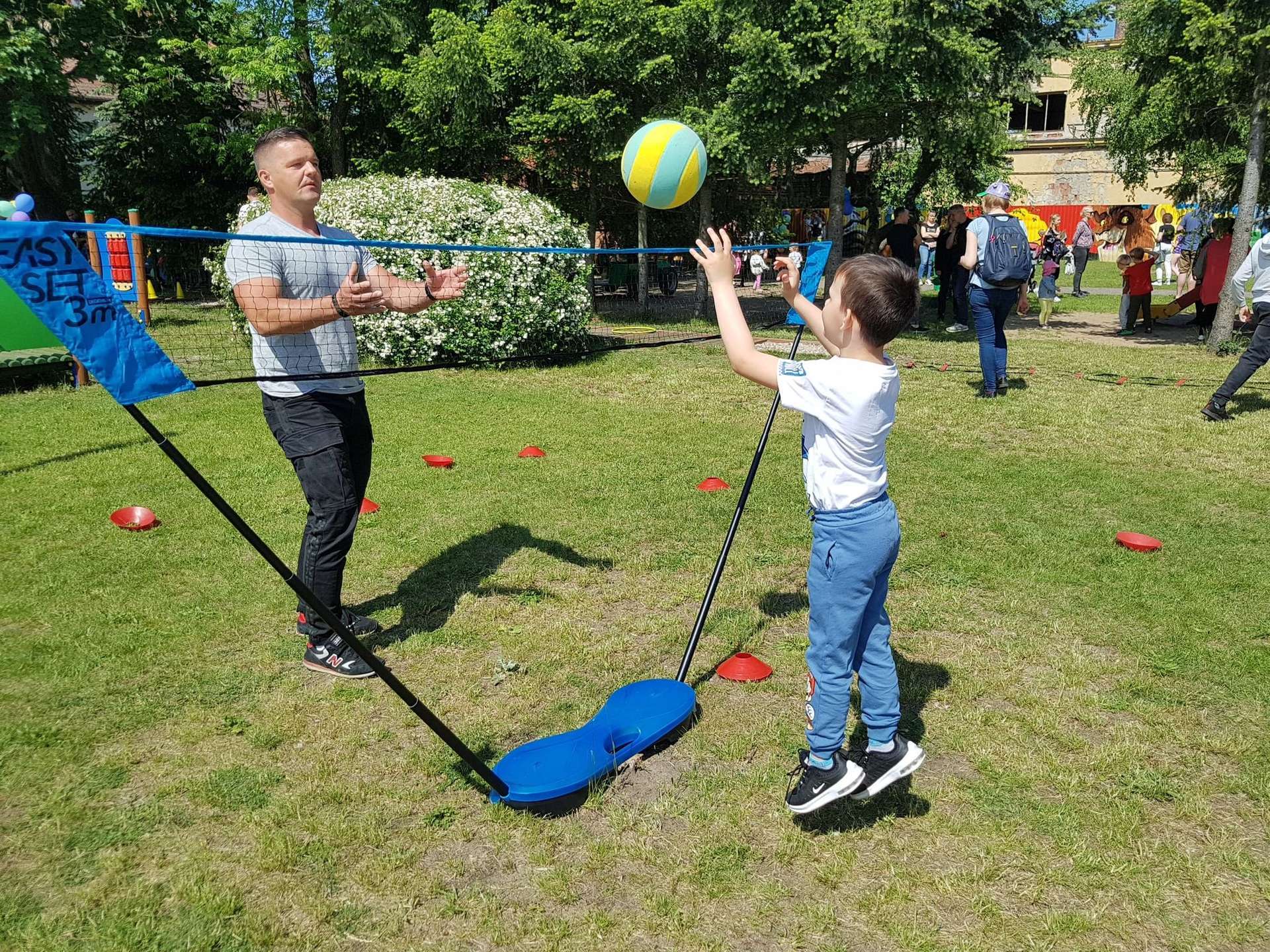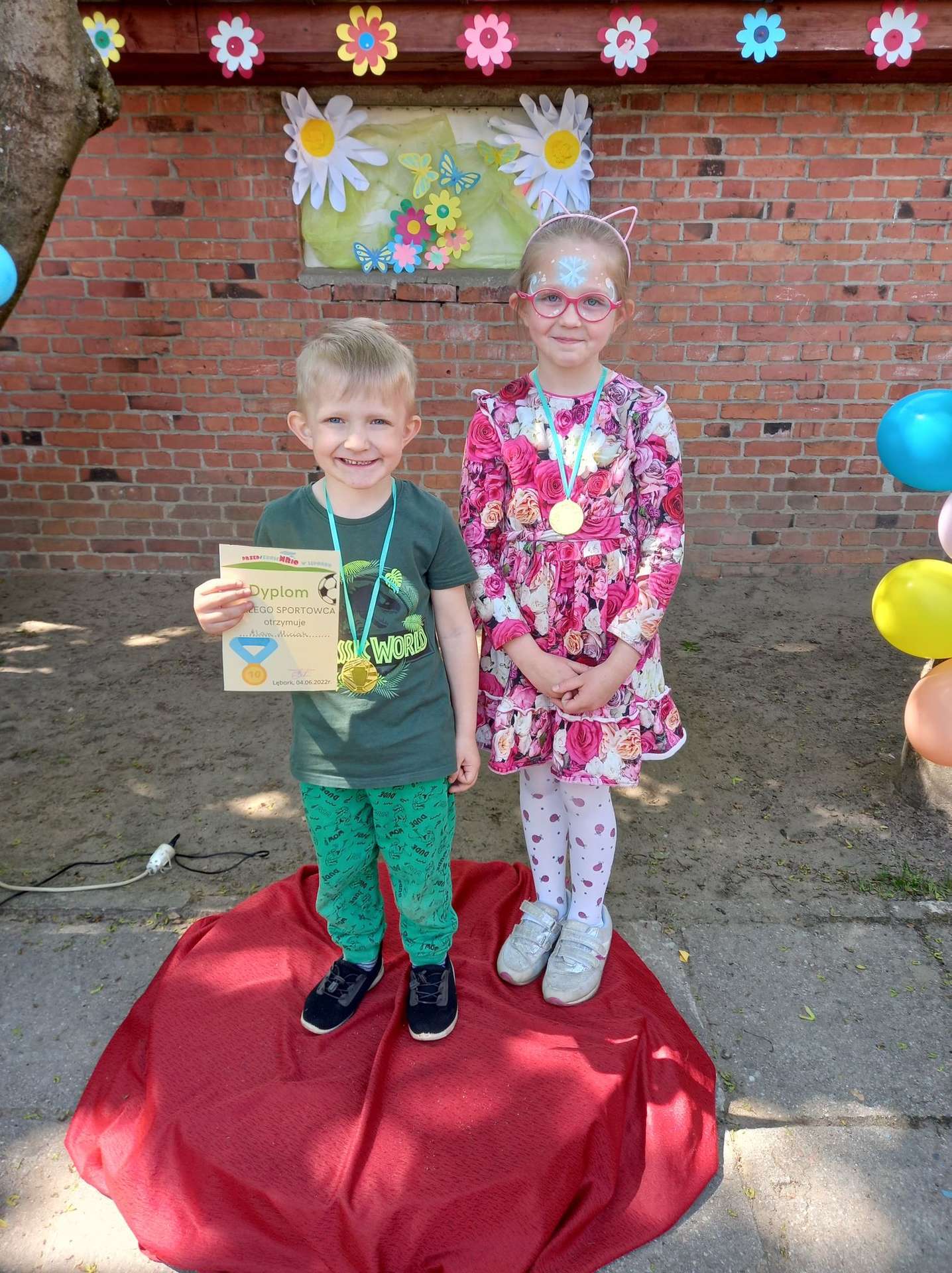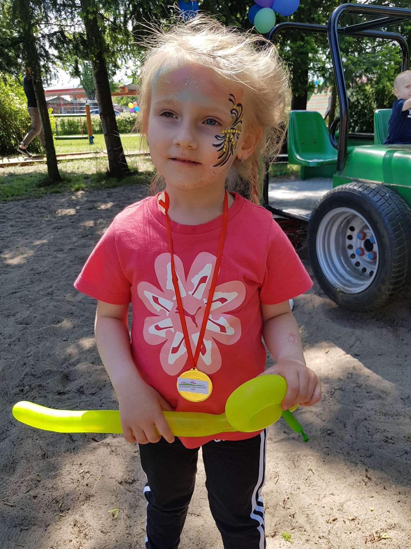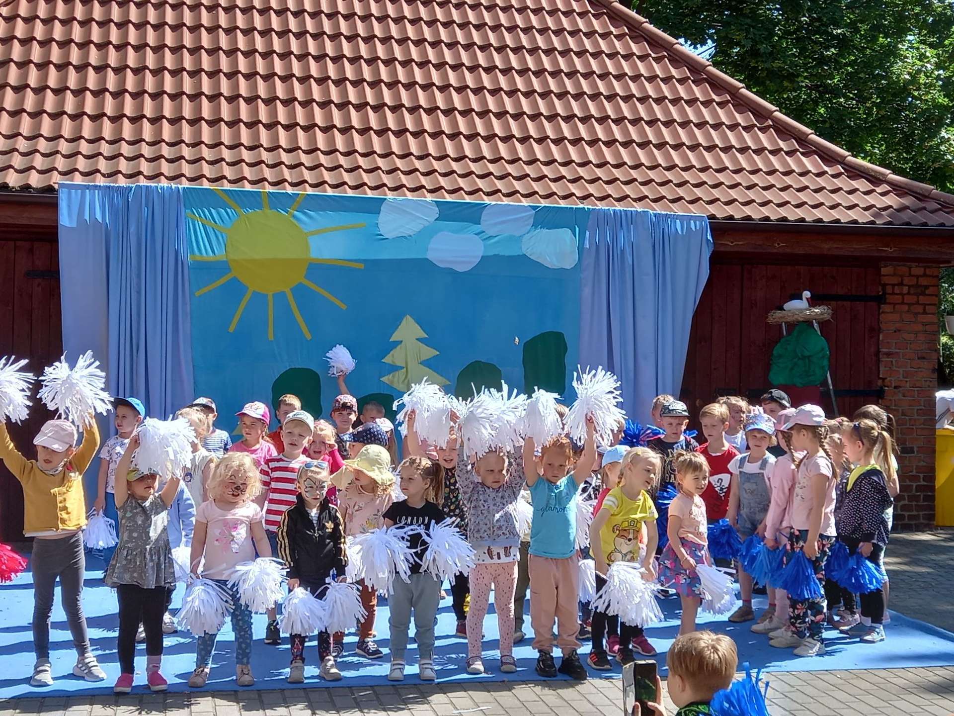 4 czerwca, w piękny słoneczny dzień odbył się Festyn Rodzinny pod hasłem "Zamiast siedzieć przed ekranem, ruszaj się z aktywnym planem". Festyn podzielony był na dwie części : część artystyczną i rekreacyjną. W tej drugiej dzieci wraz z rodzicami uczestniczyły w konkurencjach sportowych, które poprowadził p. Michał Pietrzyk - tata dziewczynek z naszego przedszkola oraz nauczyciele. Pozytywnych emocji było bardzo wiele. Po wykonaniu sportowych zadań każde dziecko otrzymało złoty medal. Uczestnicy mieli również wiele innych atrakcji. Nie zabrakło również tradycyjnego grillowania i słodkości.