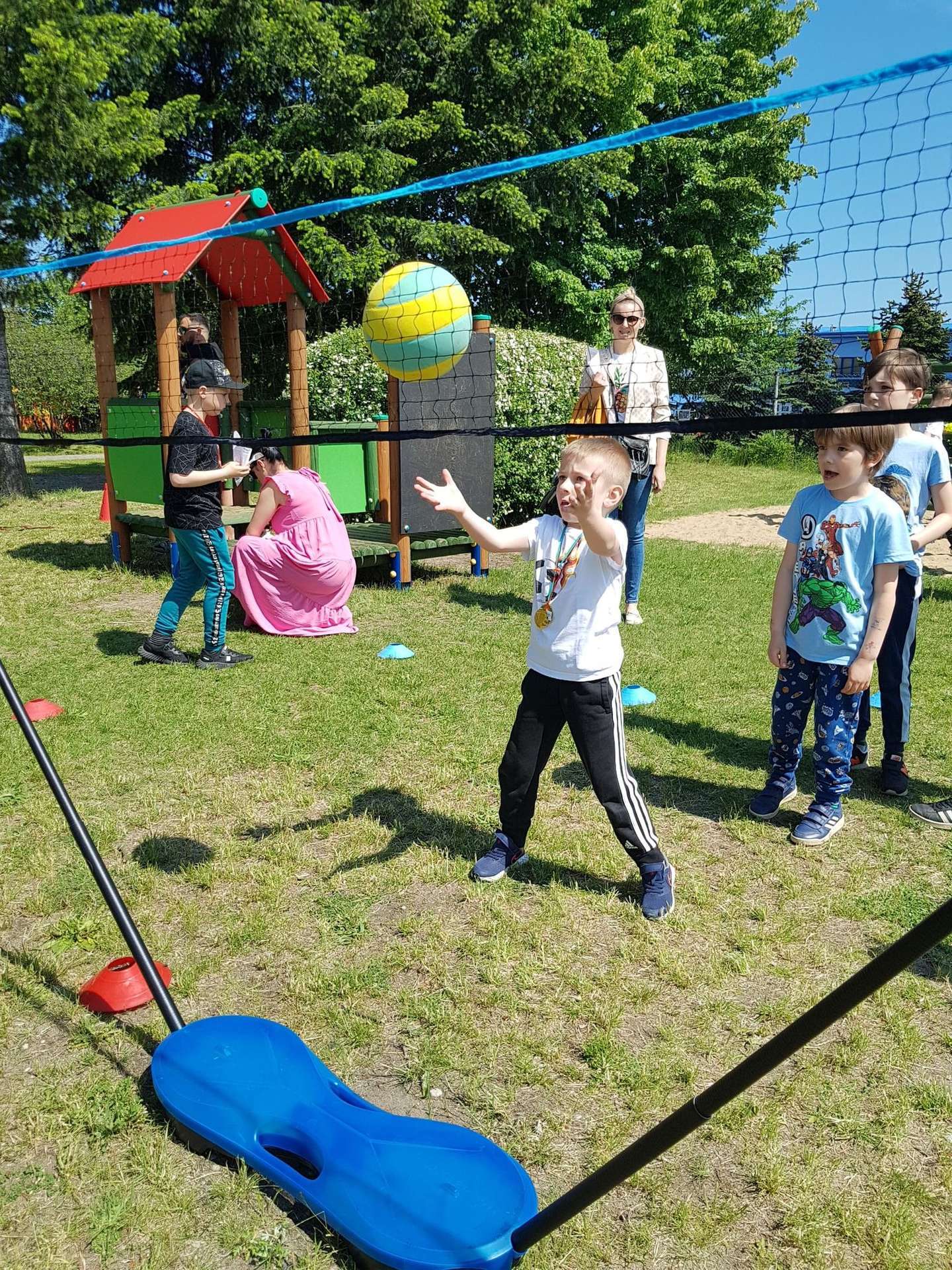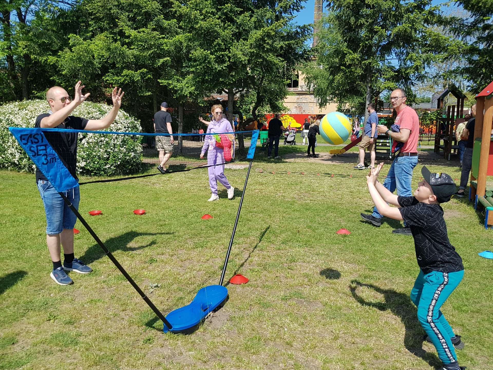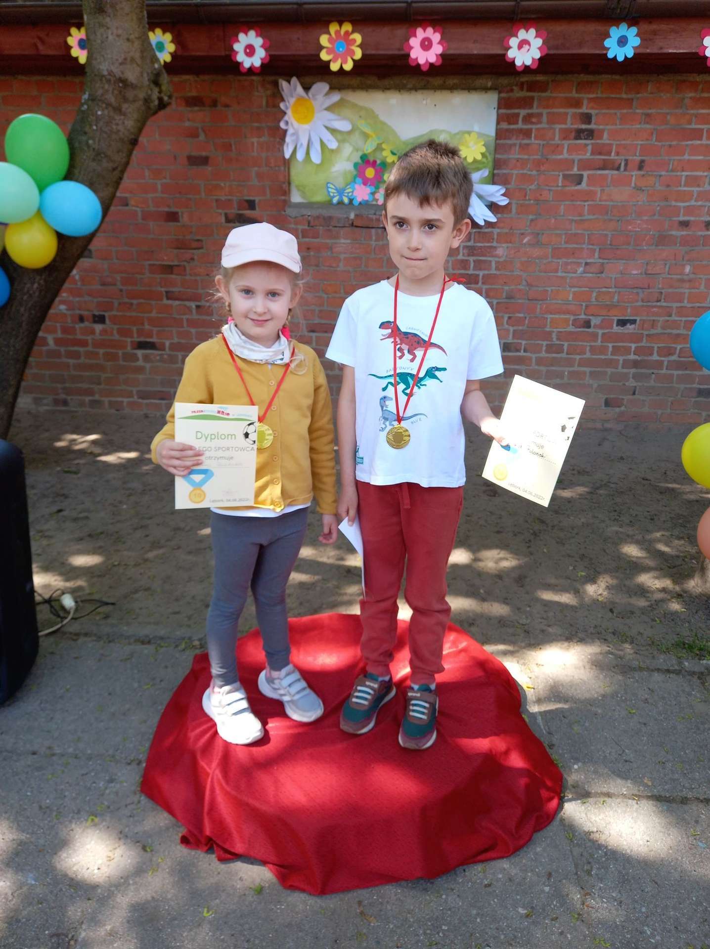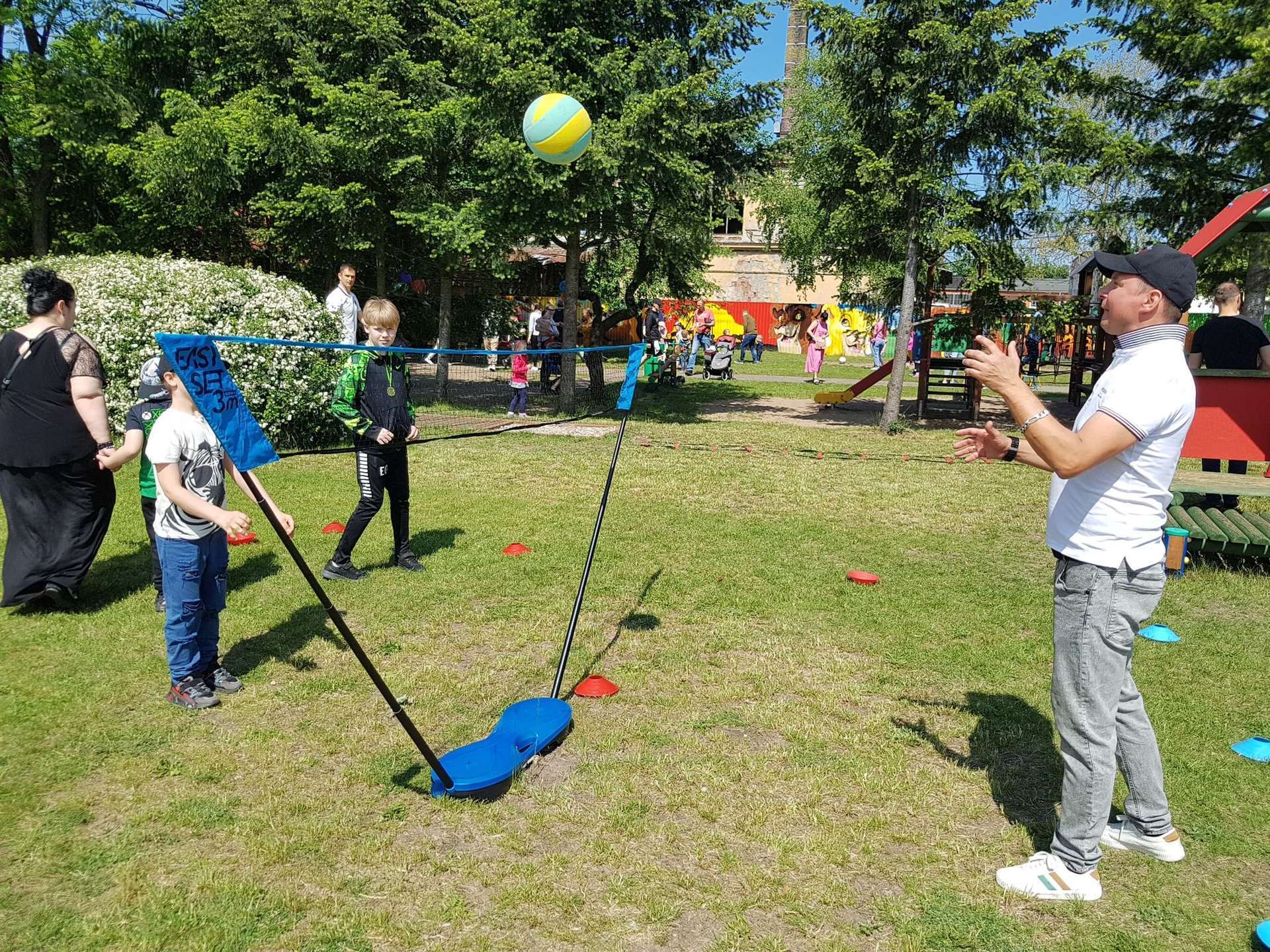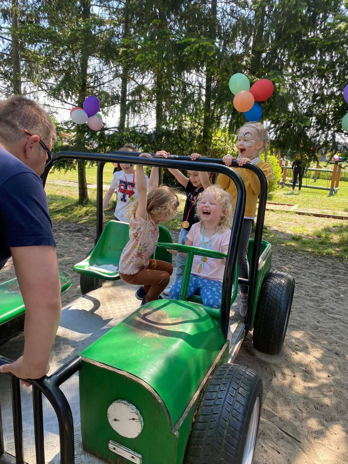 4 czerwca, w piękny słoneczny dzień odbył się Festyn Rodzinny pod hasłem "Zamiast siedzieć przed ekranem, ruszaj się z aktywnym planem". Festyn podzielony był na dwie części : część artystyczną i rekreacyjną. W tej drugiej dzieci wraz z rodzicami uczestniczyły w konkurencjach sportowych, które poprowadził p. Michał Pietrzyk - tata dziewczynek z naszego przedszkola oraz nauczyciele. Pozytywnych emocji było bardzo wiele. Po wykonaniu sportowych zadań każde dziecko otrzymało złoty medal. Uczestnicy mieli również wiele innych atrakcji. Nie zabrakło również tradycyjnego grillowania i słodkości.