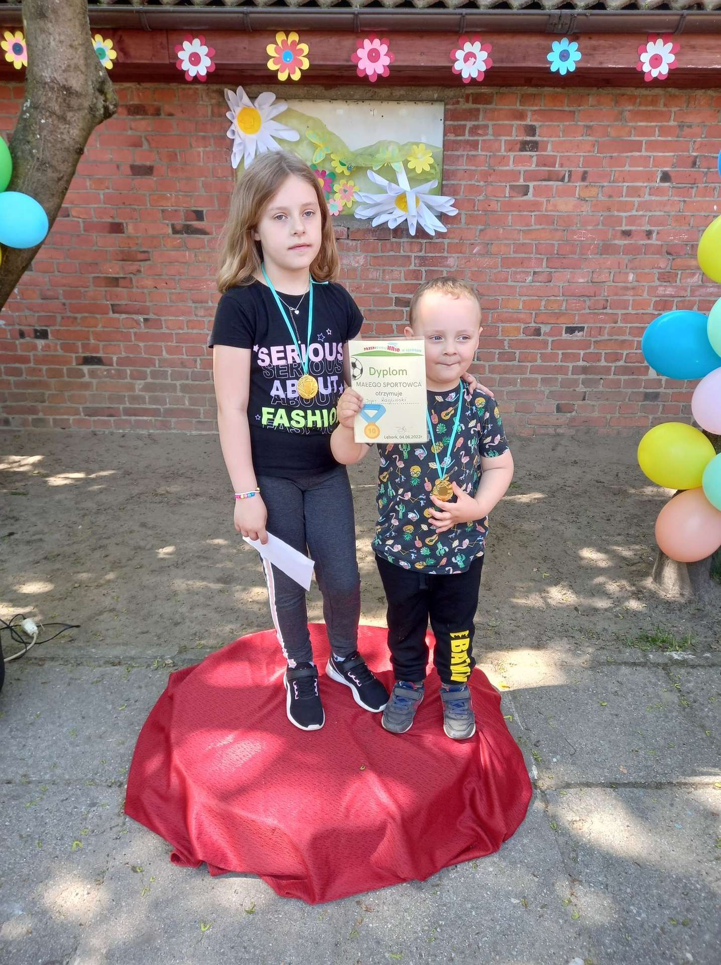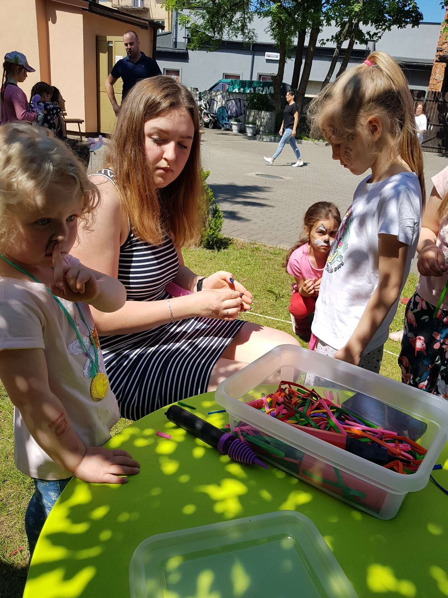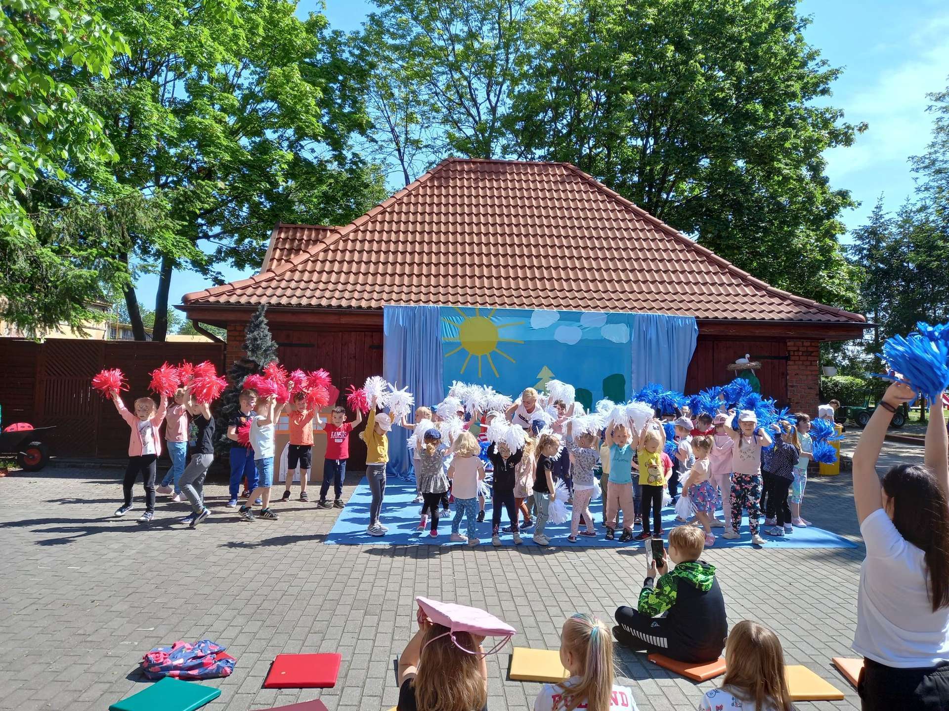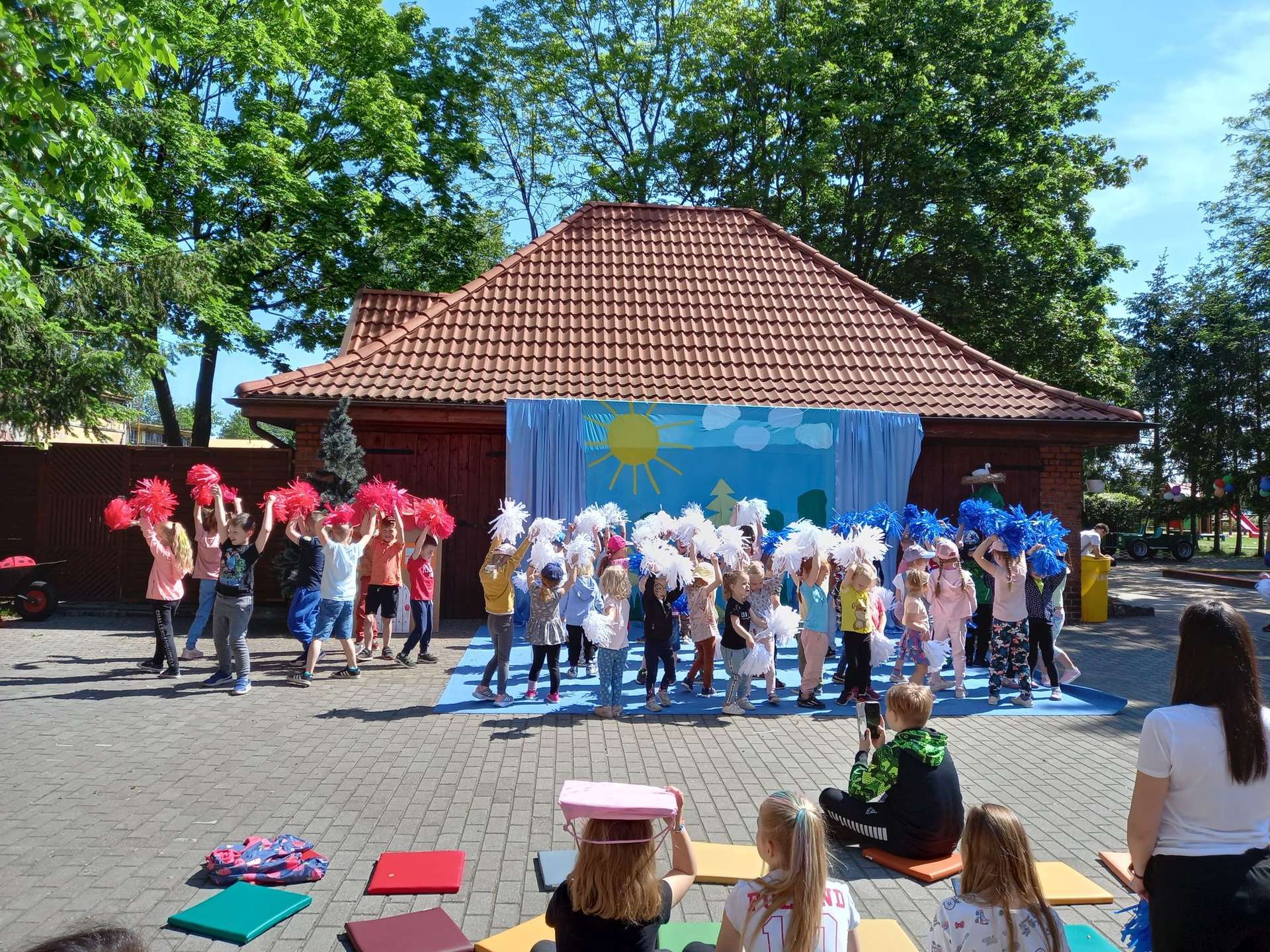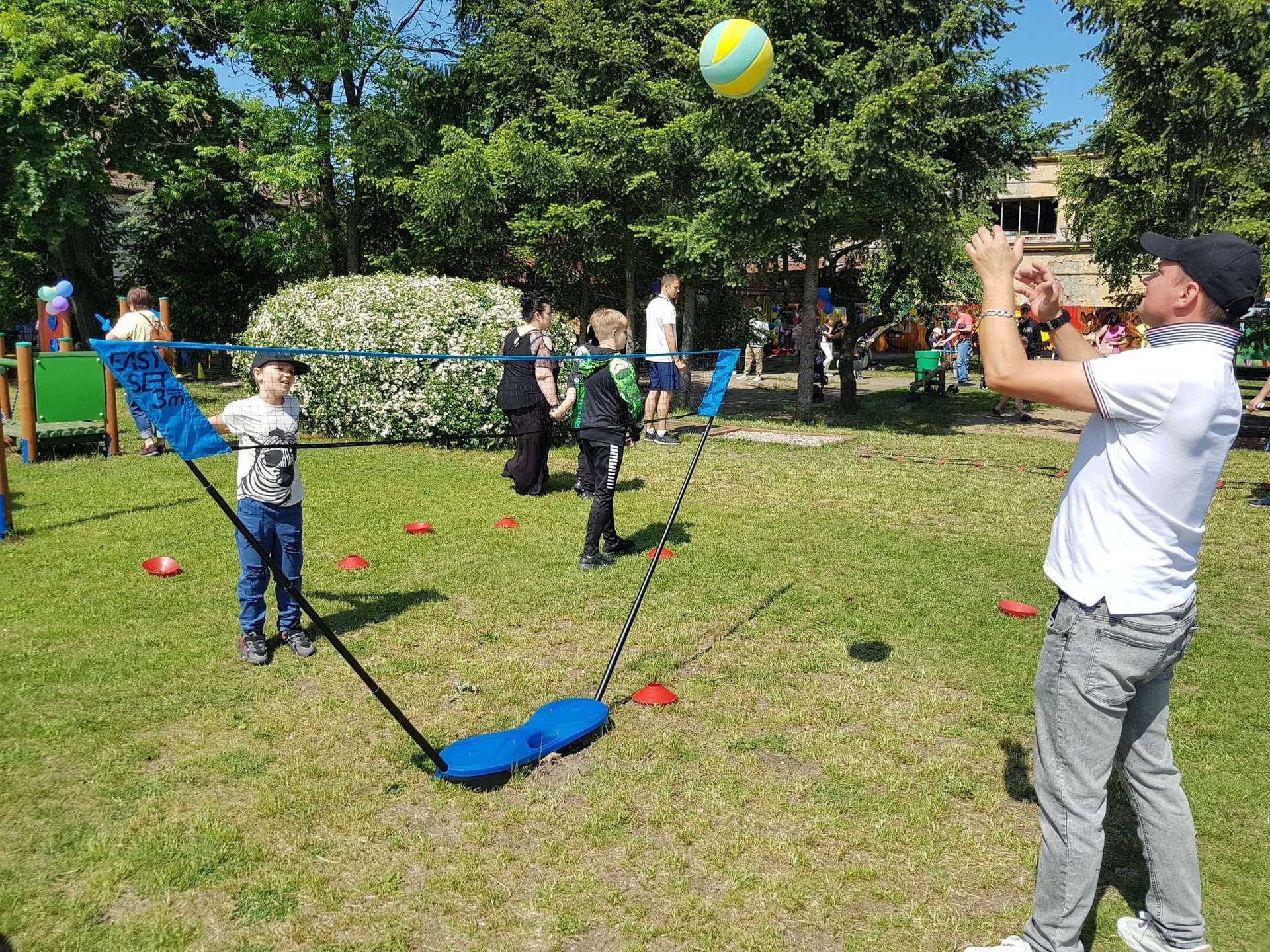 4 czerwca, w piękny słoneczny dzień odbył się Festyn Rodzinny pod hasłem "Zamiast siedzieć przed ekranem, ruszaj się z aktywnym planem". Festyn podzielony był na dwie części : część artystyczną i rekreacyjną. W tej drugiej dzieci wraz z rodzicami uczestniczyły w konkurencjach sportowych, które poprowadził p. Michał Pietrzyk - tata dziewczynek z naszego przedszkola oraz nauczyciele. Pozytywnych emocji było bardzo wiele. Po wykonaniu sportowych zadań każde dziecko otrzymało złoty medal. Uczestnicy mieli również wiele innych atrakcji. Nie zabrakło również tradycyjnego grillowania i słodkości.