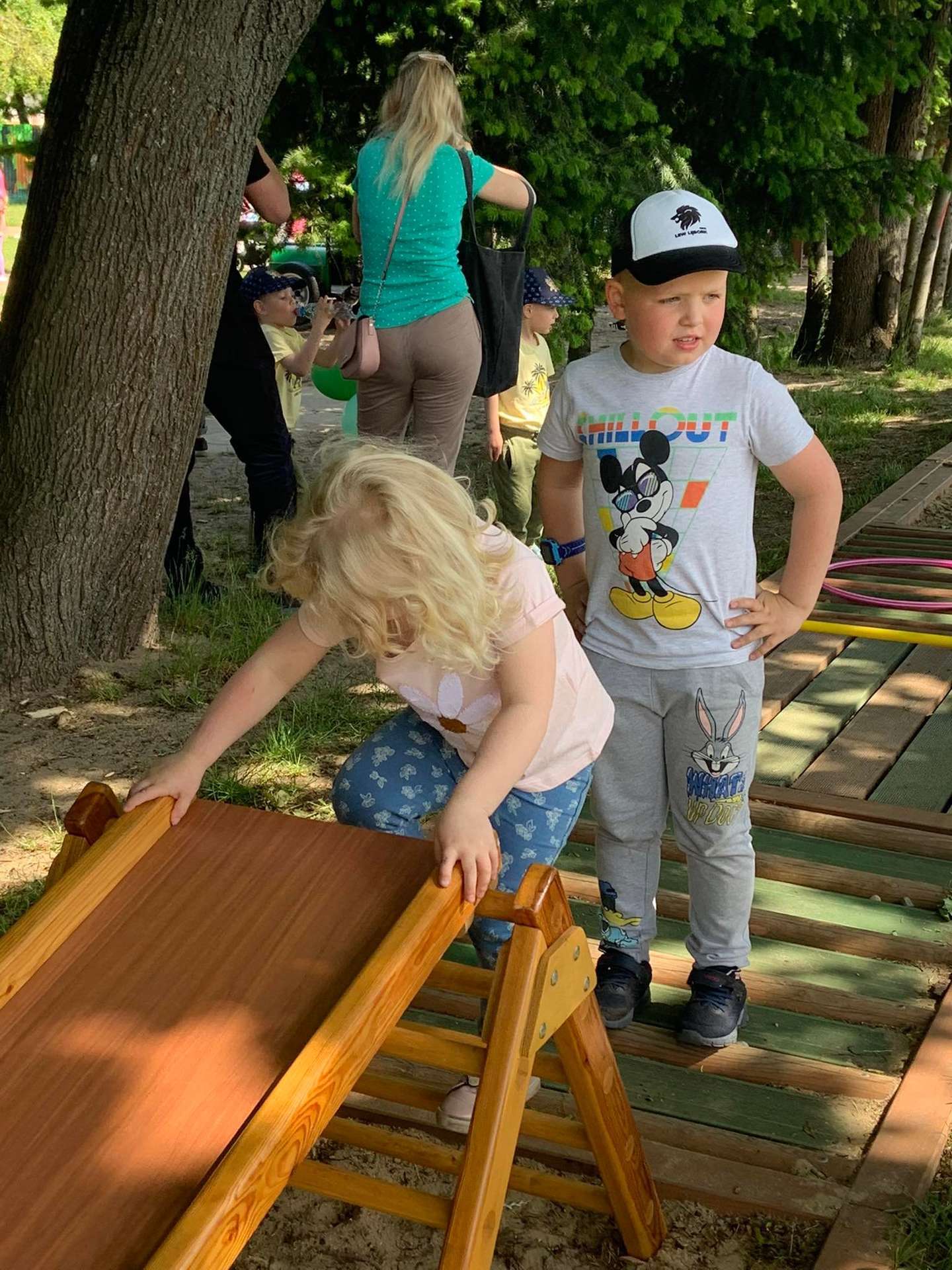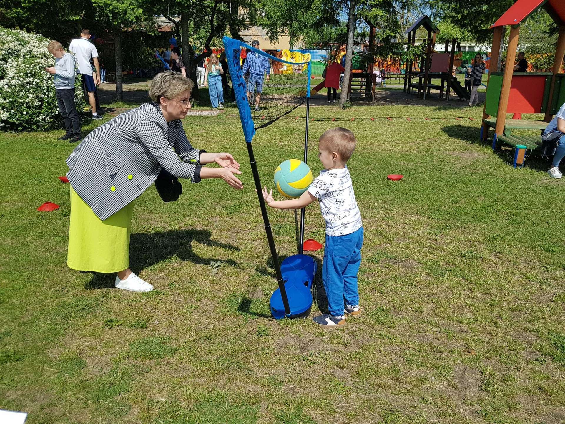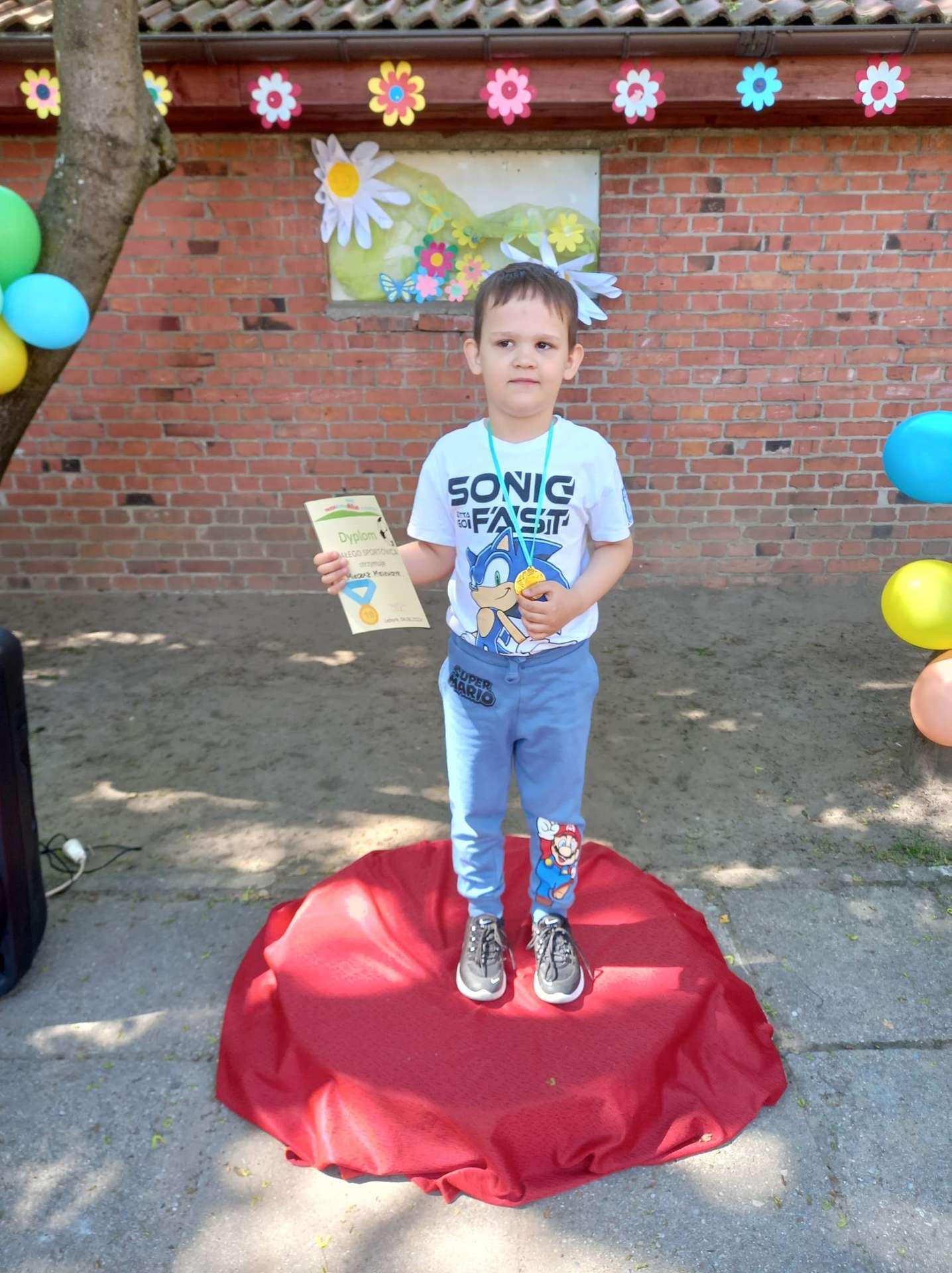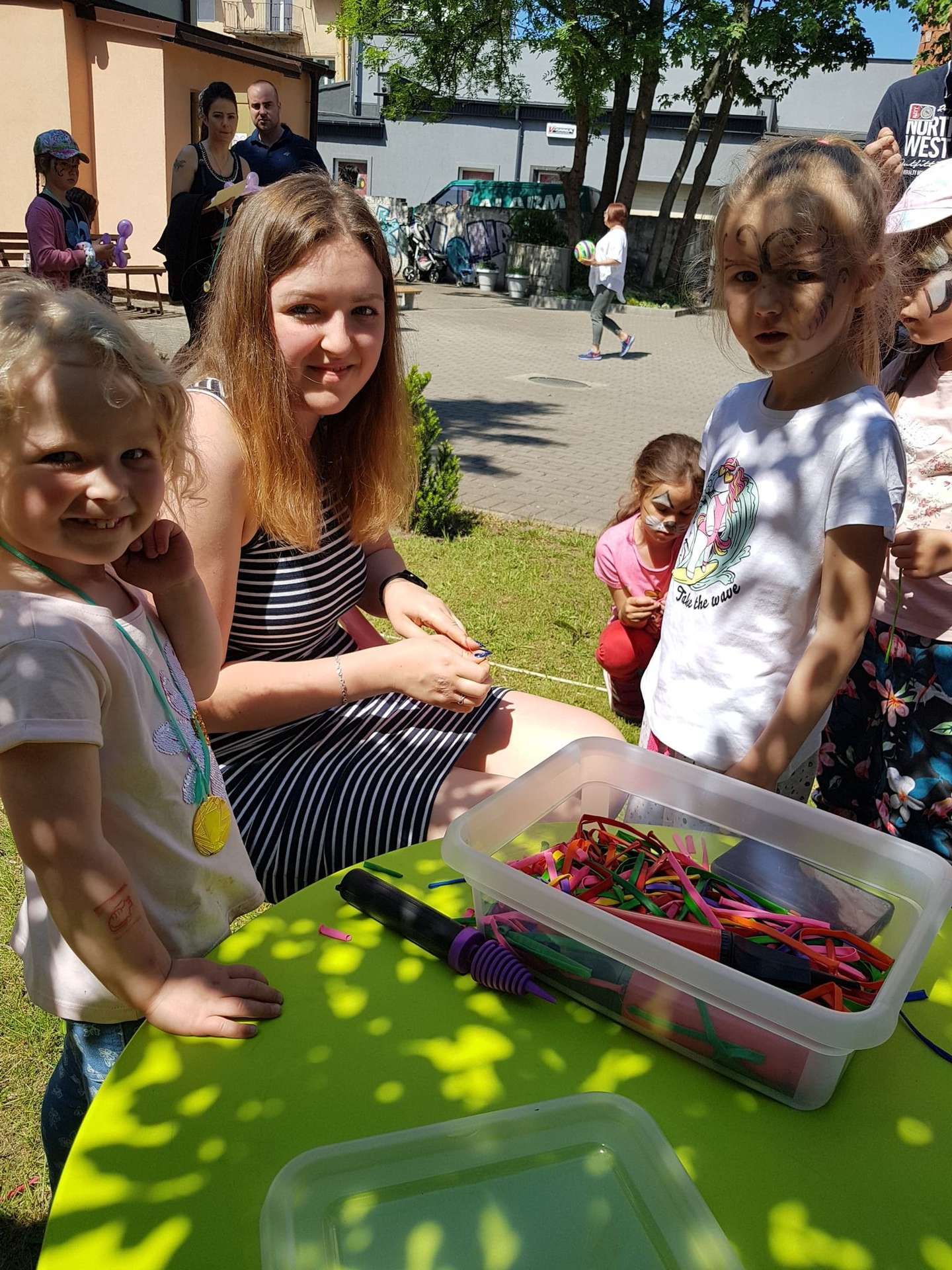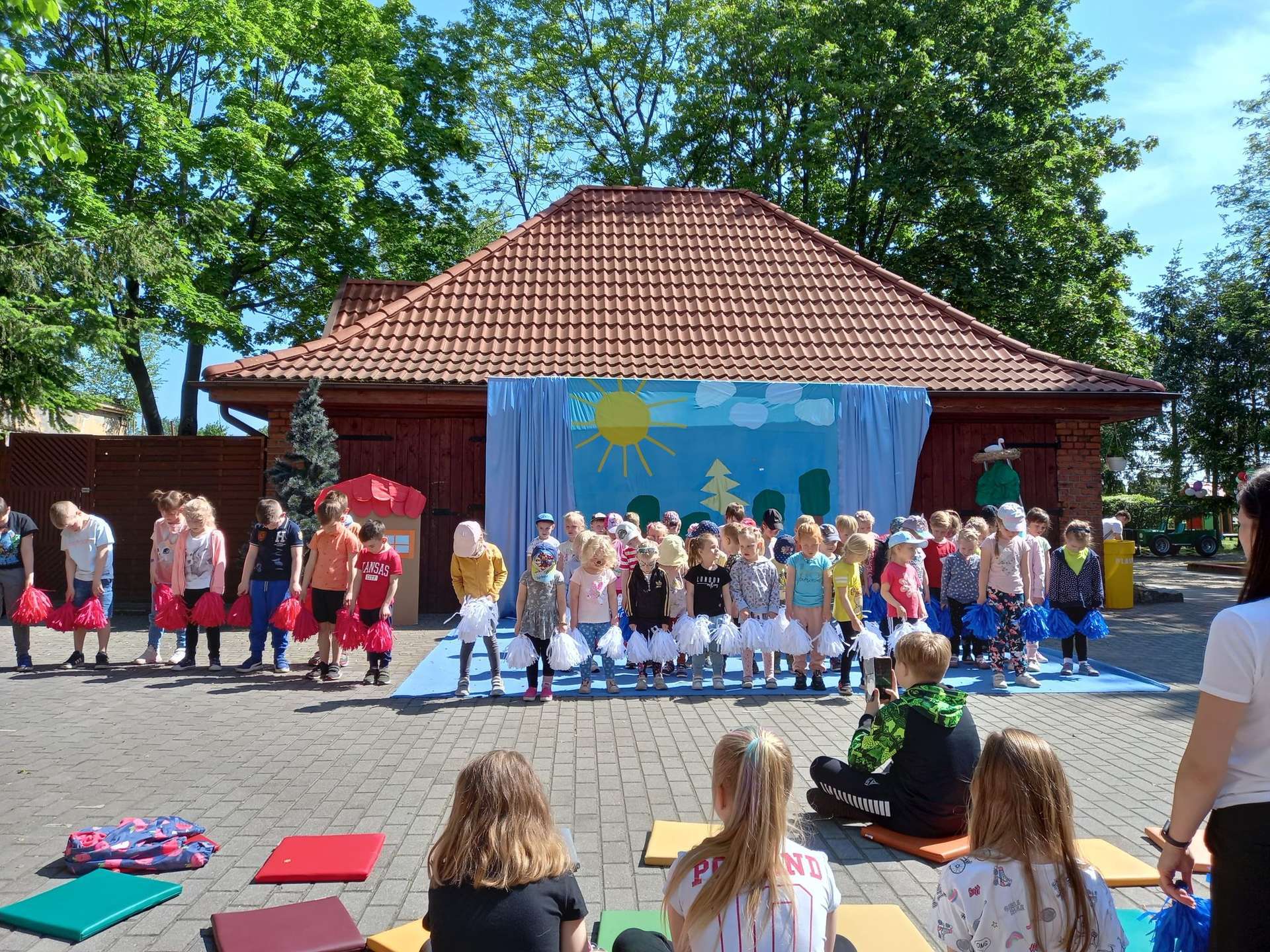 4 czerwca, w piękny słoneczny dzień odbył się Festyn Rodzinny pod hasłem "Zamiast siedzieć przed ekranem, ruszaj się z aktywnym planem". Festyn podzielony był na dwie części : część artystyczną i rekreacyjną. W tej drugiej dzieci wraz z rodzicami uczestniczyły w konkurencjach sportowych, które poprowadził p. Michał Pietrzyk - tata dziewczynek z naszego przedszkola oraz nauczyciele. Pozytywnych emocji było bardzo wiele. Po wykonaniu sportowych zadań każde dziecko otrzymało złoty medal. Uczestnicy mieli również wiele innych atrakcji. Nie zabrakło również tradycyjnego grillowania i słodkości.