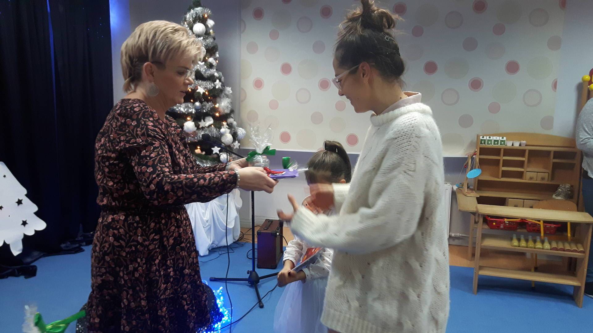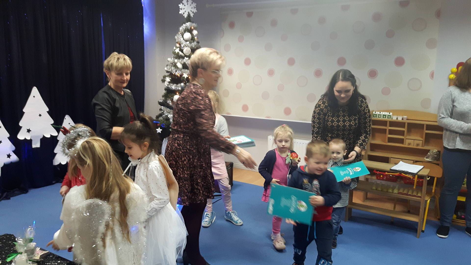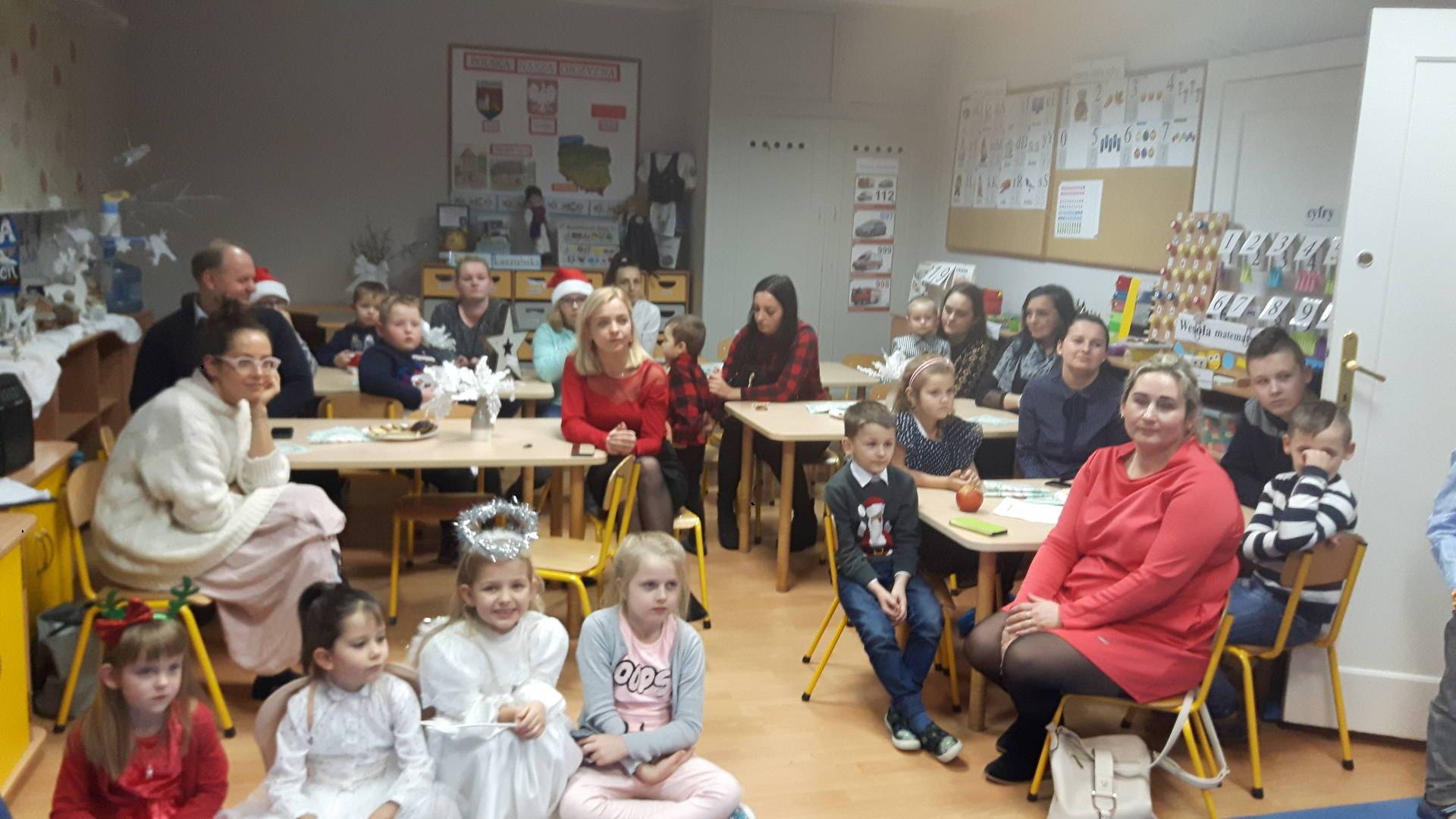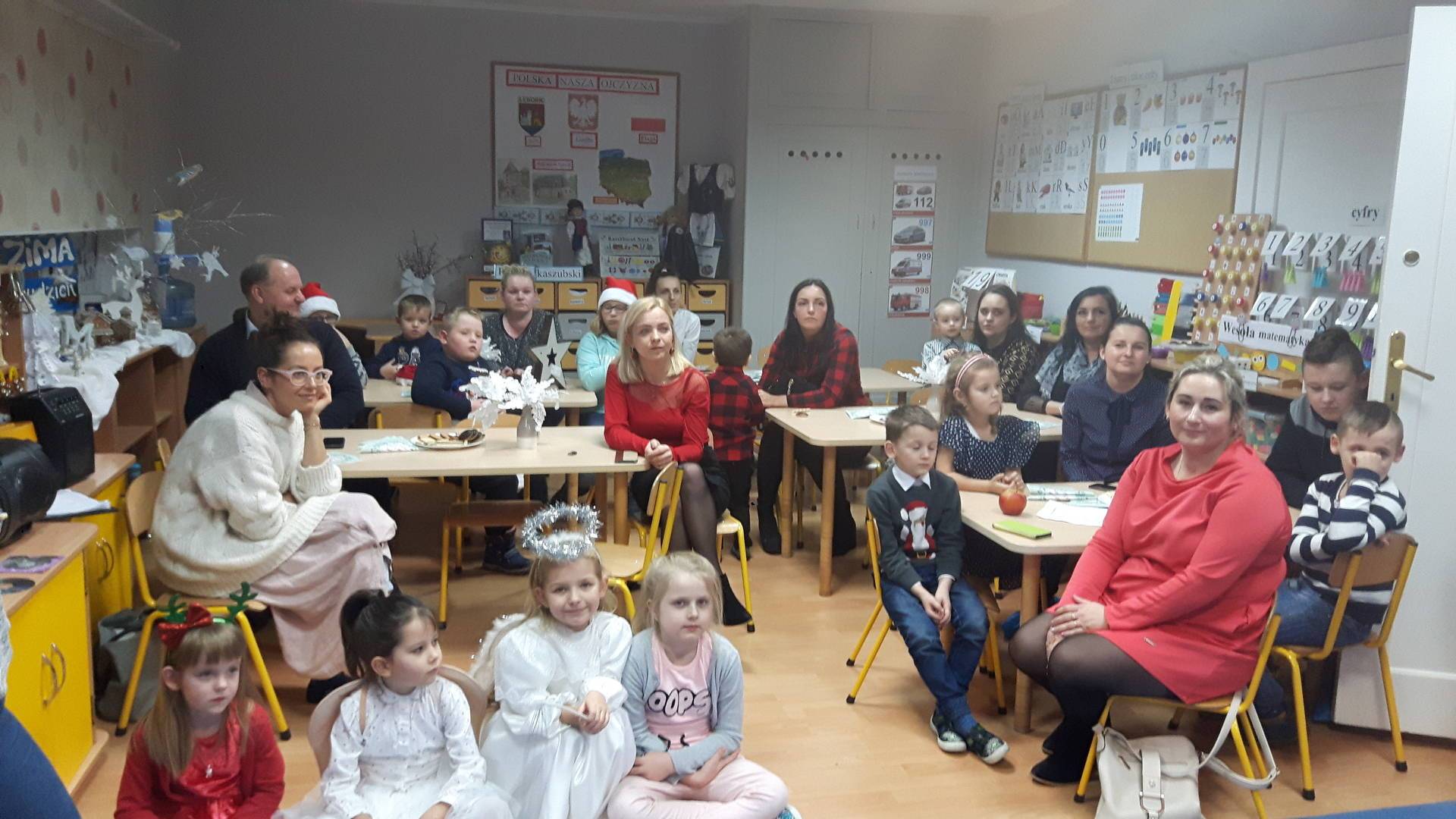 W ramach akcji "Razem na święta" w naszym przedszkolu odbył się wieczór kolęd. 19 grudnia dzieci wraz z członkami swoich rodzin śpiewały kolędy i pastorałki. Serdeczna, ciepła atmosfera sprawiły, że wszyscy czuli się jak w domu. Obecność rodziców, rodzeństwa, dziadków sprawiła dzieciom wiele radości.