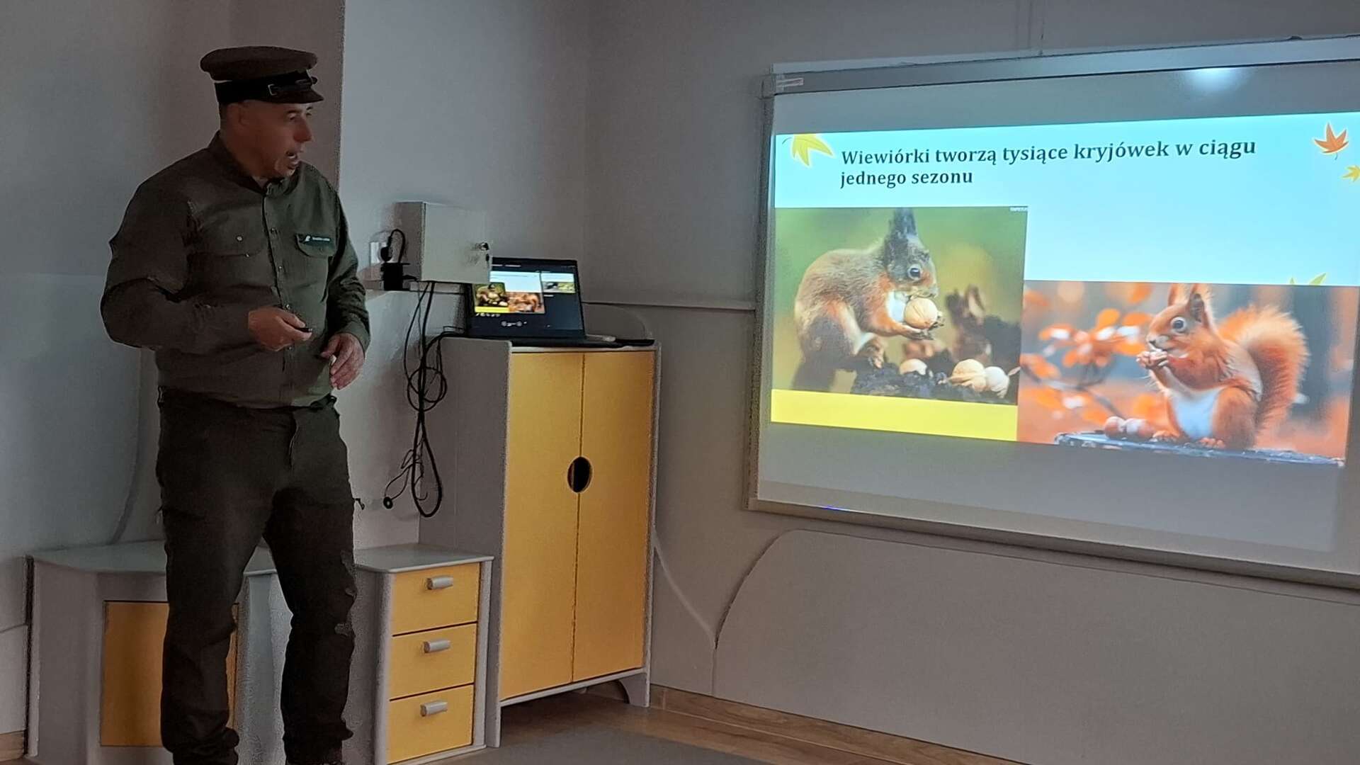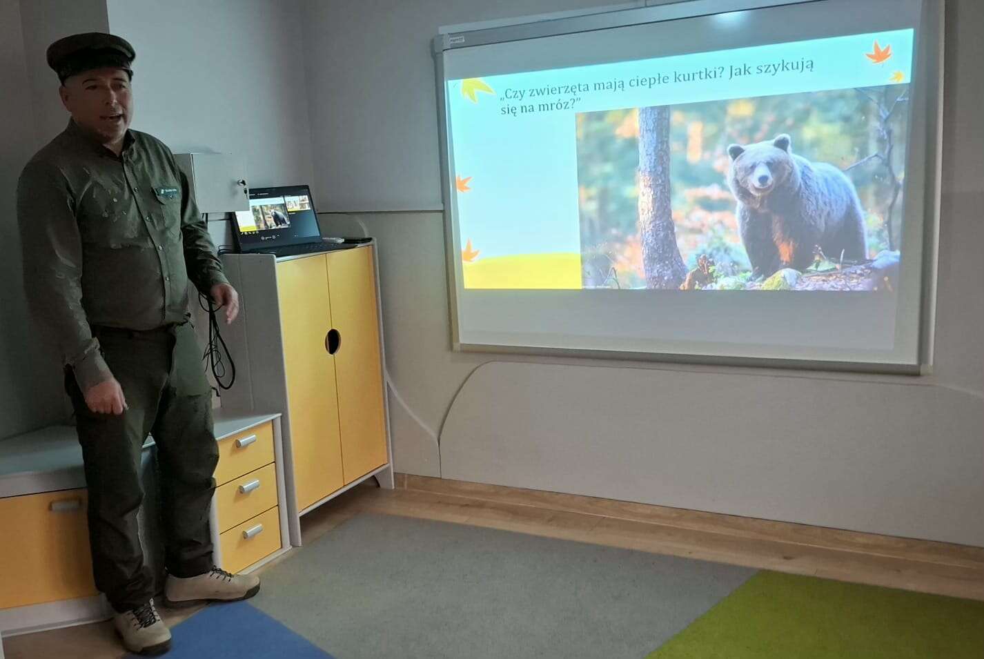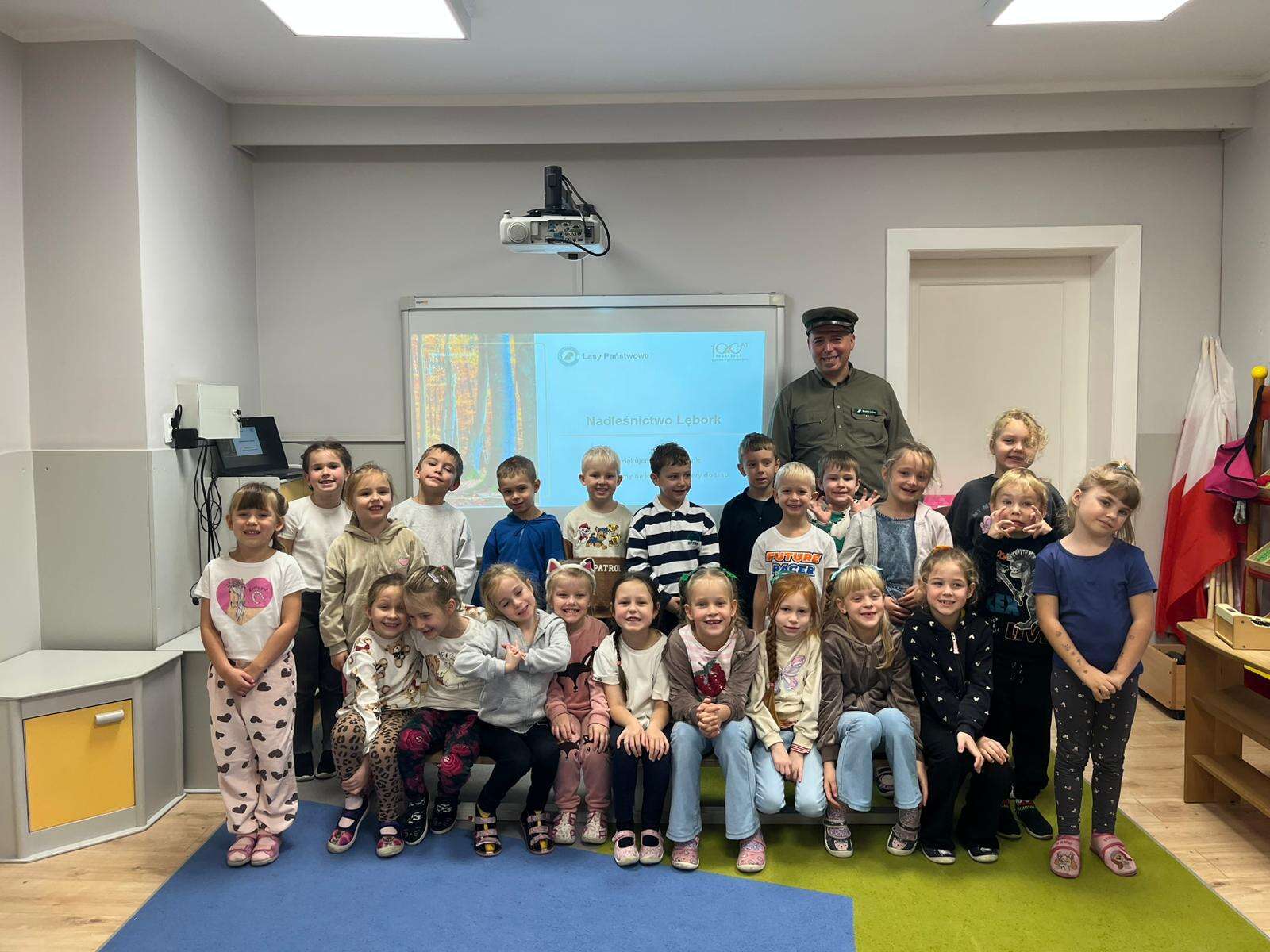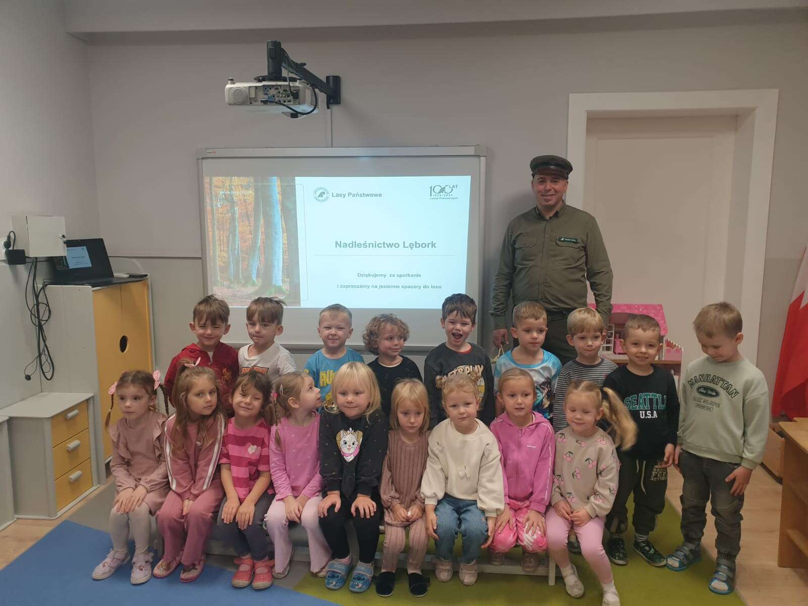 W dniu 28 października odbyło się spotkanie z panem Sławomirem Mazurem - leśniczym z Nadleśnictwa Lębork. Podczas spotkania dzieci dowiedziały się , jak zwierzęta leśne radzą sobie w trudnych zimowych warunkach. Pan leśniczy opowiedział, które gatunki zapadają w sen zimowy, jak ptaki odlatujące przygotowują się do długiej podróży, a także, jak inne zwierzęta gromadzą zapasy pożywienia. Nie zabrakło ciekawostek o zmianie futra u zajęcy, lisów i saren. Spotkanie był bardzo interesujące i zakończyło się krótkimi zagadkami. Przedszkolaki świetnie sobie poradziły !!!