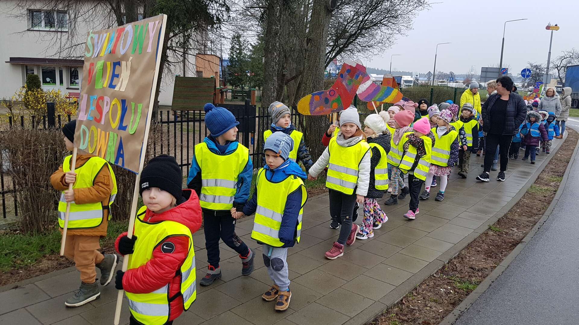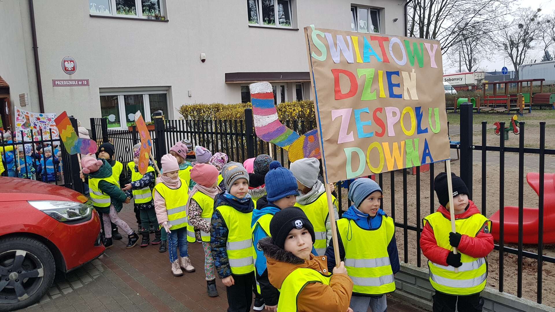 21 marca obchodzimy Światowy Dzień Zespołu Downa. Ideą święta jest zwrócenie uwagi społeczeństwa na osoby z Zespołem Downa. Nasze przedszkole również włączyło się w ogólnoświatową kampanię na rzecz osób dotkniętych tym schorzeniem.. Dzieci oraz pracownicy przedszkola założyli kolorowe skarpetki na znak solidaryzowania się z osobami chorymi. W każdej grupie odbyło się szereg ciekawych zajęć, przybliżających dzieciom w/w temat. Uwieńczeniem obchodów tego święta był symboliczny "marsz radości" z kolorowymi skarpetkami i transparentami.