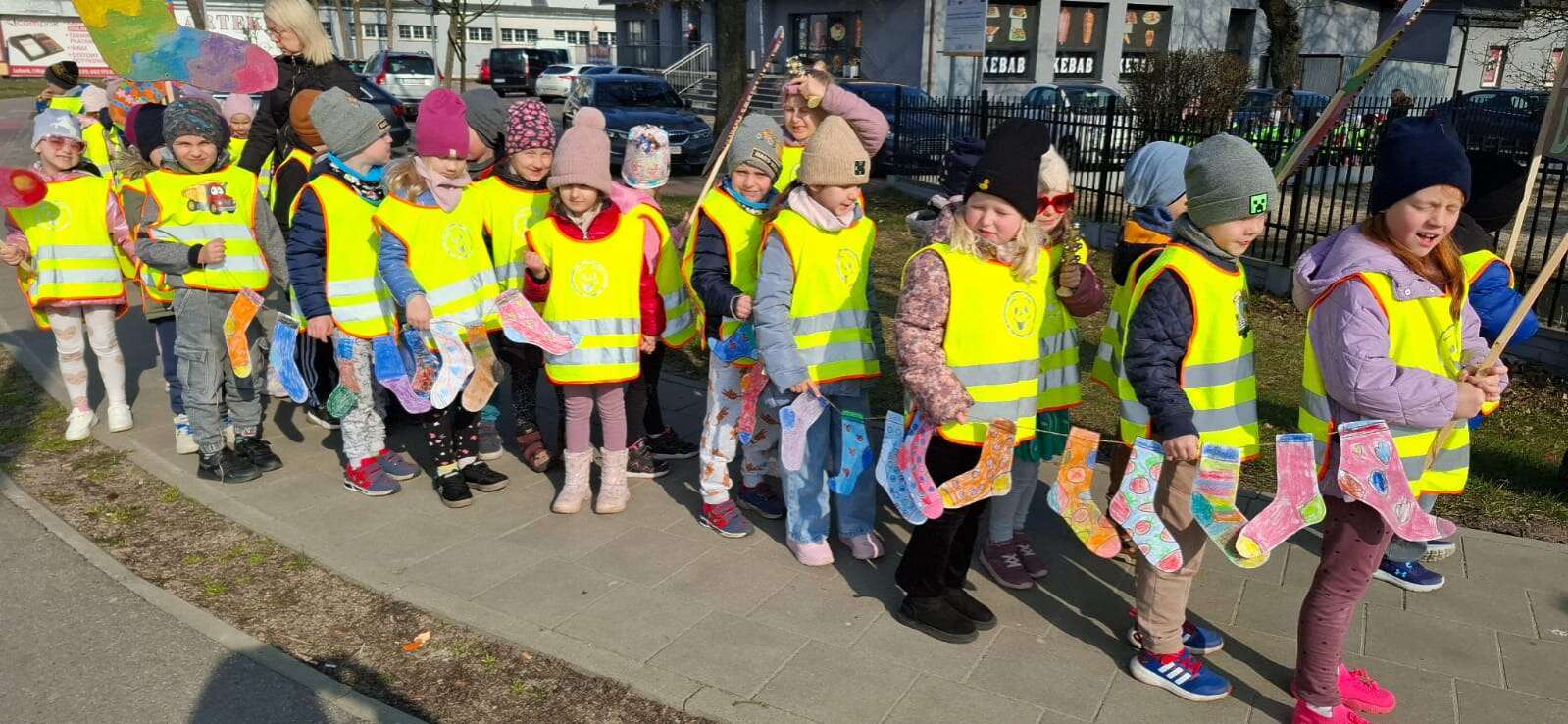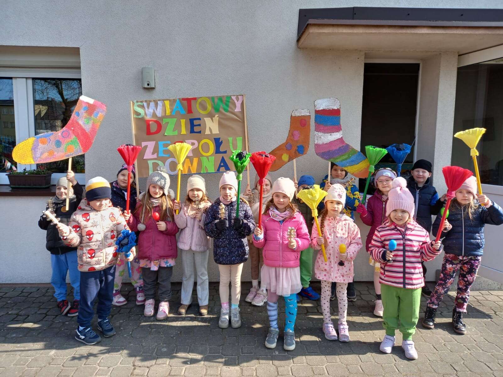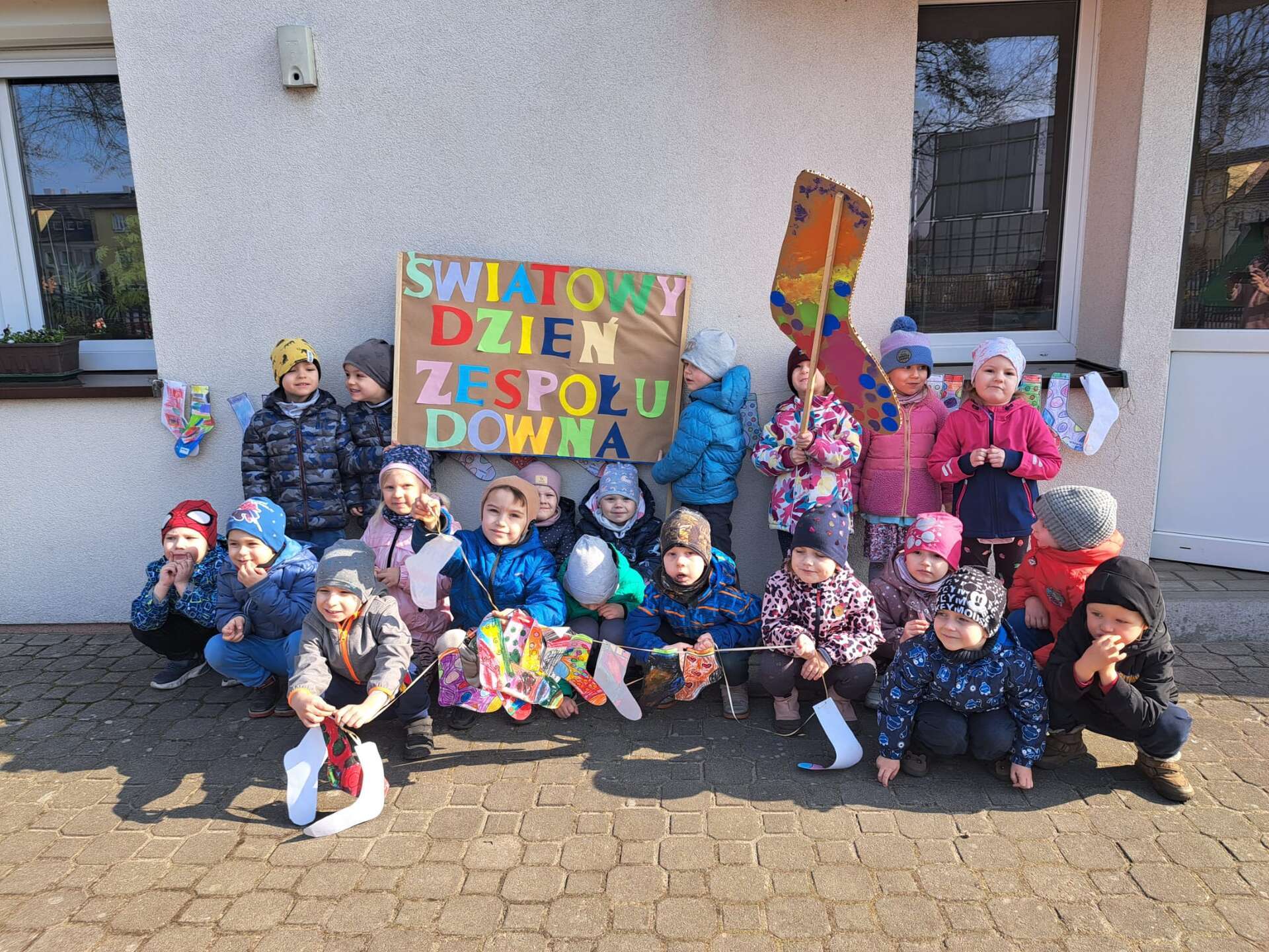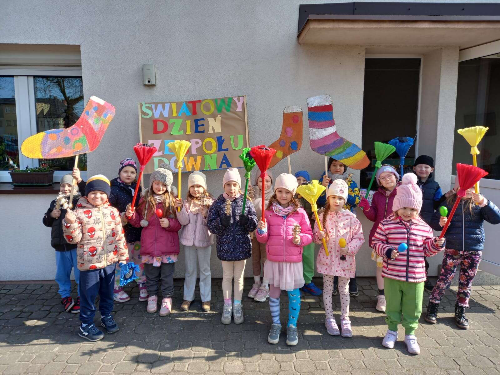 Z okazji *Światowego Dnia Zespołu Downa*, który obchodzimy 21 marca, nasze przedszkolaki wzięły udział w *Marszu Radości*, aby wyrazić solidarność i wsparcie dla dzieci z zespołem Downa. To ważne wydarzenie miało na celu zwrócenie uwagi na potrzeby i prawa osób z tym schorzeniem oraz promowanie akceptacji i szacunku dla wszystkich, niezależnie od różnic. Dzieci, trzymając kolorowe transparenty i symboliczne skarpetki radośnie przemaszerowały okolicą przedszkola. Dzieci uczestniczyły również w zajęciach, które miały na celu jeszcze większe zbliżenie i zrozumienie idei równości i akceptacji. To był dzień pełen radości, uśmiechu i pozytywnej energii, który na długo pozostanie w pamięci naszych przedszkolaków. Jesteśmy dumni, że mogliśmy być częścią tej wyjątkowej inicjatywy i mamy nadzieję, że w przyszłości będziemy kontynuować takie działania, promując wartości otwartości i solidarności w naszym przedszkolu.