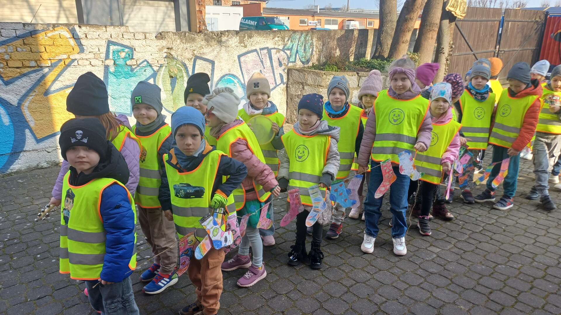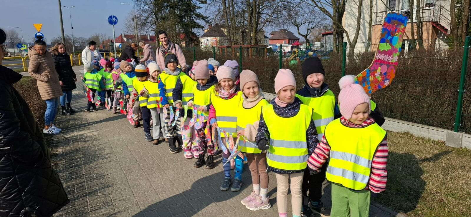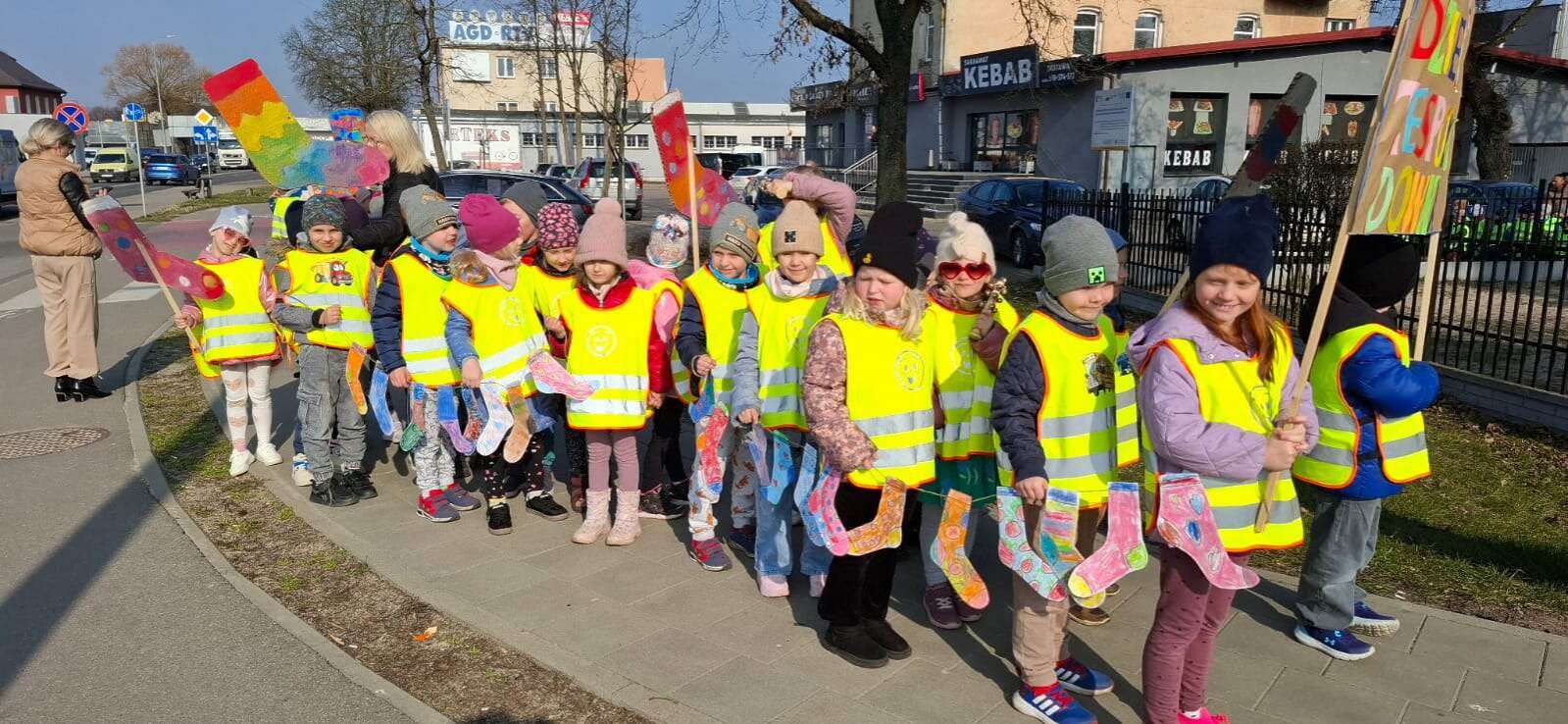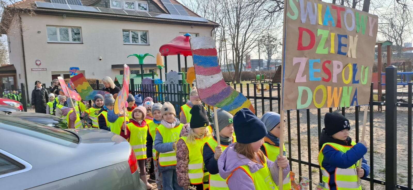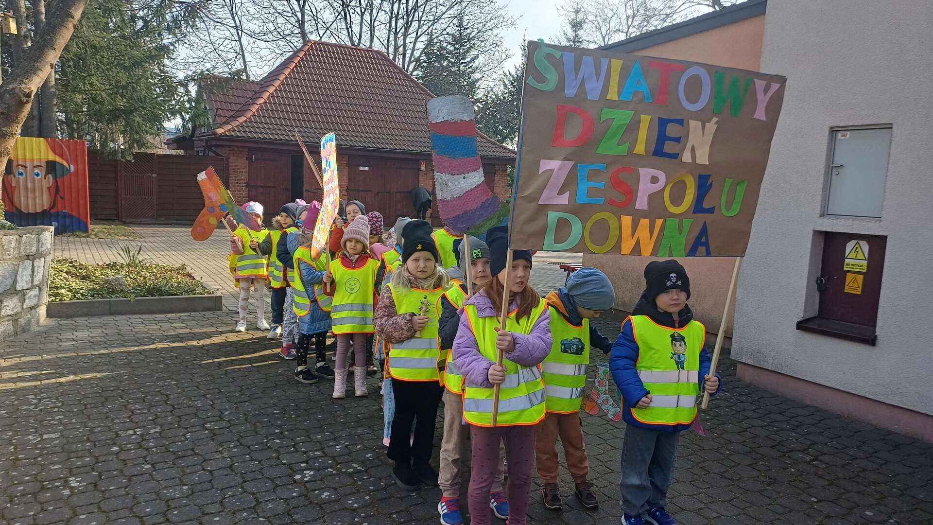 Z okazji *Światowego Dnia Zespołu Downa*, który obchodzimy 21 marca, nasze przedszkolaki wzięły udział w *Marszu Radości*, aby wyrazić solidarność i wsparcie dla dzieci z zespołem Downa. To ważne wydarzenie miało na celu zwrócenie uwagi na potrzeby i prawa osób z tym schorzeniem oraz promowanie akceptacji i szacunku dla wszystkich, niezależnie od różnic. Dzieci, trzymając kolorowe transparenty i symboliczne skarpetki radośnie przemaszerowały okolicą przedszkola. Dzieci uczestniczyły również w zajęciach, które miały na celu jeszcze większe zbliżenie i zrozumienie idei równości i akceptacji. To był dzień pełen radości, uśmiechu i pozytywnej energii, który na długo pozostanie w pamięci naszych przedszkolaków. Jesteśmy dumni, że mogliśmy być częścią tej wyjątkowej inicjatywy i mamy nadzieję, że w przyszłości będziemy kontynuować takie działania, promując wartości otwartości i solidarności w naszym przedszkolu.