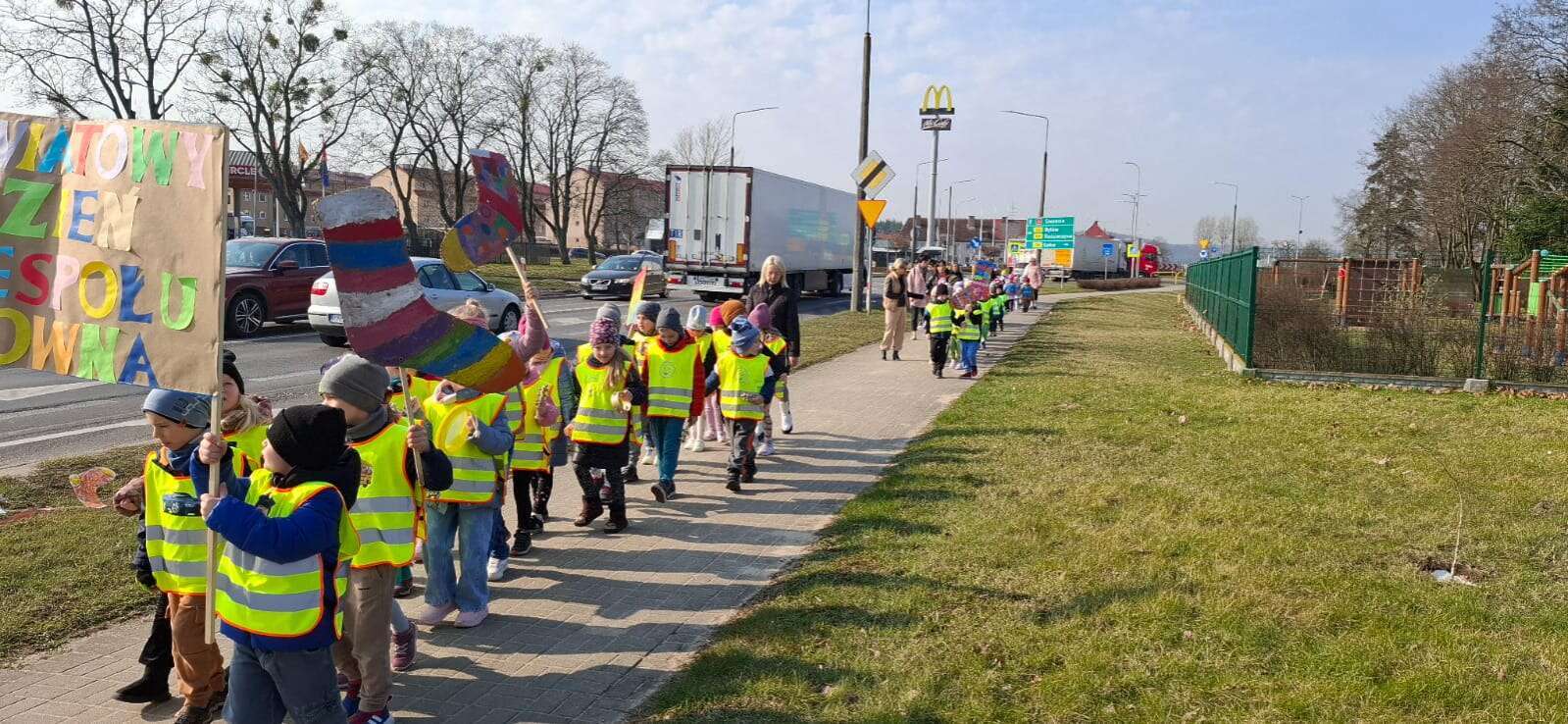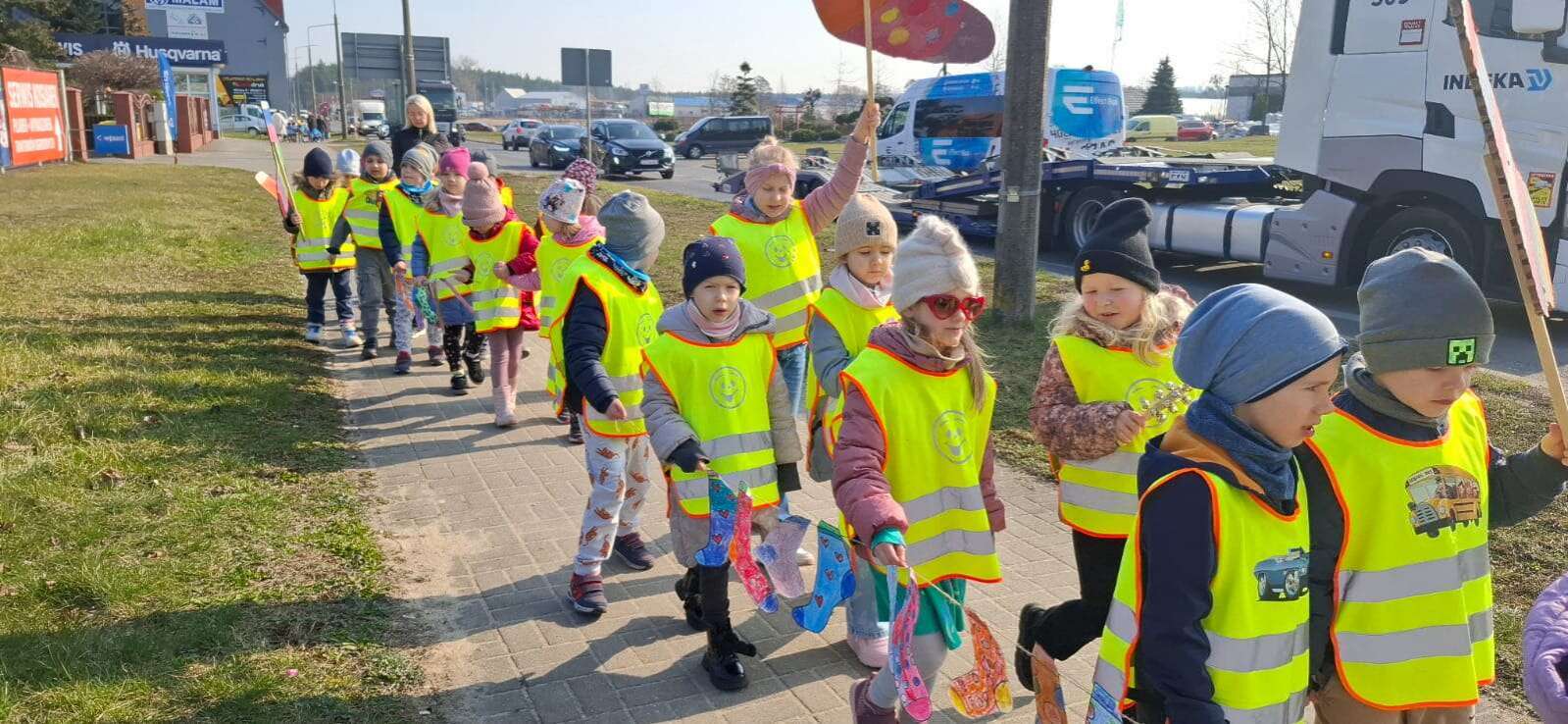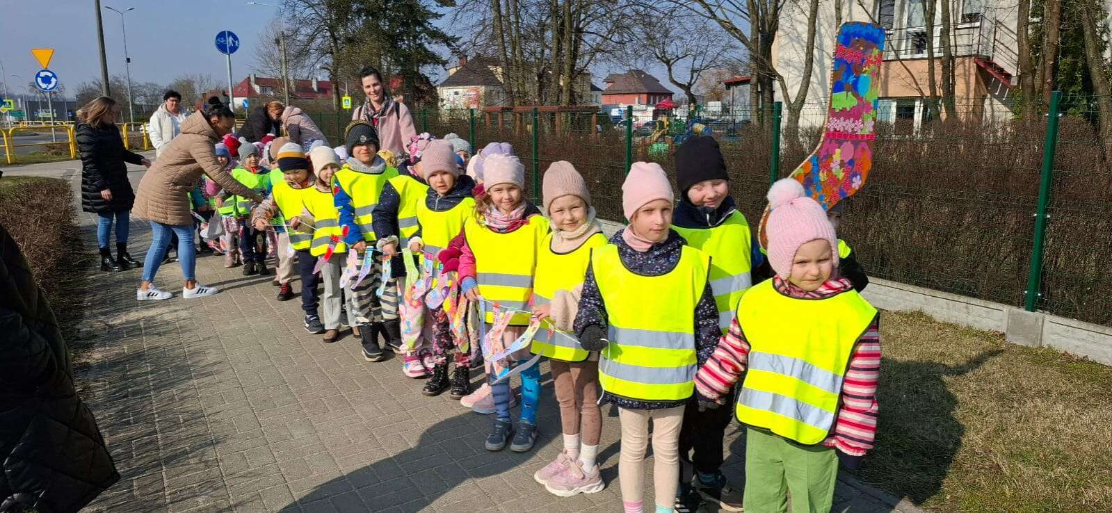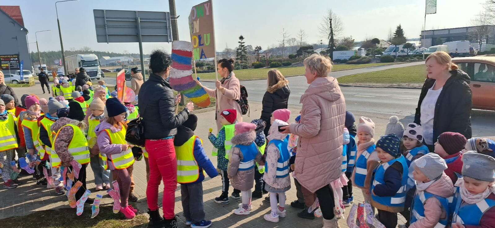 Z okazji *Światowego Dnia Zespołu Downa*, który obchodzimy 21 marca, nasze przedszkolaki wzięły udział w *Marszu Radości*, aby wyrazić solidarność i wsparcie dla dzieci z zespołem Downa. To ważne wydarzenie miało na celu zwrócenie uwagi na potrzeby i prawa osób z tym schorzeniem oraz promowanie akceptacji i szacunku dla wszystkich, niezależnie od różnic. Dzieci, trzymając kolorowe transparenty i symboliczne skarpetki radośnie przemaszerowały okolicą przedszkola. Dzieci uczestniczyły również w zajęciach, które miały na celu jeszcze większe zbliżenie i zrozumienie idei równości i akceptacji. To był dzień pełen radości, uśmiechu i pozytywnej energii, który na długo pozostanie w pamięci naszych przedszkolaków. Jesteśmy dumni, że mogliśmy być częścią tej wyjątkowej inicjatywy i mamy nadzieję, że w przyszłości będziemy kontynuować takie działania, promując wartości otwartości i solidarności w naszym przedszkolu.