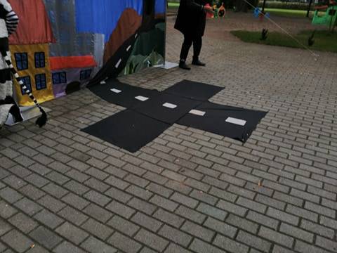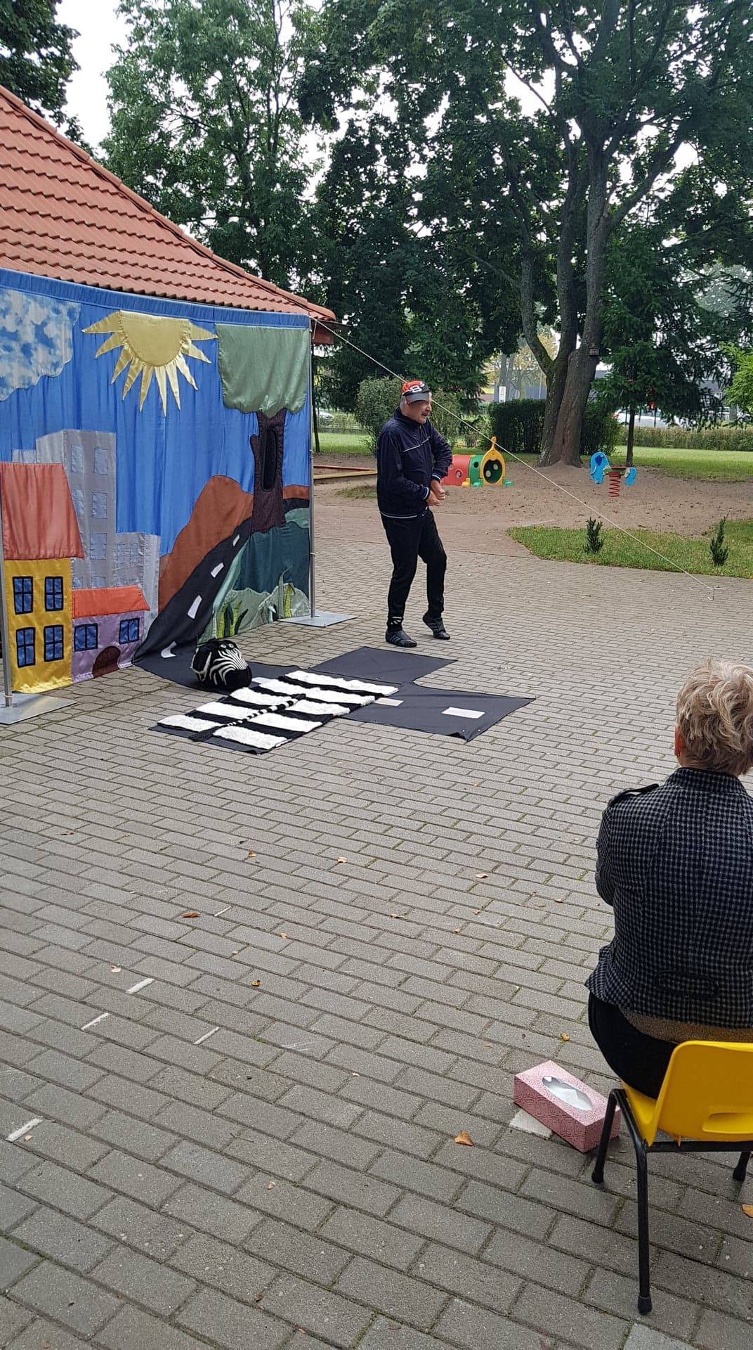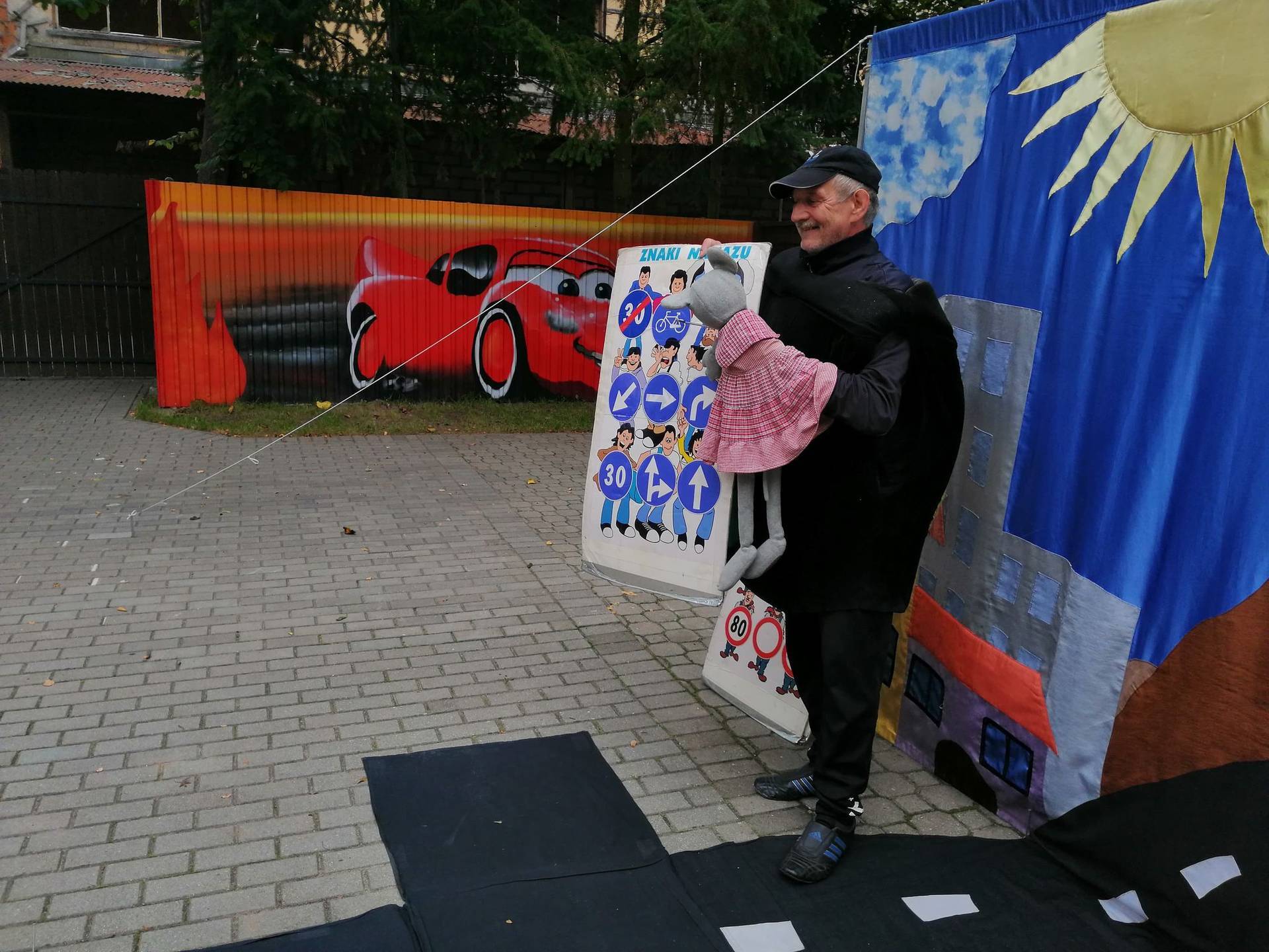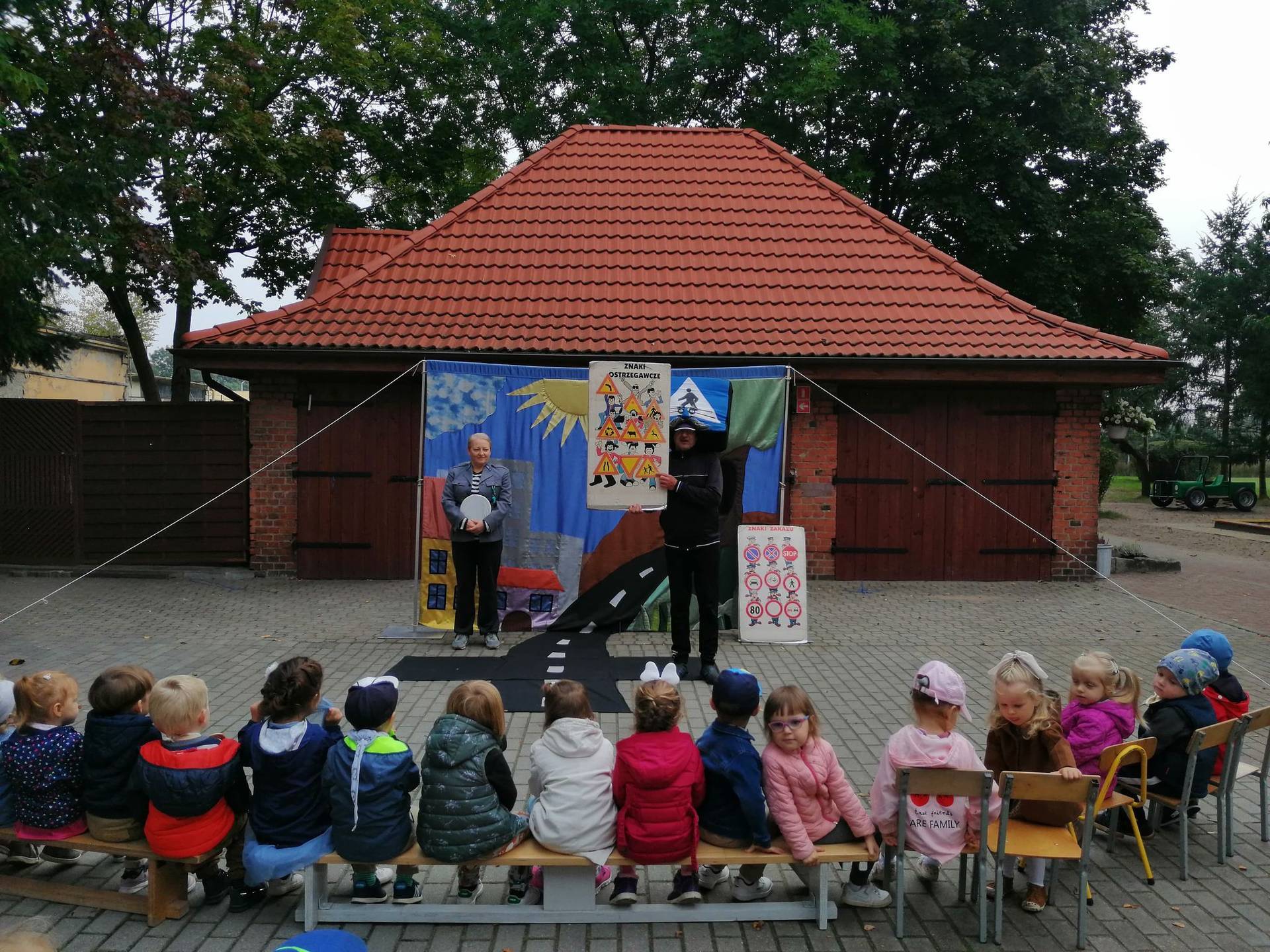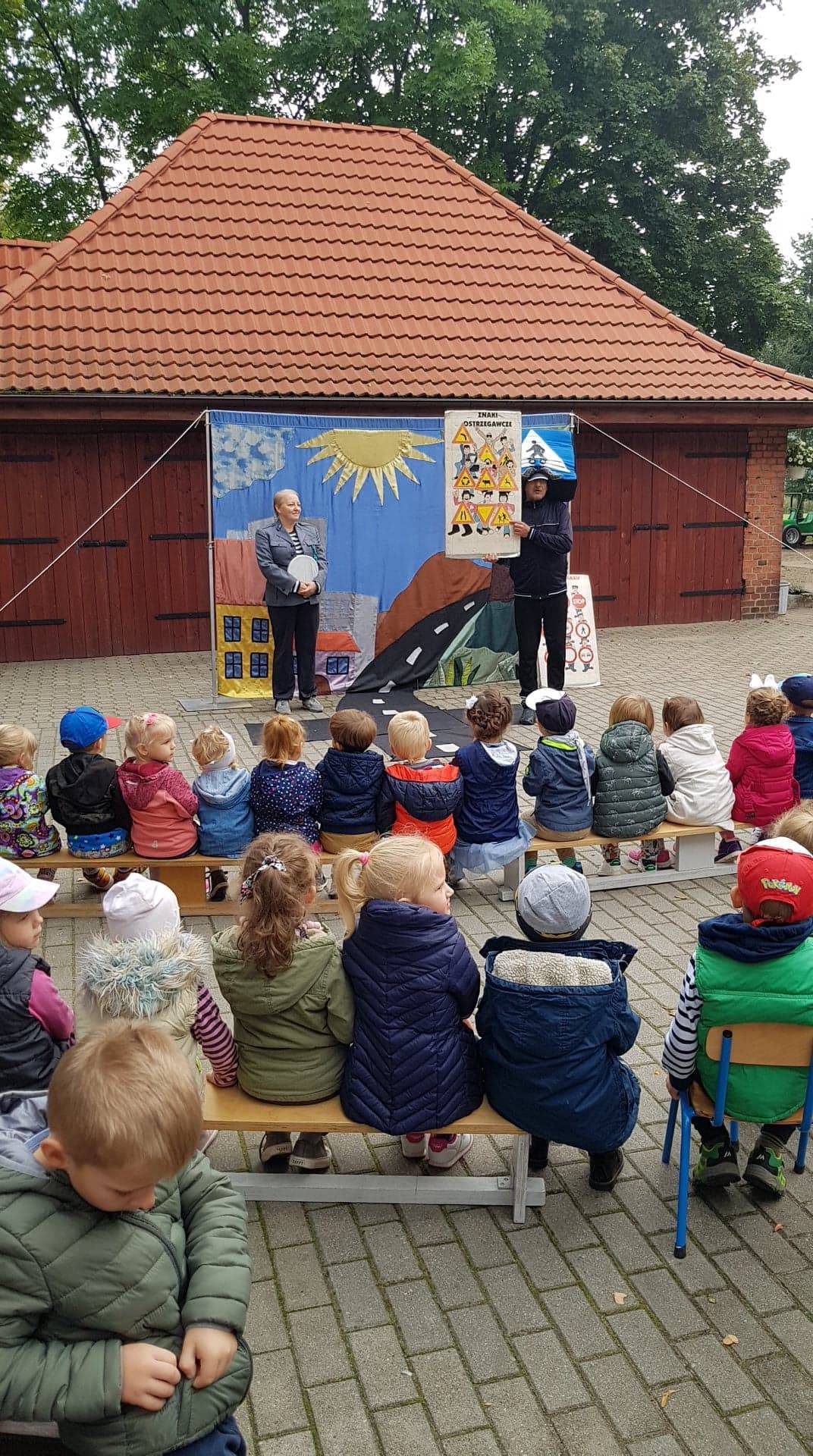Bohaterowie teatrzyku: Szalona zebra, p. Sygnalizator i Nornica przypominali dzieciom podstawowe zasady ruchu drogowego.