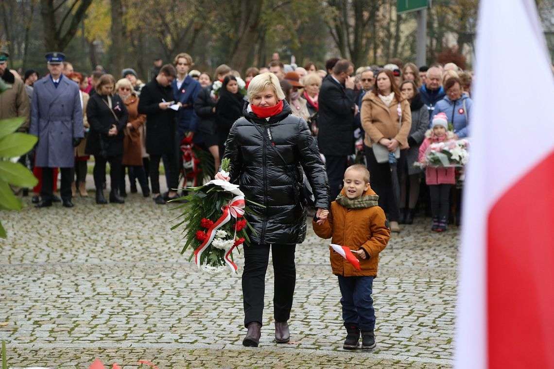 Podczas uroczystości p. Anettka wraz ze Stasiem z grupy III złożyli kwiaty pod Obeliskiem Niepodległości.