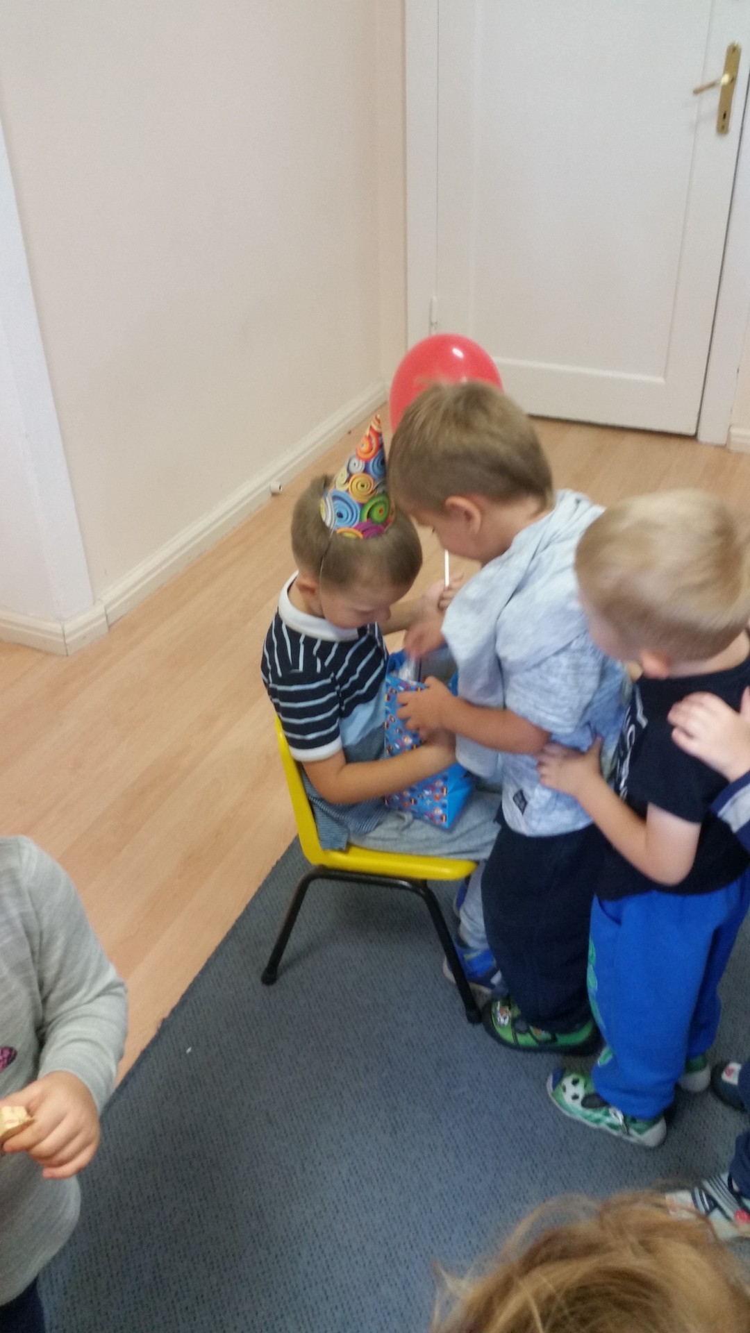 Idzie misio, idzie konik, Małpka, piesek, no i słonik, Wszyscy razem z balonami Z najlepszymi życzeniami. Bo to dzień radosny wielce - masz już jeden roczek więcej! Sto lat!