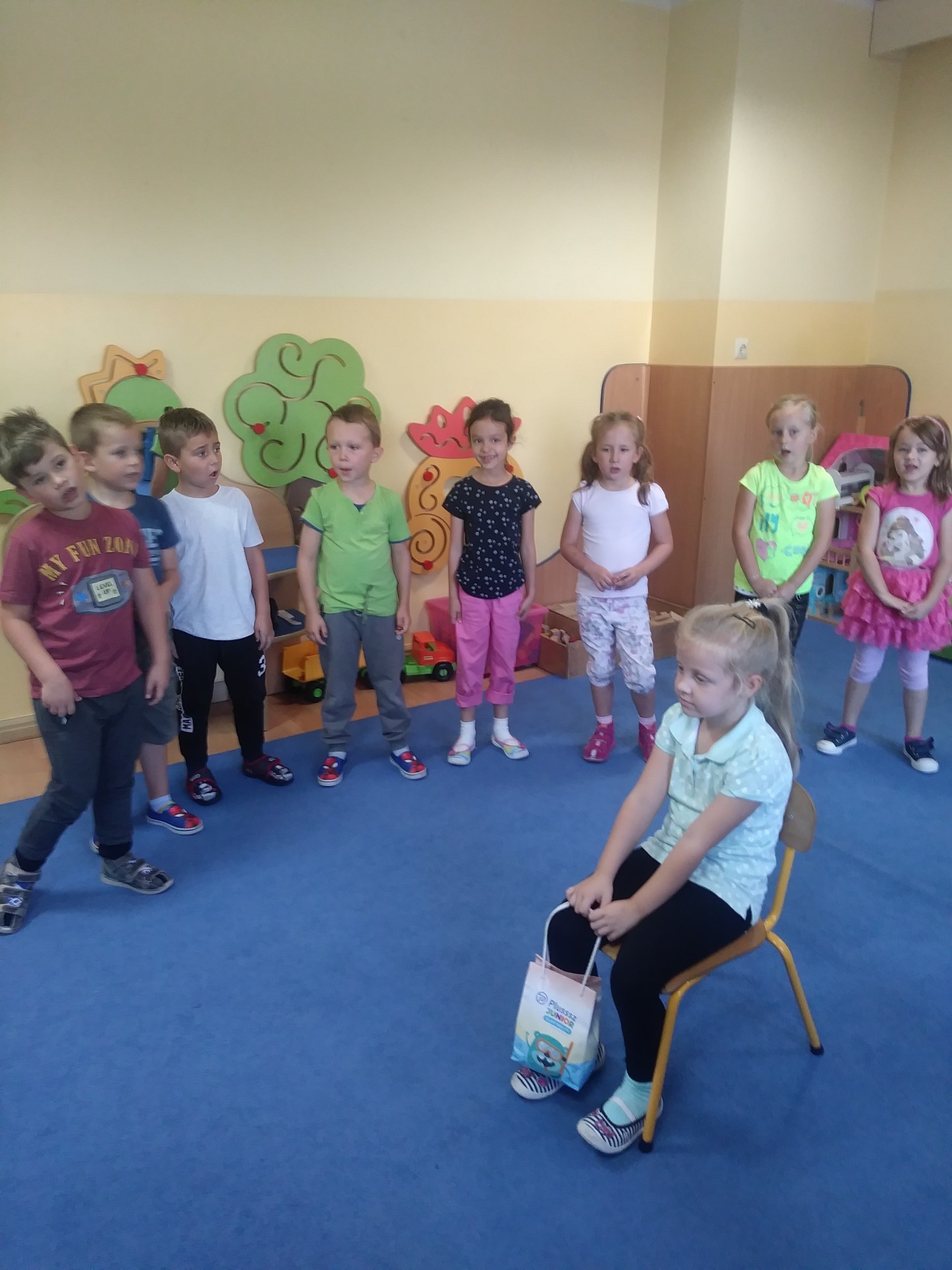 Idzie misio, idzie konik, Małpka, piesek, no i słonik, Wszyscy razem z balonami Z najlepszymi życzeniami. Bo to dzień radosny wielce - masz już jeden roczek więcej! Sto lat!