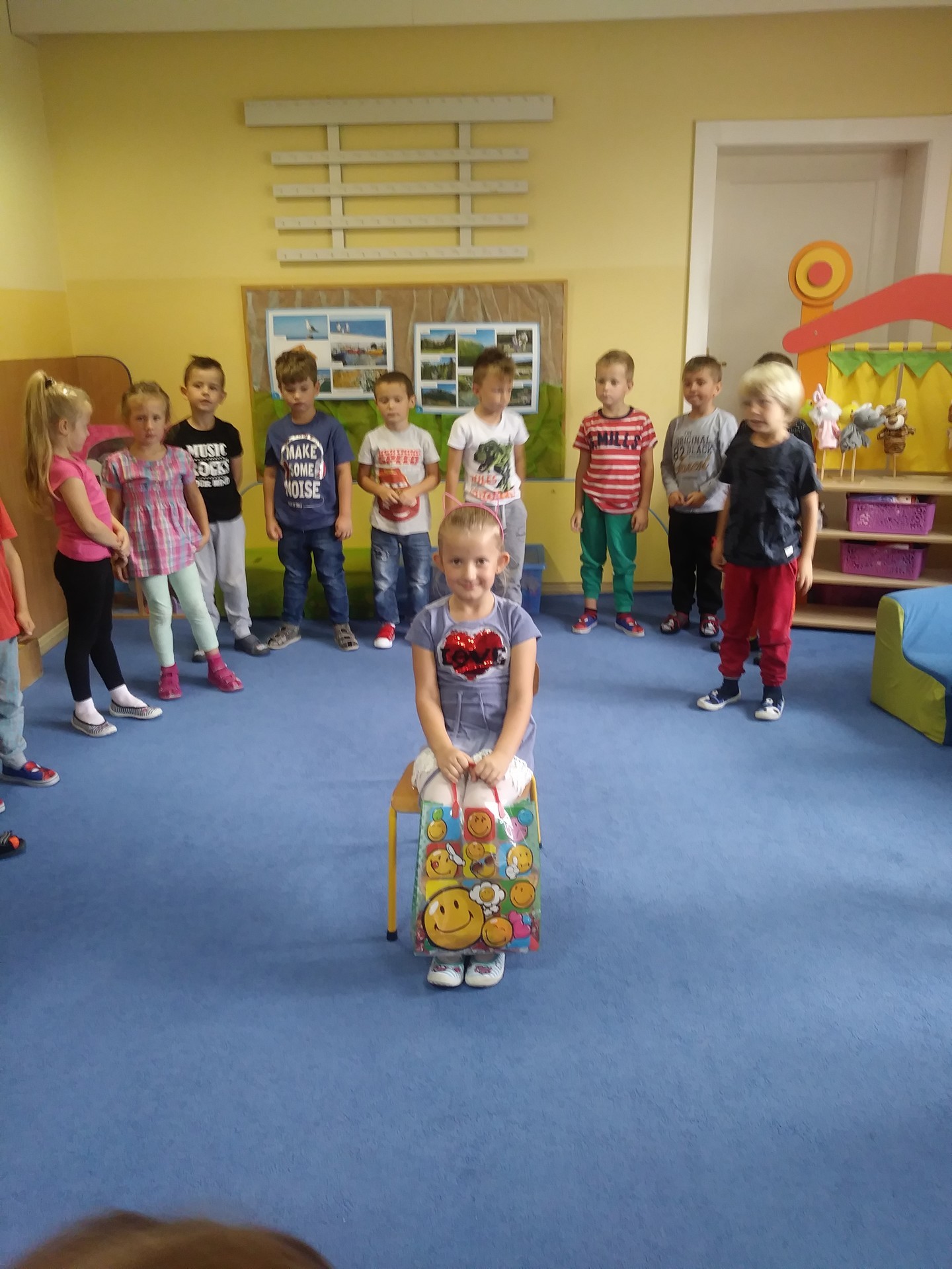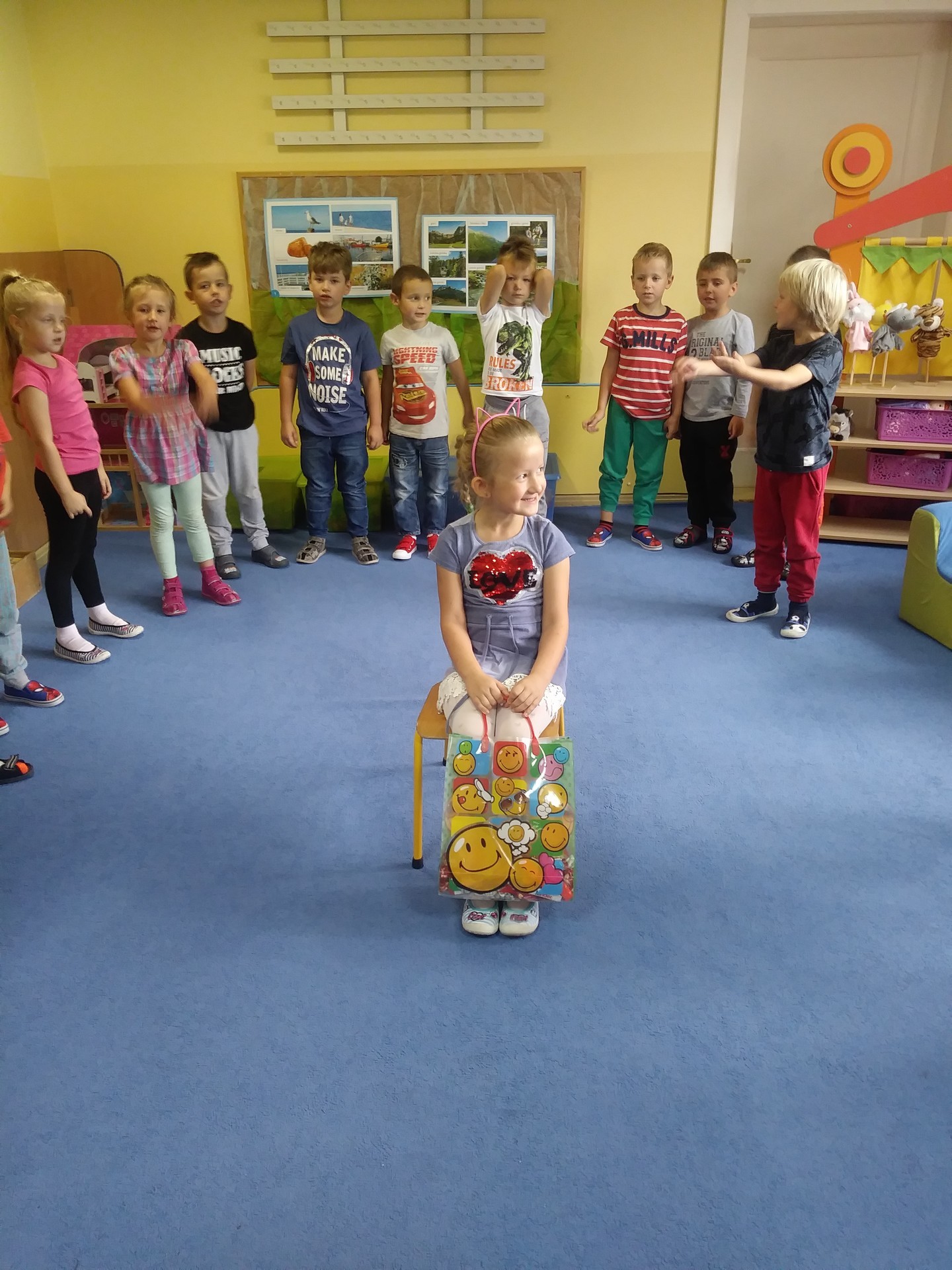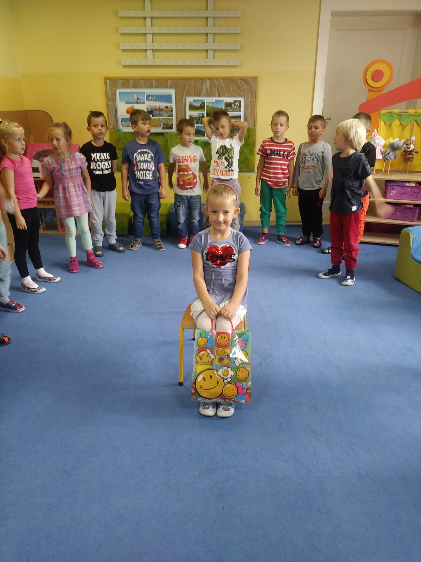 Idzie misio, idzie konik, Małpka, piesek, no i słonik, Wszyscy razem z balonami Z najlepszymi życzeniami. Bo to dzień radosny wielce - masz już jeden roczek więcej! Sto lat!