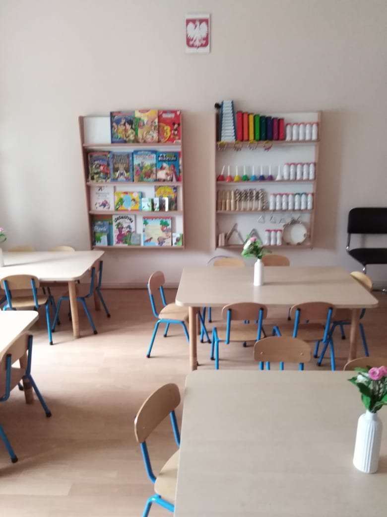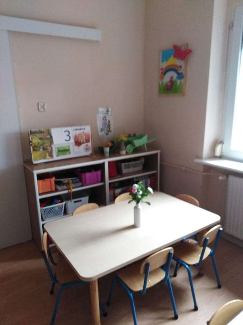 W oczekiwaniu na dzieci nauczycielki wspólnie z paniami oddziałowymi przygotowywały sale. Są kolorowe, czyste i odpowiednio wyposażone. W takich salach dzieci chętnie spędzają czas.
