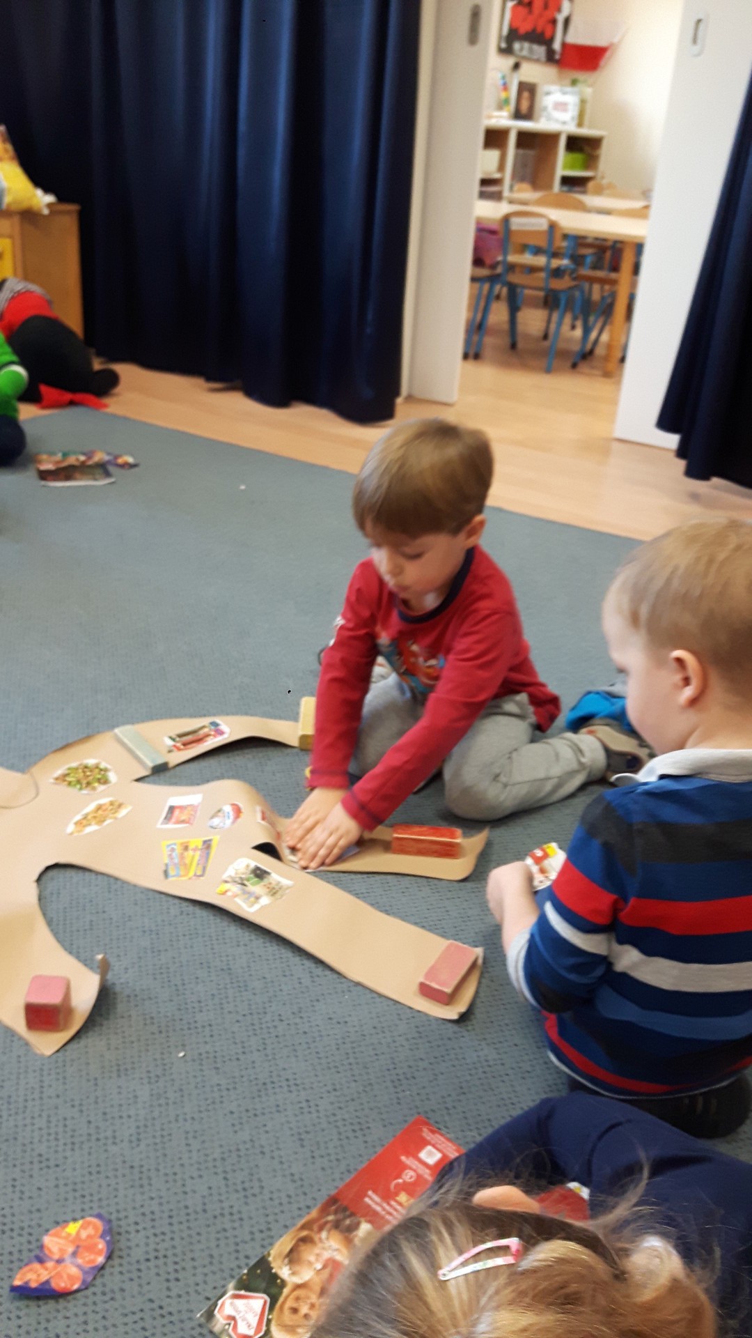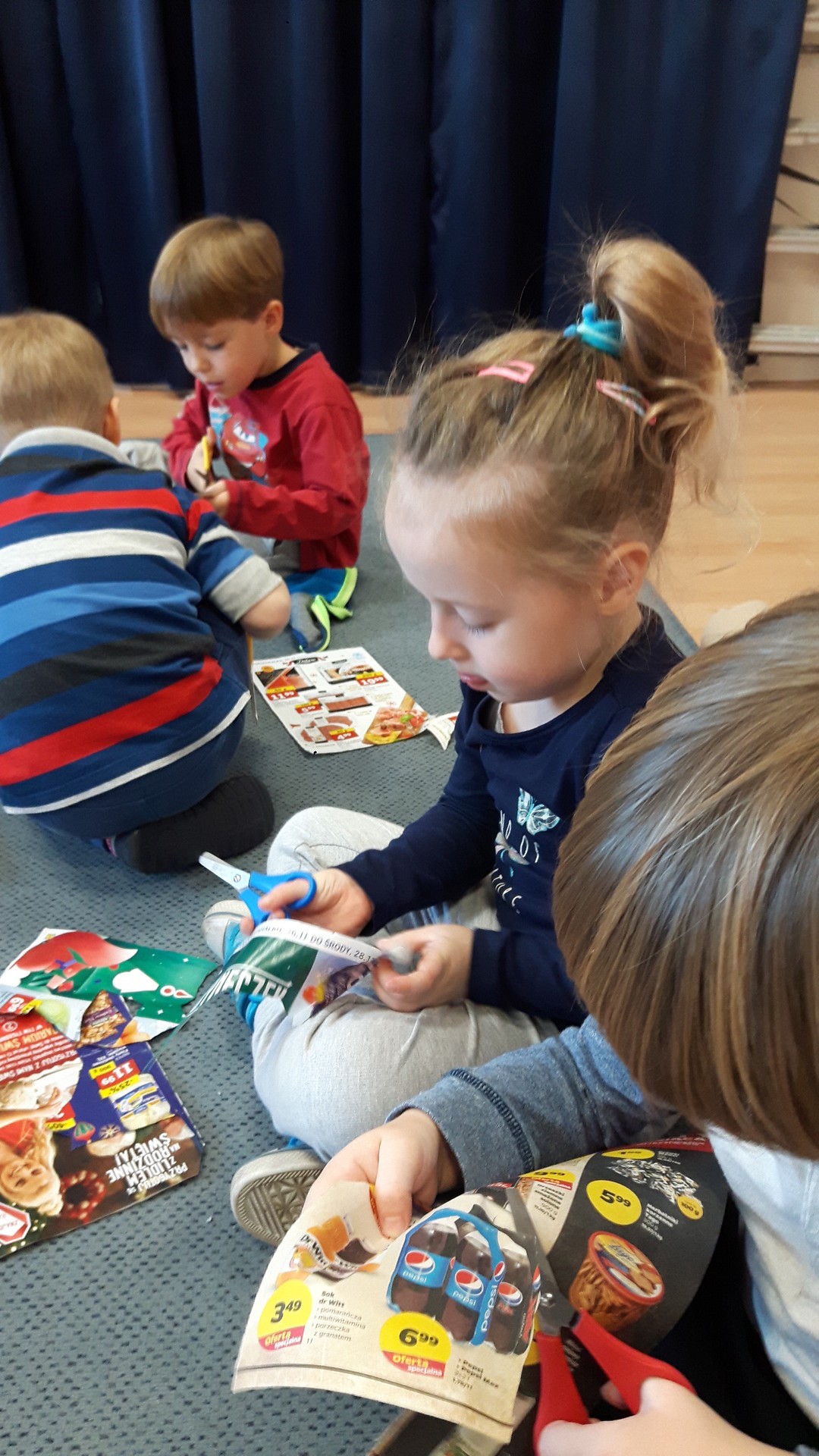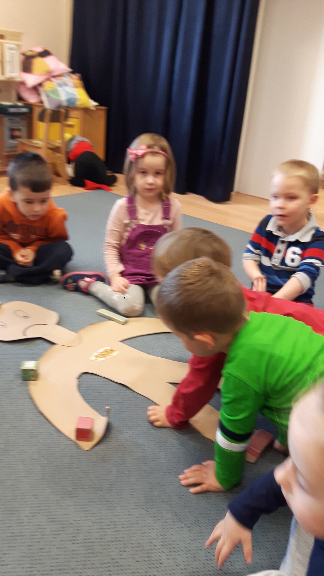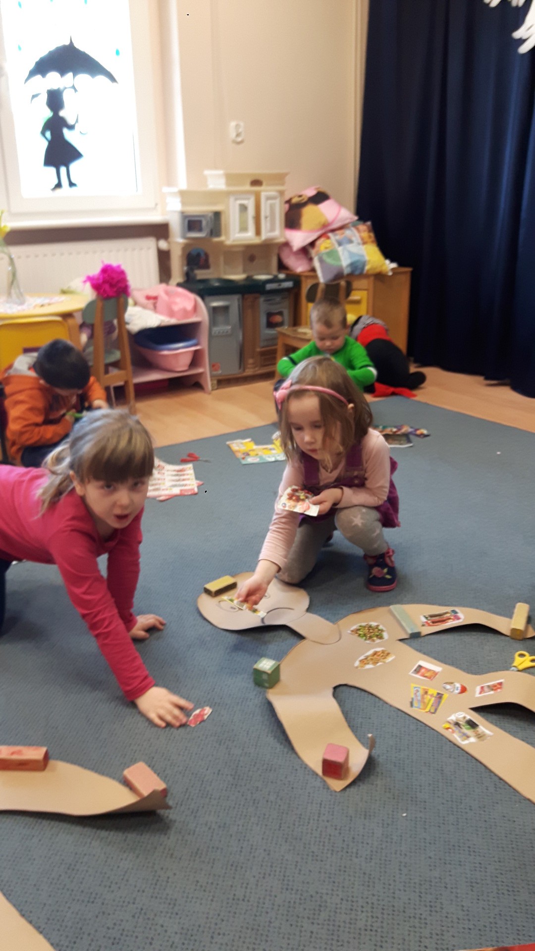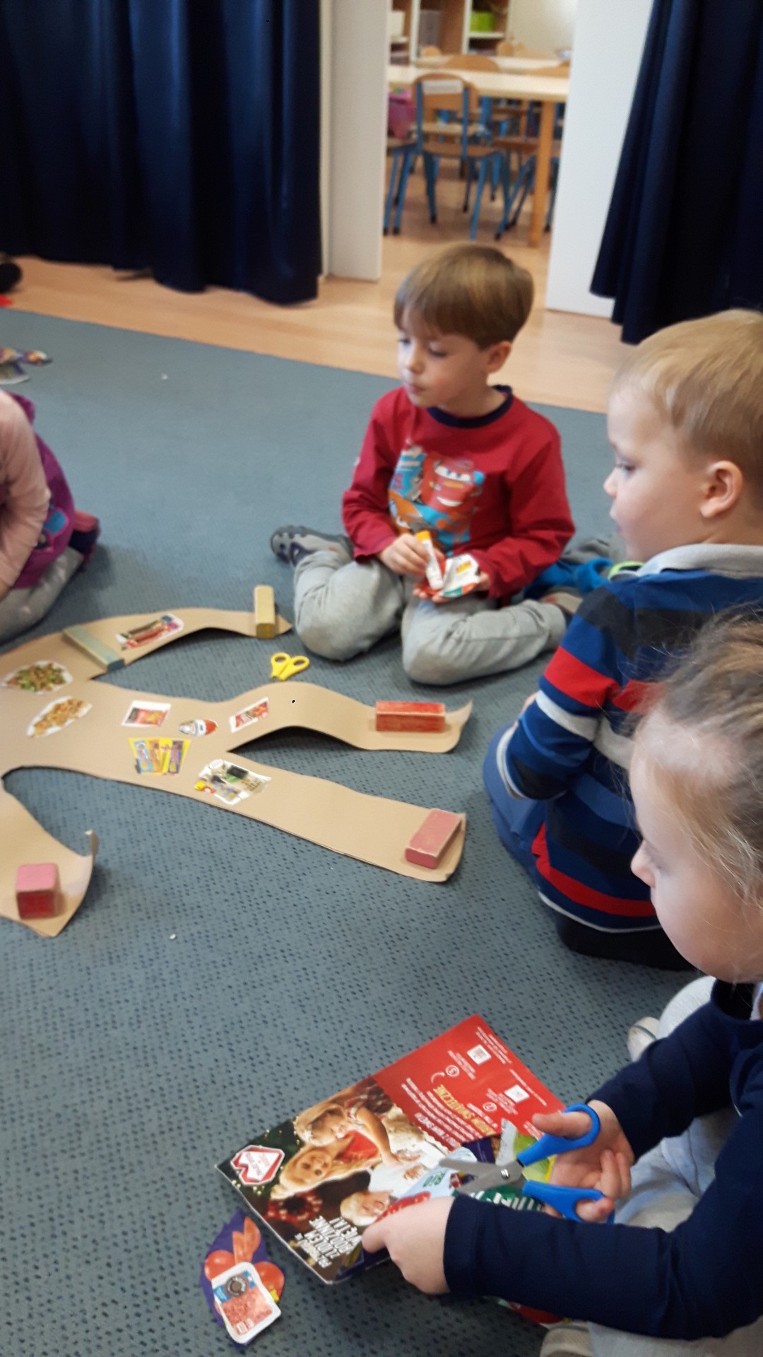 Co jest zdrowe, co jest złe każdy doskonale wie”. Przedszkolaki dowiedziały się jak zdrowo się odżywiać, co należy często jeść, a czego unikać. Zapoznały się też z pojęciem „piramida zdrowia” – jak wygląda i co zawiera. W trakcie zabaw dzieci utrwalały zdobyte wiadomości. Wycinały obrazki z produktami spożywczymi, dzieliły je na zdrowe i niezdrowe, umieszczały we właściwych miejscach tworząc własną piramidę zdrowego żywienia.