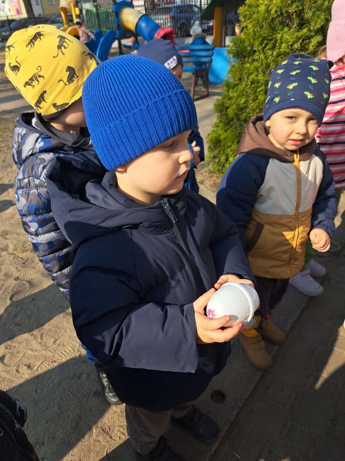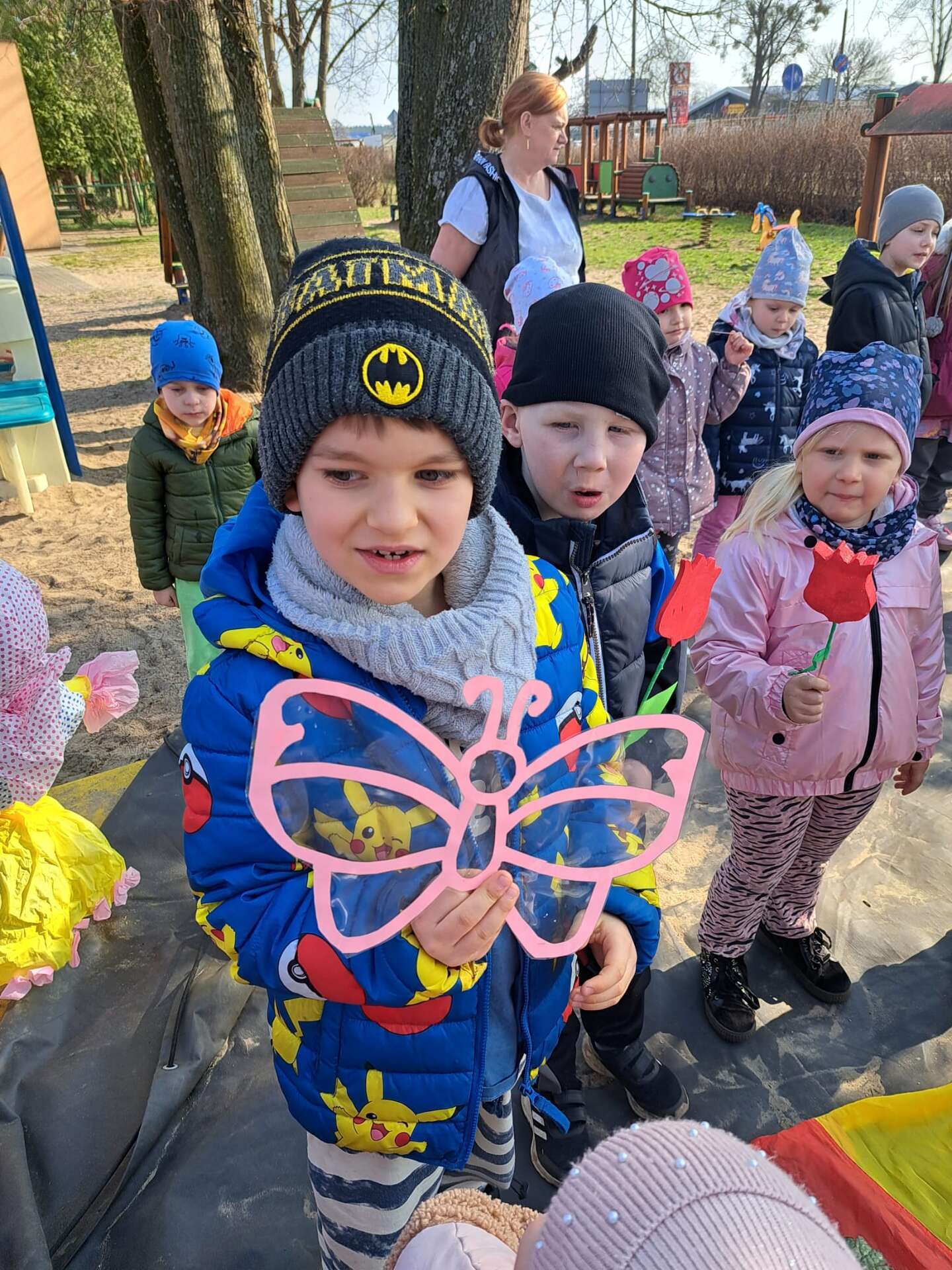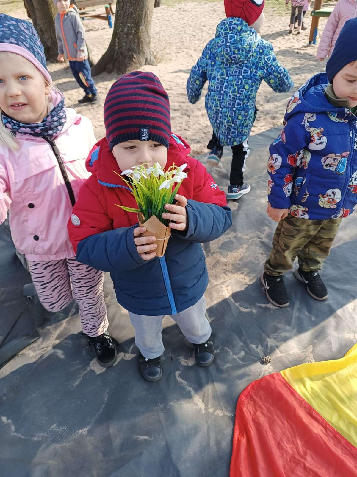 Nasze przedszkolaki brały również udział w wiosennych grach i zabawach, takich jak „Poszukiwanie wiosennych skarbów” oraz „Wiosenny wiatr”. Dzięki tym aktywnościom dzieci miały okazję zbliżyć się do przyrody i poczuć prawdziwą radość z nadejścia wiosny.