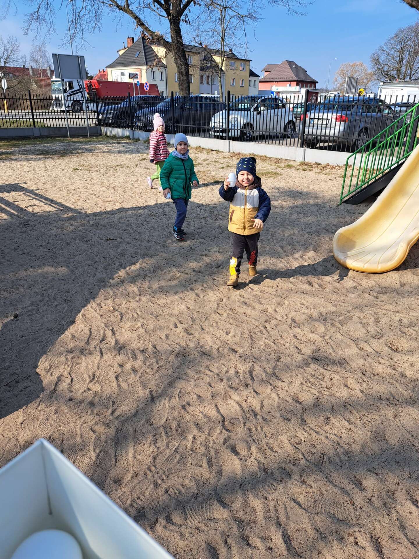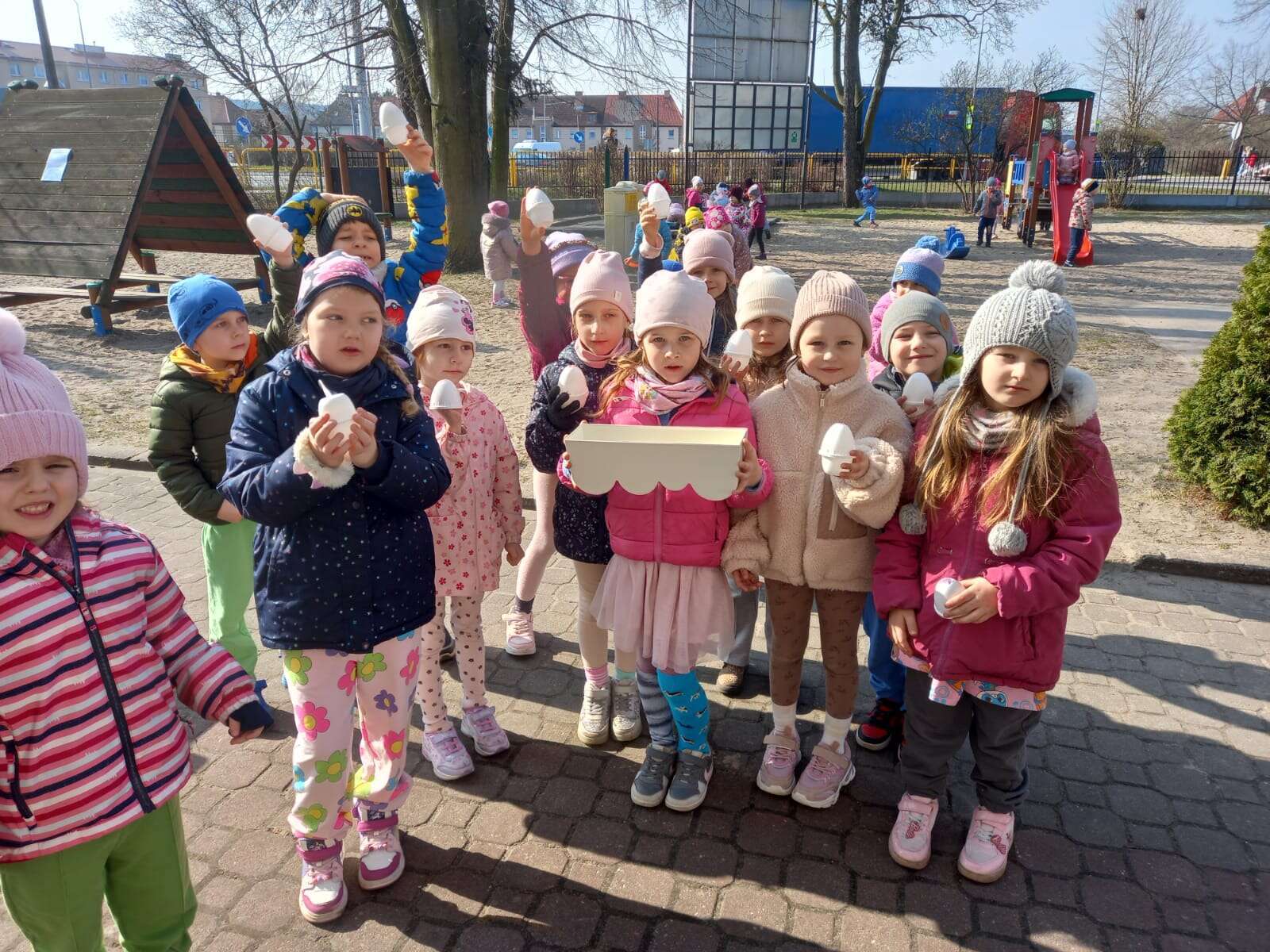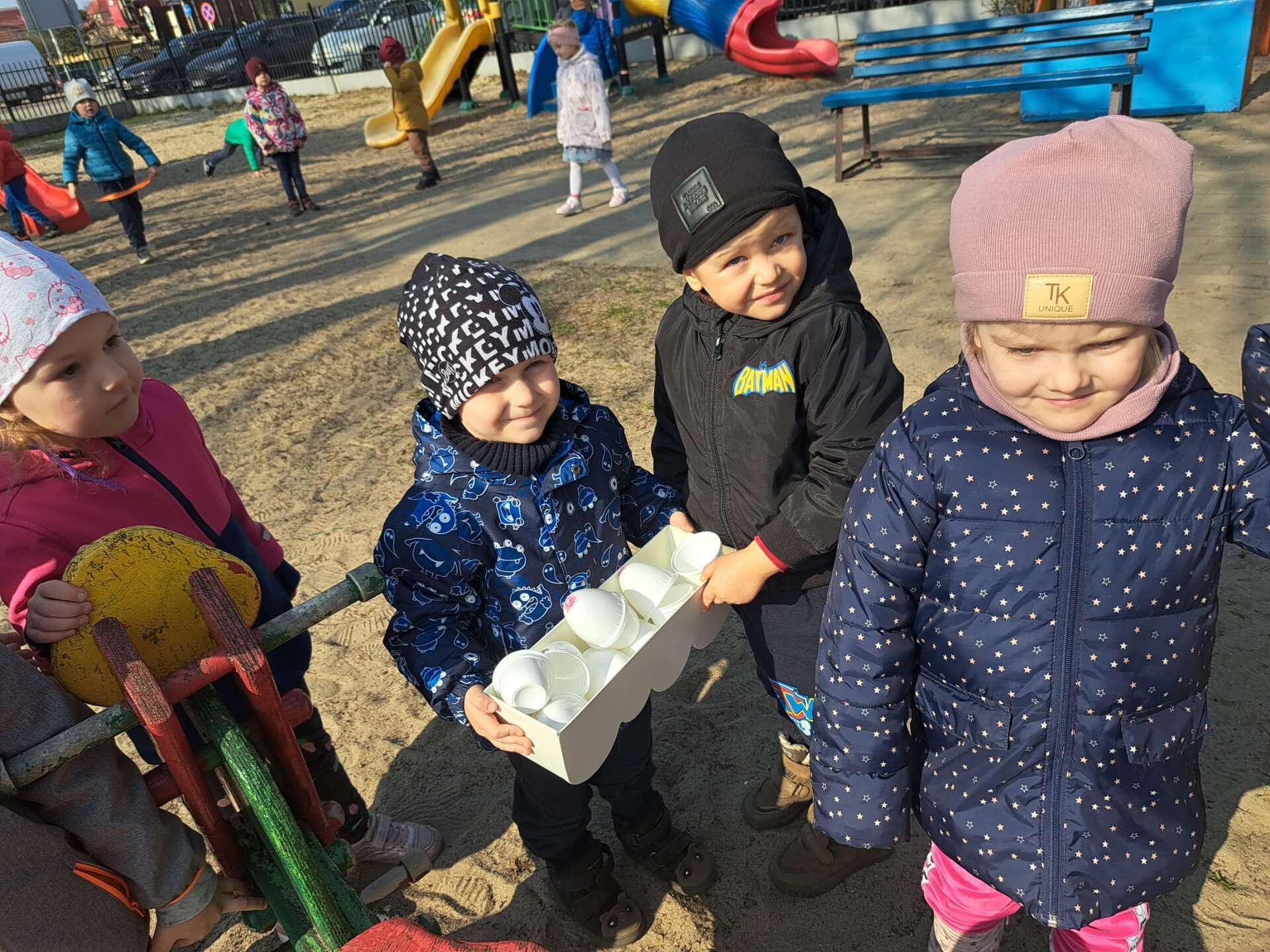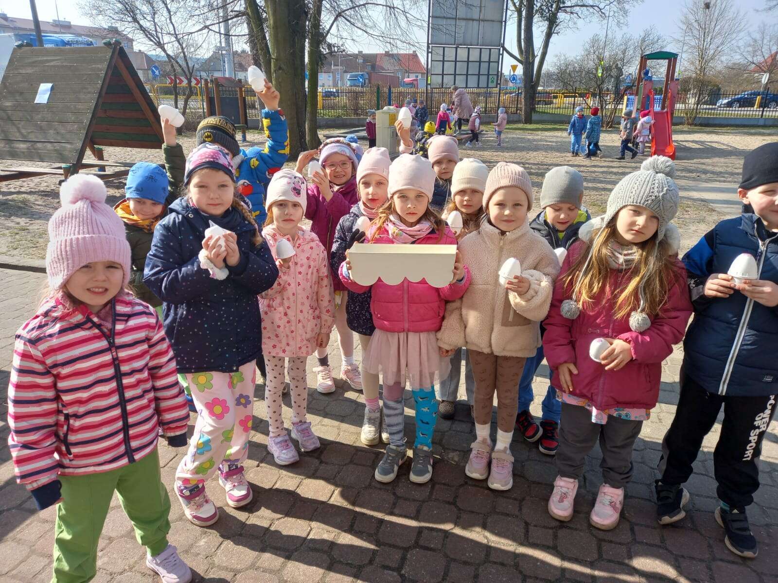 Nasze przedszkolaki brały również udział w wiosennych grach i zabawach, takich jak „Poszukiwanie wiosennych skarbów” oraz „Wiosenny wiatr”. Dzięki tym aktywnościom dzieci miały okazję zbliżyć się do przyrody i poczuć prawdziwą radość z nadejścia wiosny.