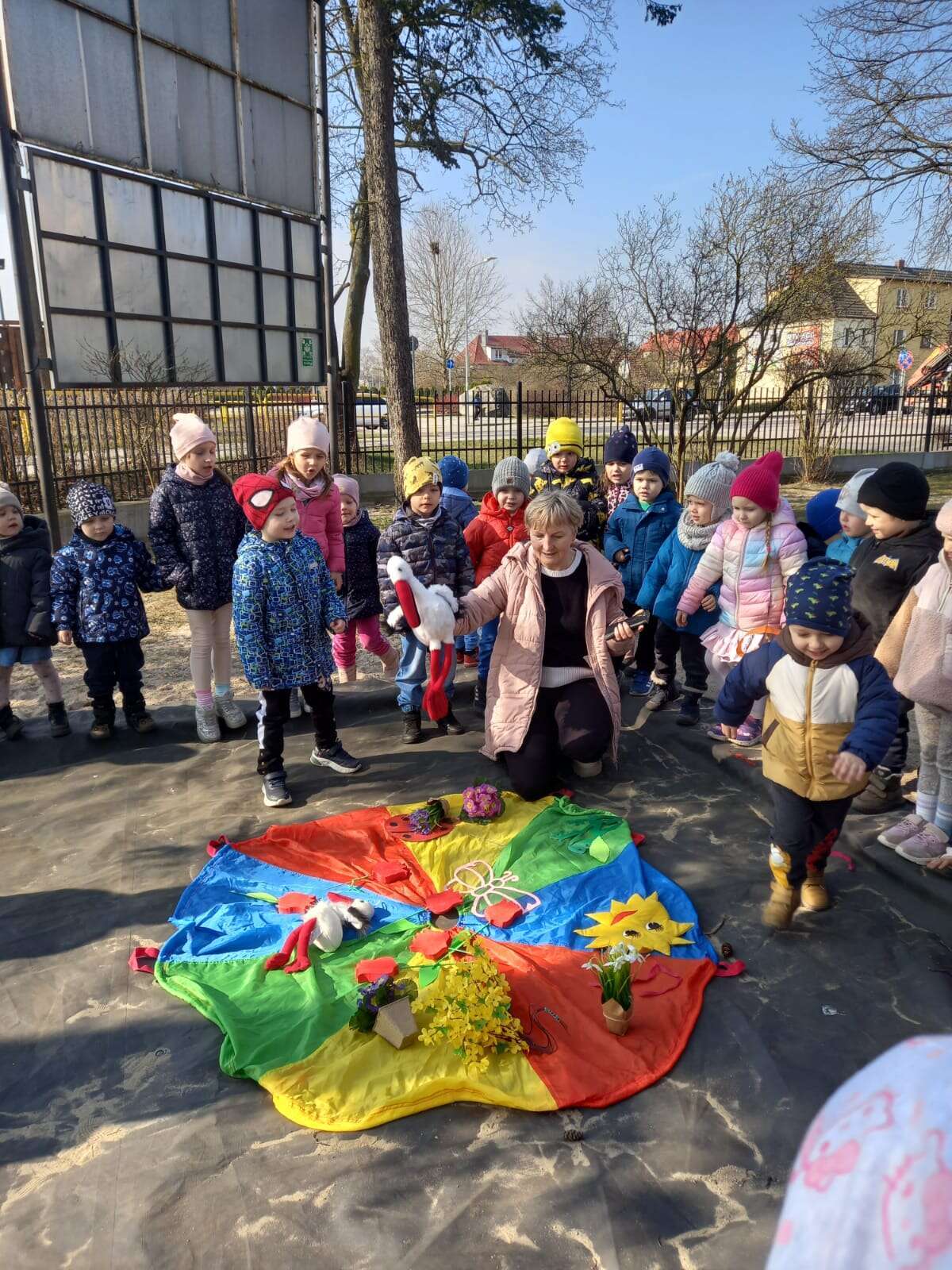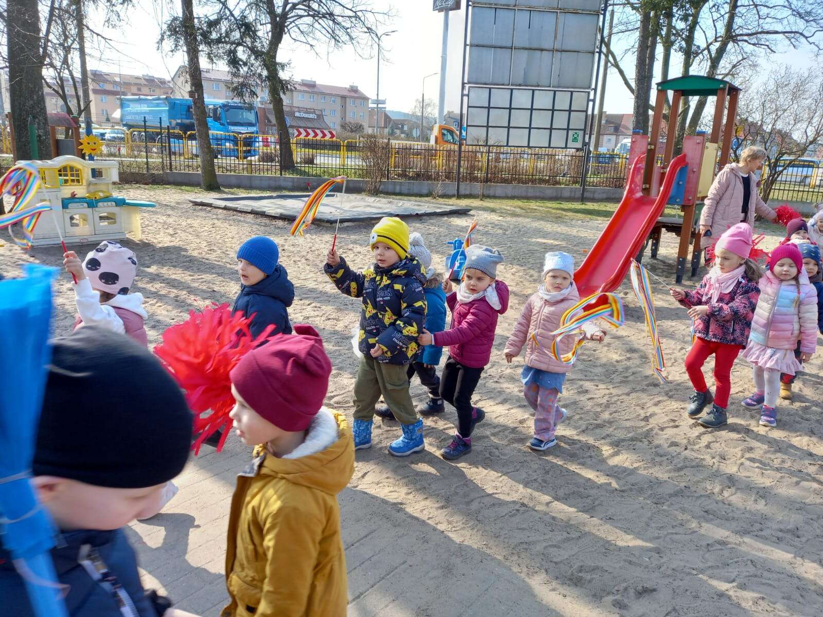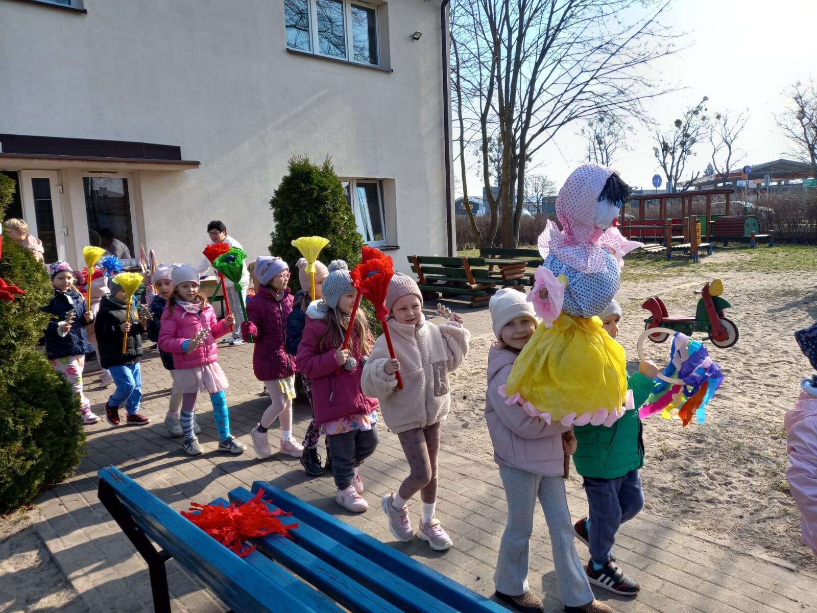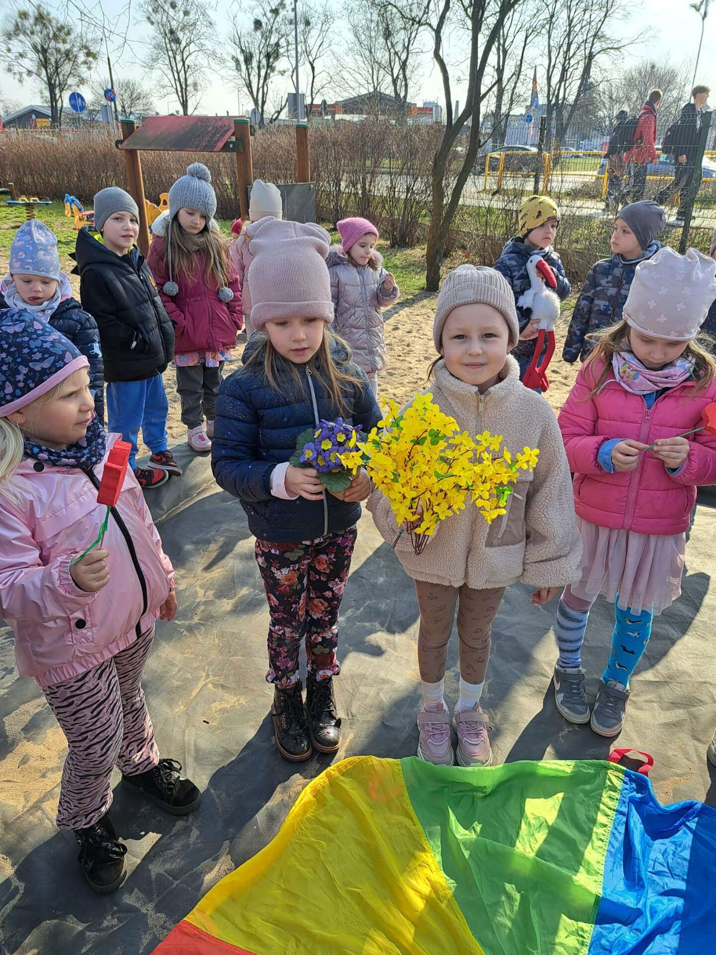Dziś w naszym przedszkolu zapanował wiosenny nastrój! Dzieci z radością przywitały tę piękną porę roku w ogrodzie przedszkolnym. Z uśmiechami na twarzach dzieci wzięły udział w radosnych tańcach na świeżym powietrzu.