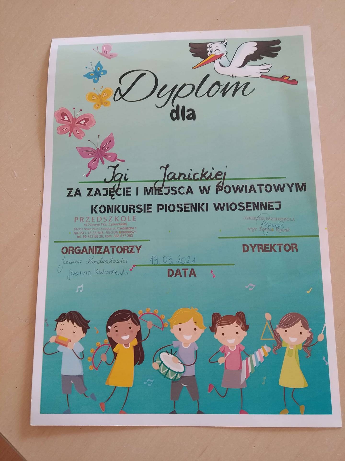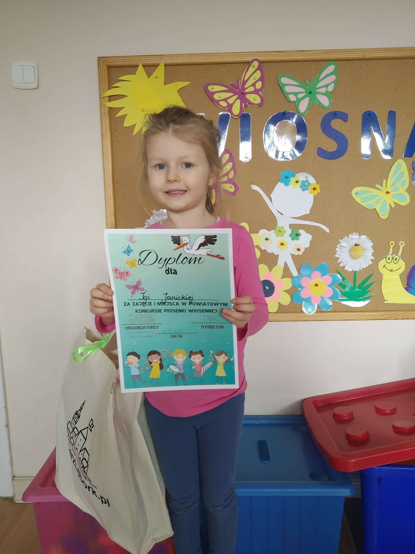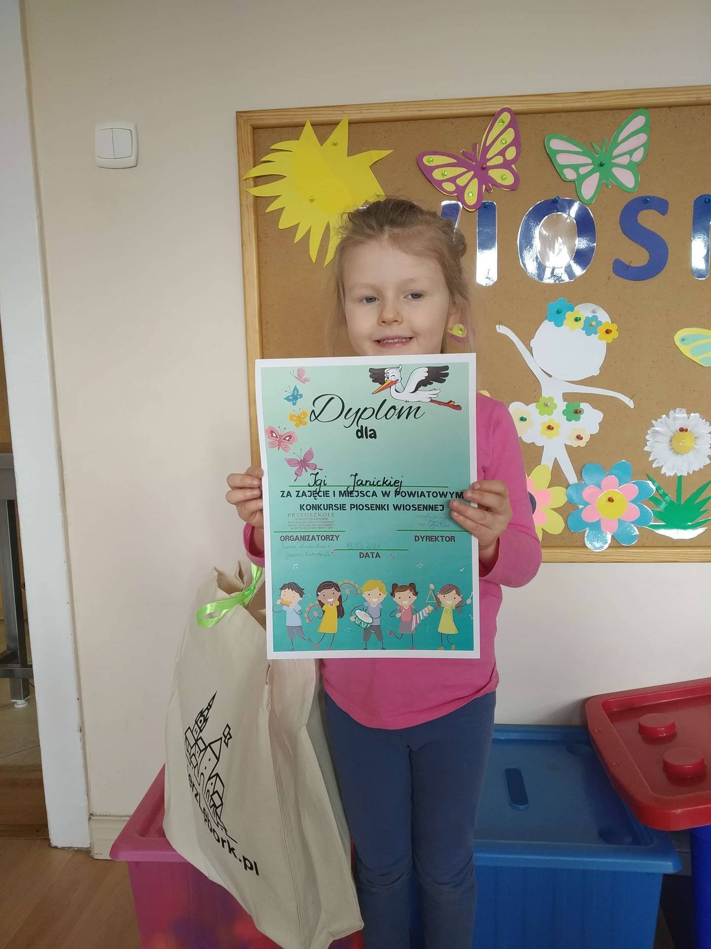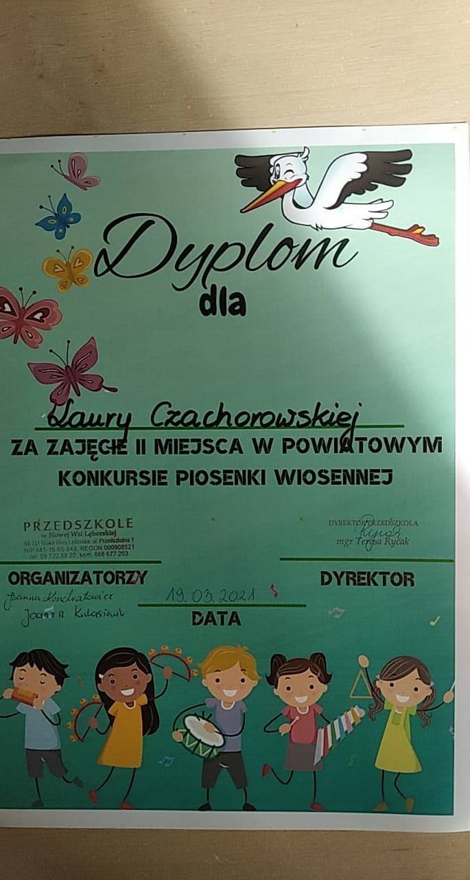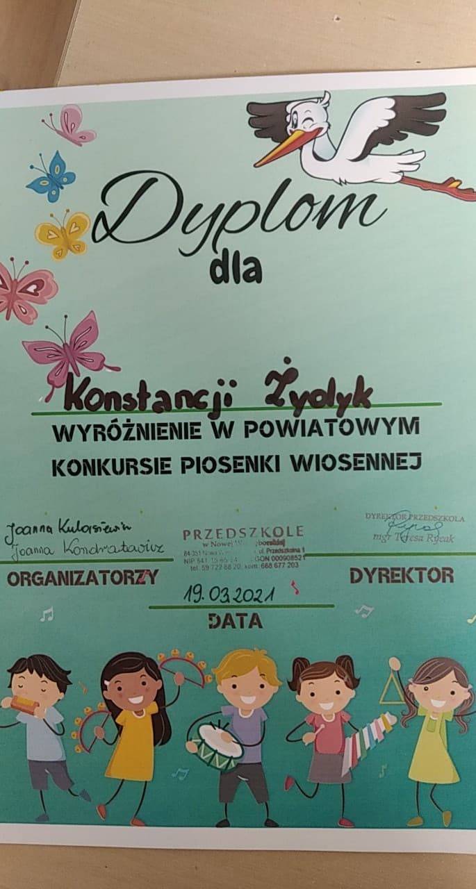 Serdeczne gratulacje dla Igi Janickiej z grupy II za zajęcie I miejsca w Powiatowym Konkursie Piosenki Wiosennej, dla Laury Czachorowskiej z grupy III za zajęcie II miejsca oraz Konstacji Żydyk gr III, Wiktorii Bartosiak i Zosia Preczewska gr IV