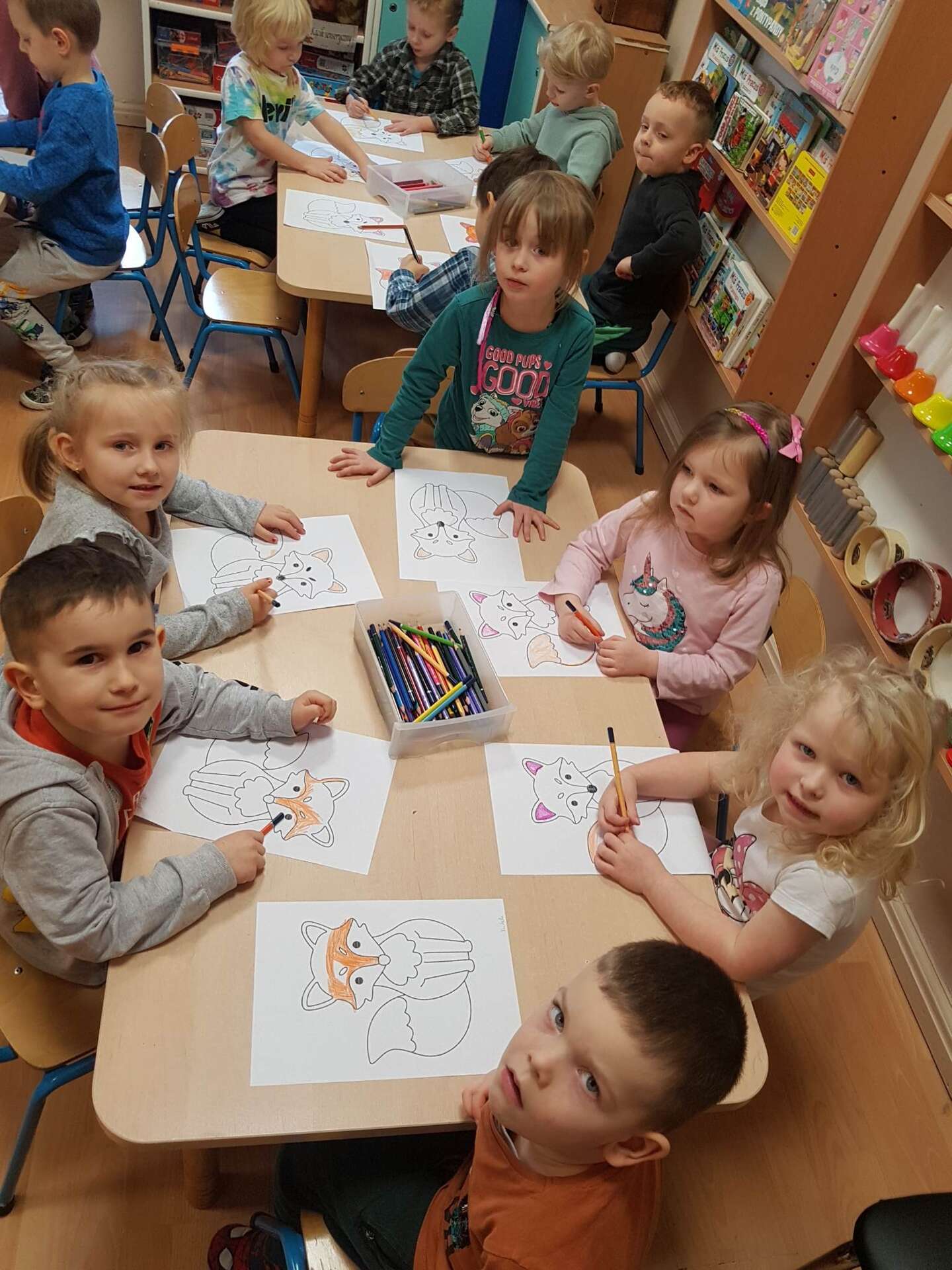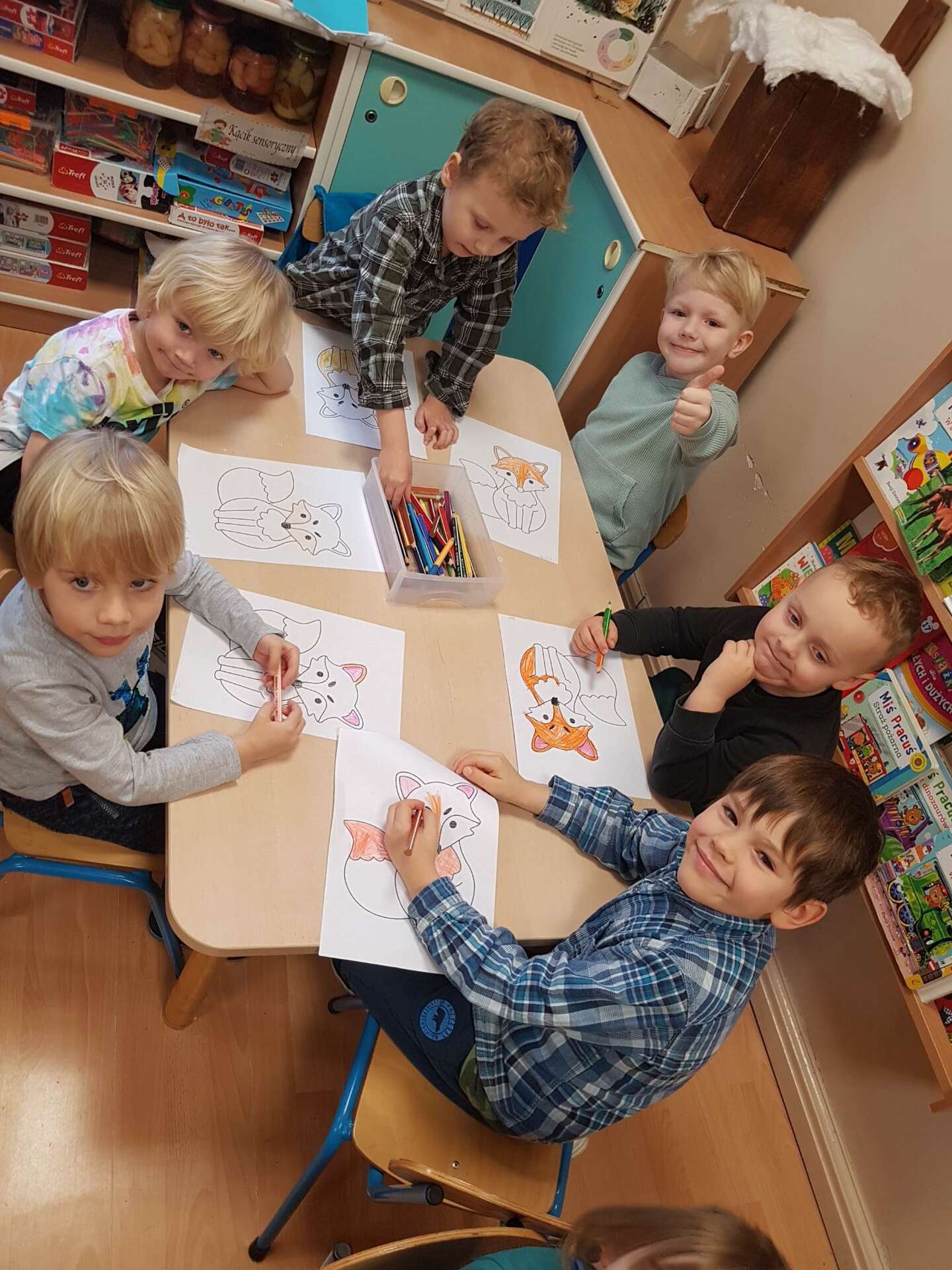 Dzieci kolorują liska