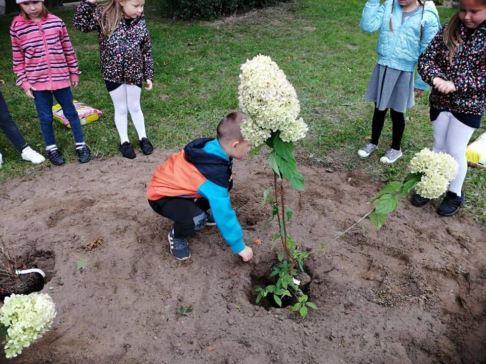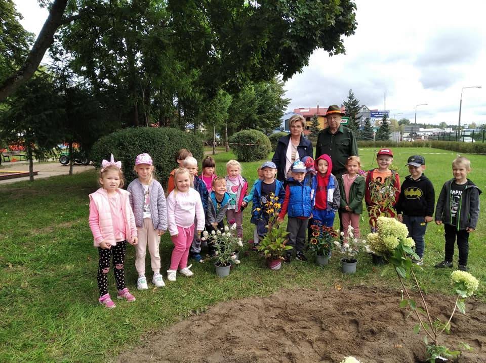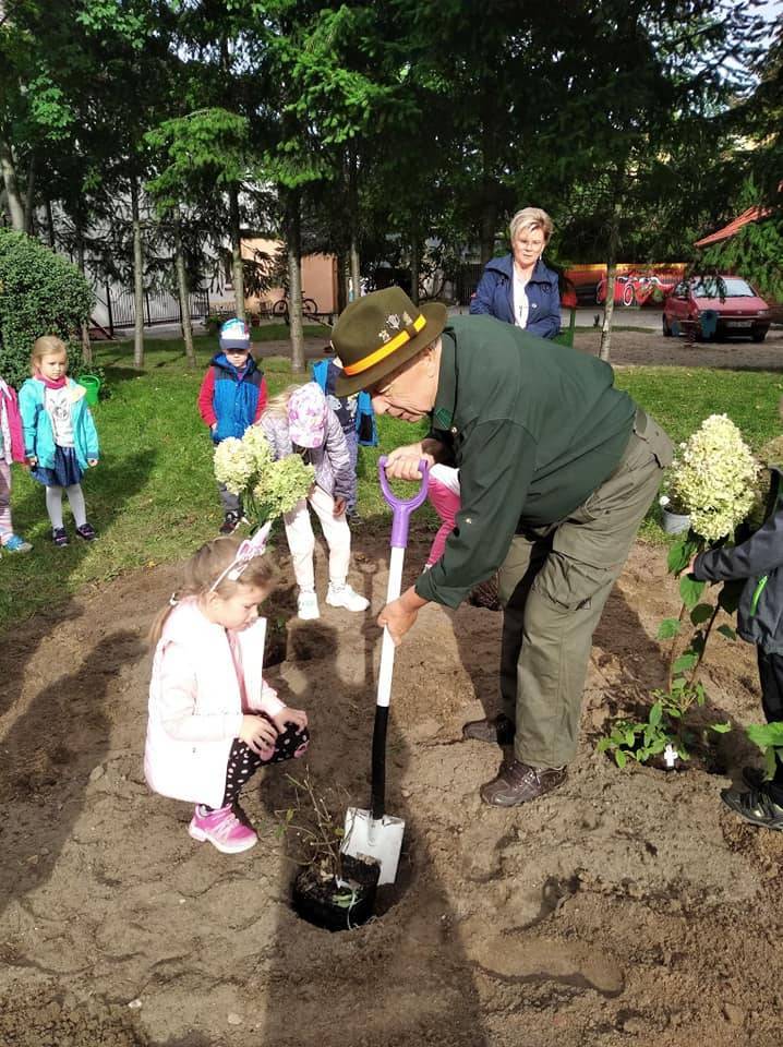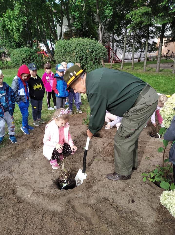 Kolejne spotkanie w Przedszkolu nr 10 w ramach projektu „Ożywić pola- dzieci ratują Ziemię w dobie Civid-19”. Tym razem działania praktyczne. Ponieważ w ostatnim czasie bardzo powiększył się przedszkolny ogród zaplanowaliśmy wraz z panią Dyrektor oraz paniami nauczycielkami założenie dwóch rabat kwiatowych. Koło łowieckie „Głuszec” Lębork ufundowało dla przedszkola sadzonki kwiatów i krzewów, które nie tylko będą zdobiły ogród ale również będą przyciągały owady a szczególnie motyle .Zakupiliśmy hortensje drzewiaste w dwóch kolorach, rosnące do 3 metrów ,budleje w różnych kolorach oraz kolorowe rudbekie no i odpowiednią dla tych roślin ziemię. Pan konserwator przygotował miejsce pod rabaty a nasz kolega Leszek Bałwas wraz z dziećmi posadził sadzonki. Udzielił dzieciom i paniom wskazówek jak należy się tymi roślinami opiekować aby przyniosły radość dzieciom i mieszkańcom ogrodu przedszkolnego. Już w przyszłym roku będą mogły wykorzystać kwiaty hortensji na suche bukiety, które ozdobią przedszkolne sale. Mamy jeszcze miejsce na wiosenne kwiaty, ale musimy znaleźć sponsora. Pomysły mamy. Wkrótce kolejne działania.