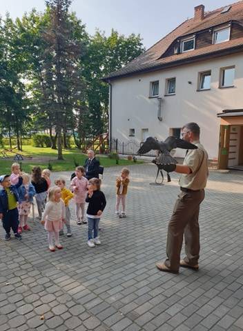 Kolejny rok z rzędu koło łowieckie " Głuszec" z Lęborka przystąpiło do konkursu grantowego i otrzymało fundusze z Akumulatora Społecznego. Swoje projekty "ożywić pola" dedykują przedszkolakom z przedszkola nr 10 w Lęborku. W ubiegłym tygodniu zrealizowali pierwsze tegoroczne działania. Dotrzymując wszelkich wymogów sanitarnych Kolega Lechosław Bałwas opowiedział dzieciom jak zachowuje się przyroda i jakie pozytywne skutki w świecie zwierząt przynisła pandemia. Opowiadał o jesiennym i zimowym okresie w życiu zwierząt, zasadach dokarmiania ptaków i innych zwierząt. Ogromną atrakcją, której dzieci na długo nie zapomną było spotkanie z sokolnikiem Łukaszem Grzenkowiczem. Zaprezentował on pięknego sokoła. Opowiedział o roli ptaków łowczych w życiu przyrody i człowieka. Zwrócił uwagę na ochronę ptaków drapieżnych. Obaj koledzy mają niesamowity dar opowiadania. Ich historie i przekazywana widza była jeszcze długa omawiana w kuluarach przedszkola. Za kilka dni następne spotkanie. Tym razem zadaniowe... Relacja już niedługo!