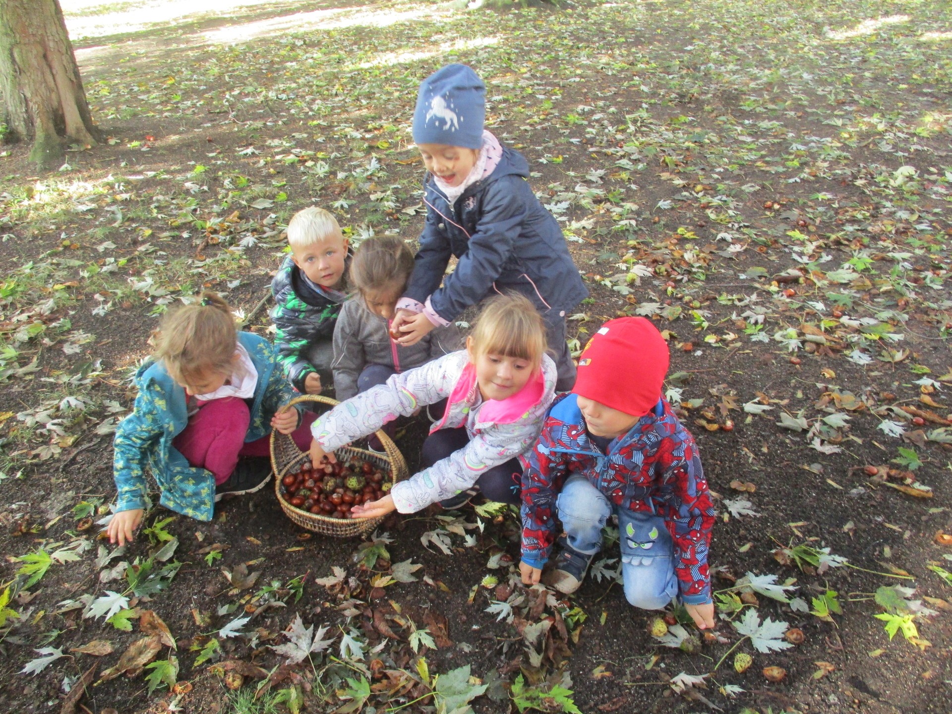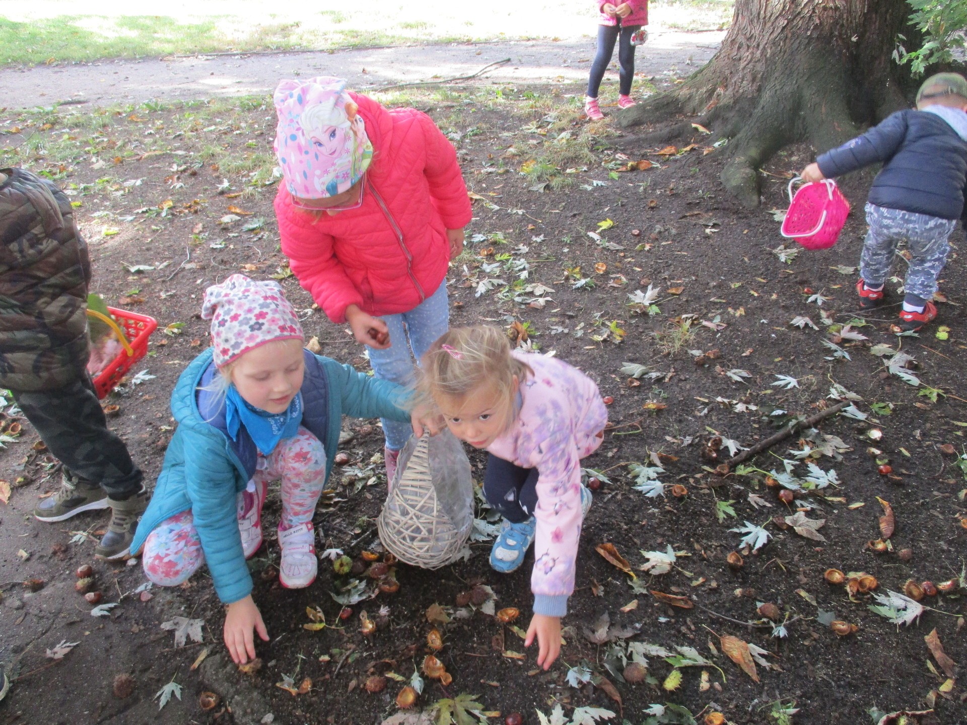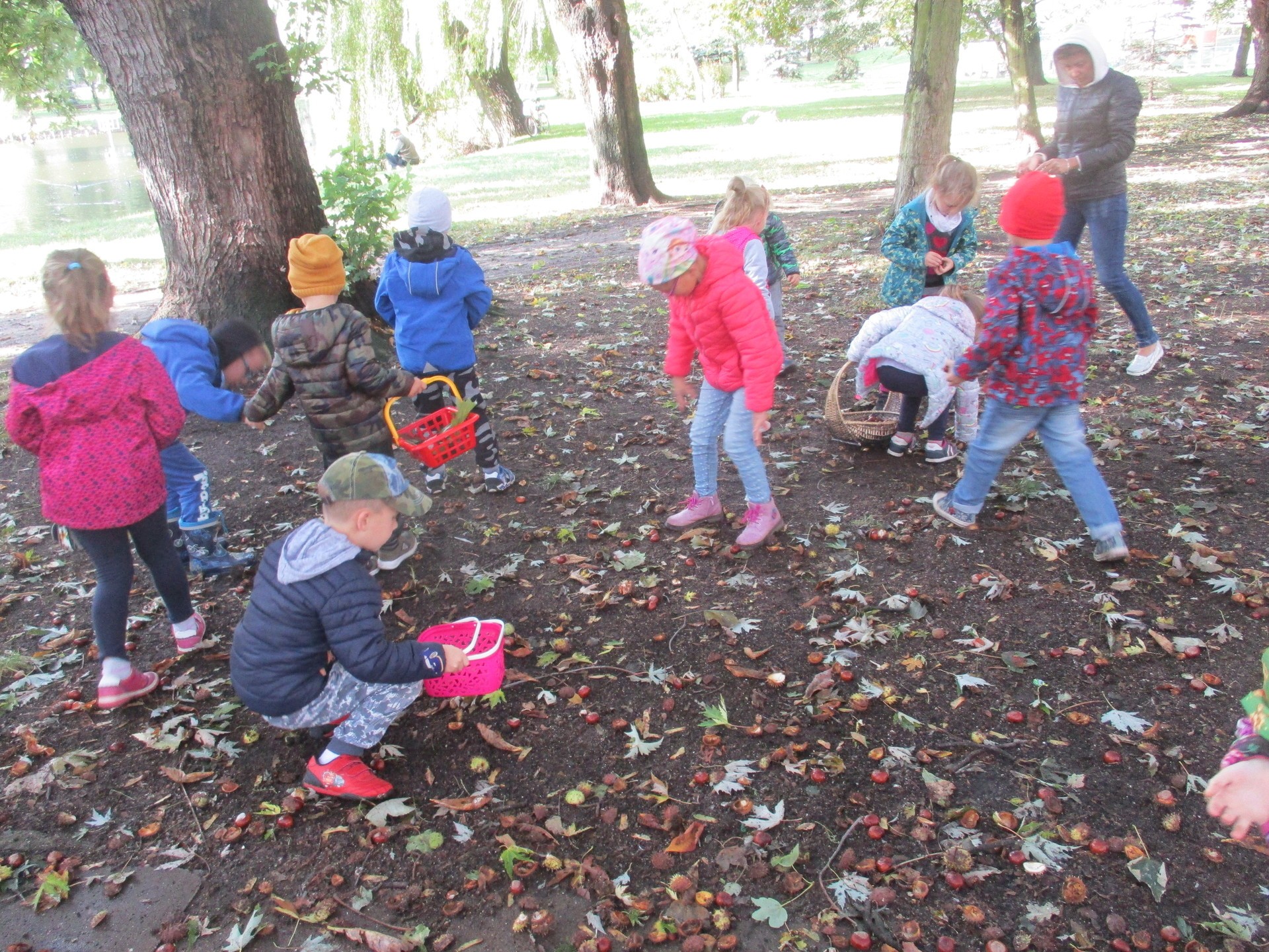 Jesień to piękna pora roku, pełna kolorów i cudownych widoków. Tegoroczna jesień jest wyjątkowo ciepła, dlatego też zachęciła ona przedszkolaków z gr. III do spaceru po parku. Dzieci podziwiały park w jesiennej szacie, otaczającą przyrodę, rozpoznawały gatunki drzew, owoce i liście, które zbierały w celu wzbogacenia kącika przyrody.